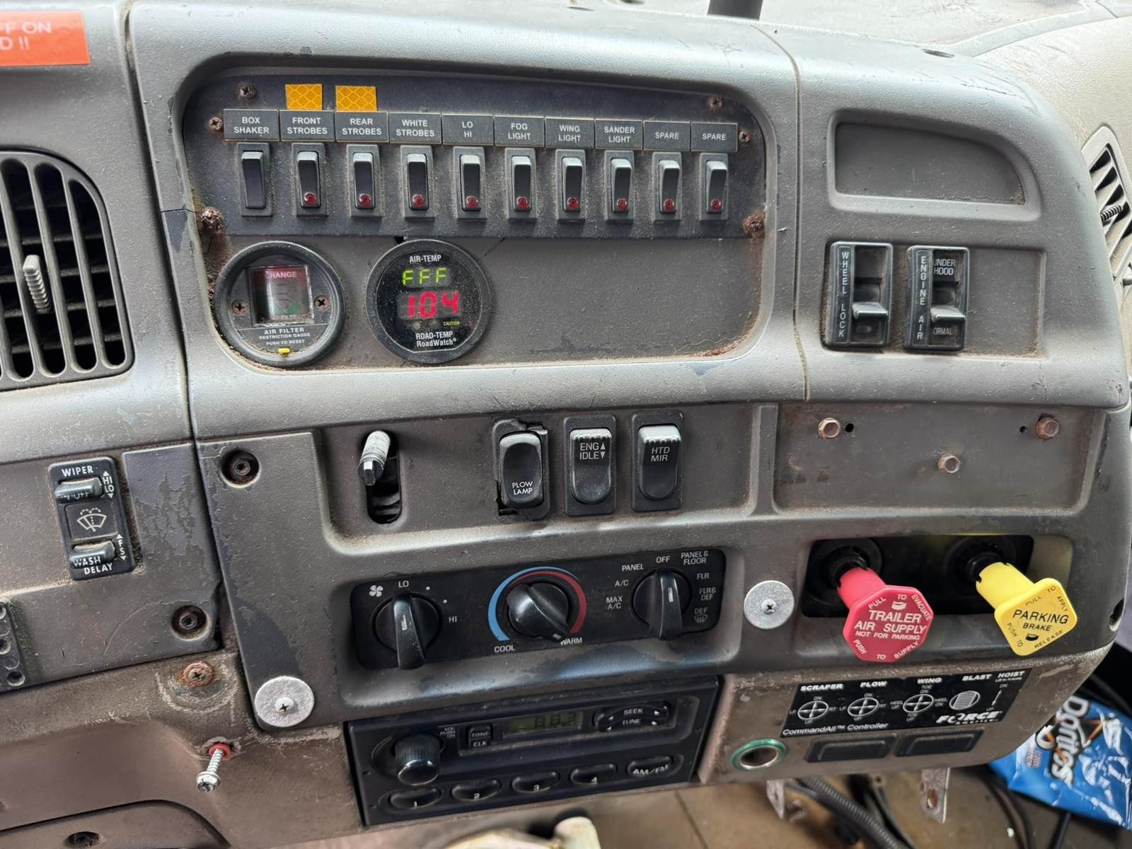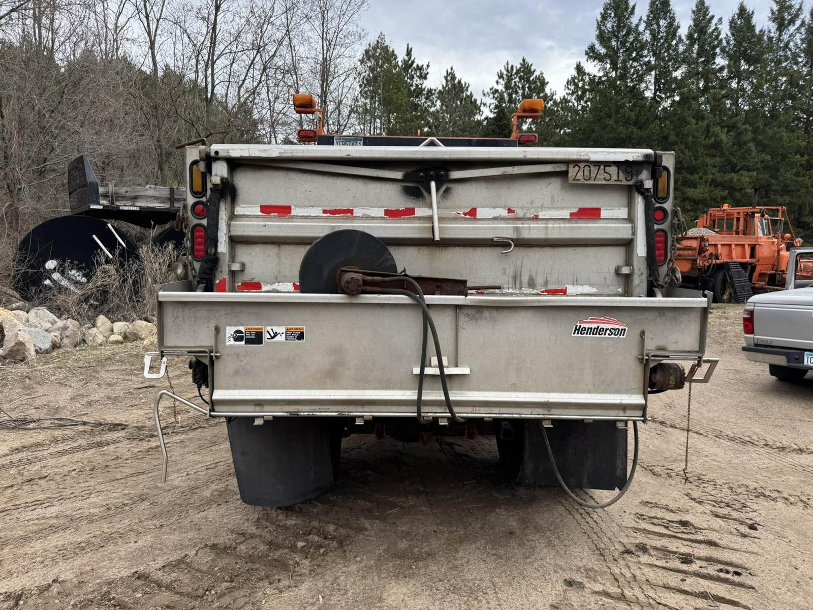 CAT 6-Cylinder Diesel Engine, Allison Automatic Transmission, GVWR 41000LB Front Axle 18000LB, Differential Lock, Spring Suspension, Air Brakes, Heat, A/C, Radio, Air Ride Seat, Henderson Sand/Salt Box 96x9 SN-TGS-05548, Front Plow Plastic Blade Approx 12', Side Blade Approx 9', Bottom Blade Approx 11', Tires Front 315/80R22.5 Rear 11R24.5