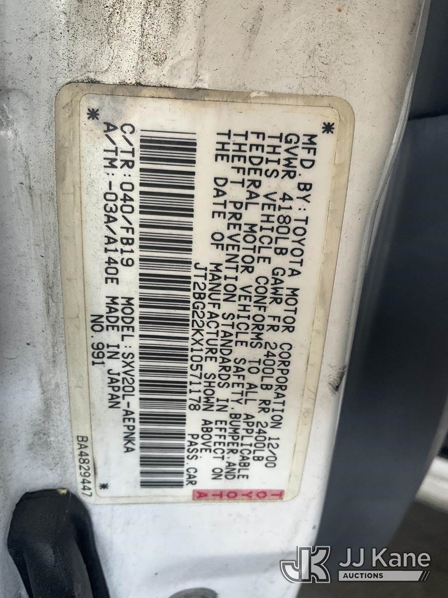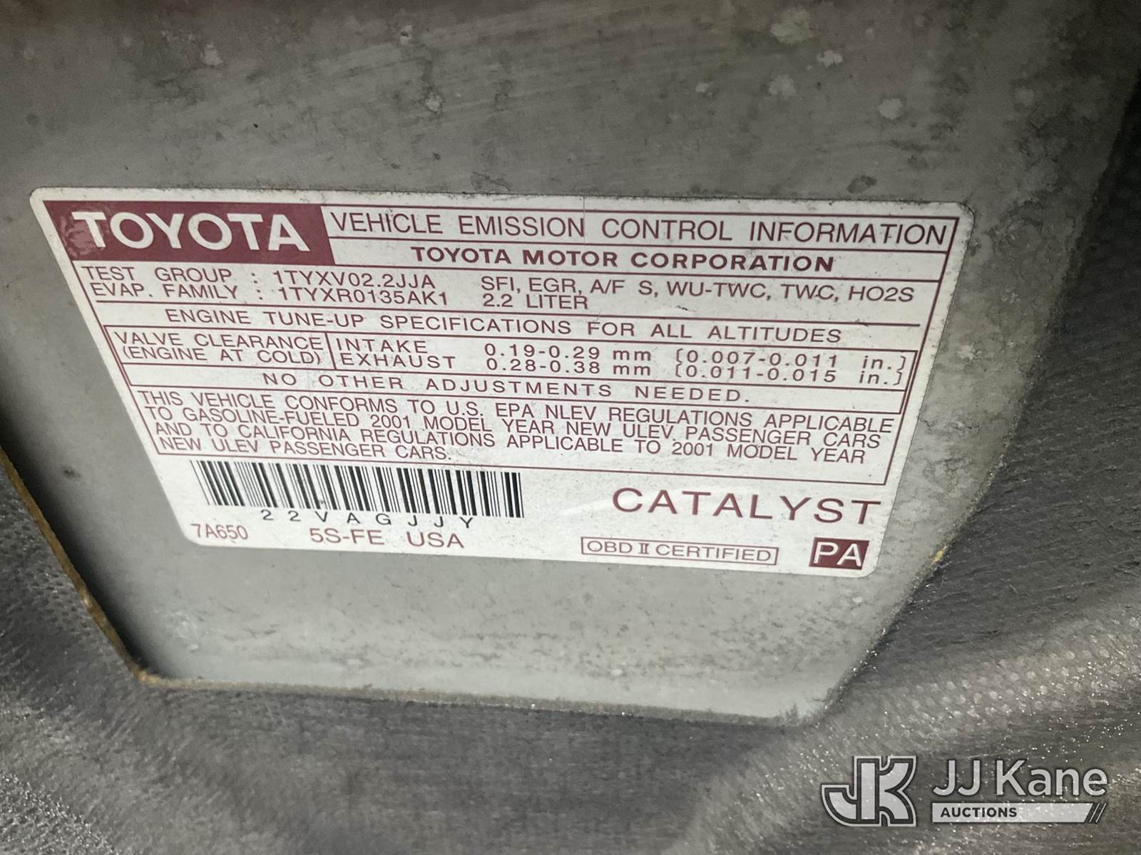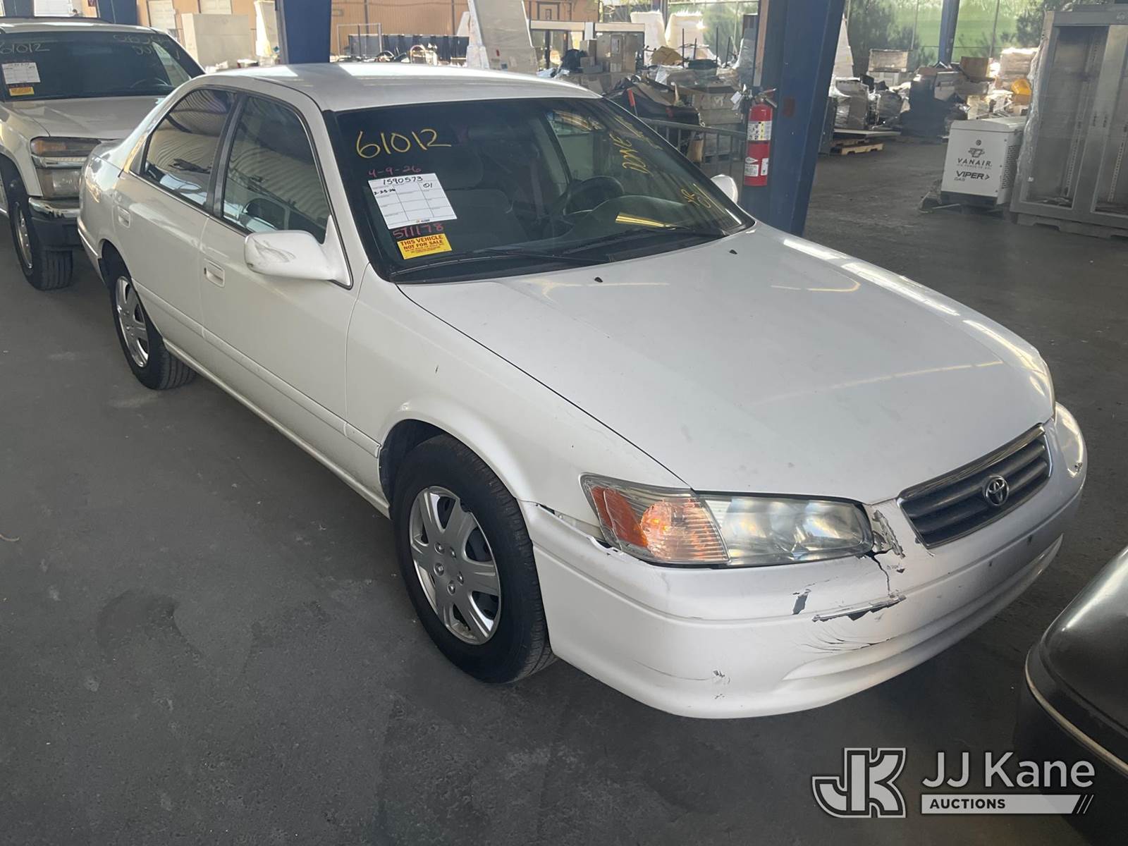 2001 Toyota Camry 4-Door Sedan, 4-cyl gas, 4-Speed Automatic, A/C, (Exempt from Odometer Disclosure - Reads 101,531 miles) (Runs & Moves) (Front Passenger Body Damage, Wont Clear Drive Cycle)(Vehicle previously used with a 'cold plate' or protected record registration. Due to the prior status, VIN may not appear in NMVTIS, which could affect DMV title/registration processing. Buyer acknowledges and accepts this) (Bidding Restricted to Licensed Vehicle Dealers Only), This is a Titled Item NOTE: This unit is being sold AS IS/WHERE IS via Timed Auction and is located in Jurupa Valley, CA. Inspection & preview days for this unit are the 2 business days prior to the first day of items closing for this auction, item is located at 4510 Muth Way Jurupa Valley, CA 92509 and hours of operations are 8a-4p. For pre-sale questions, please contact please contact Office Staff @ (310) 353-7140. Dealer License Number 45696. (Buyer is responsible for removal. Assistance by consignor or JJ Kane Auctions is not assured.)