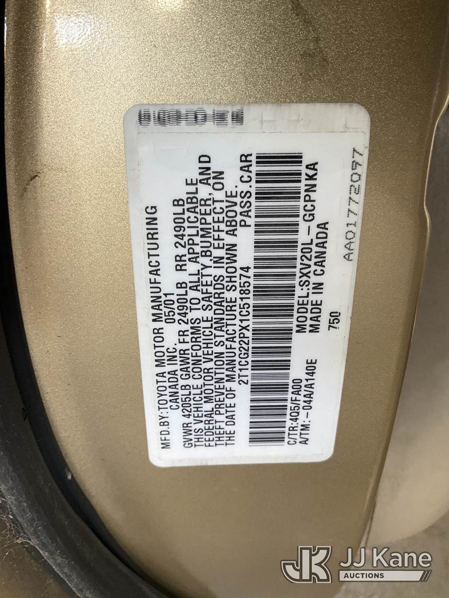 2001 Toyota Solara SE 2-Door Coupe, 2.2L L4 DOHC 16V FWD, GAS, 4-Speed Automatic, A/C, (Exempt from Odometer Disclosure - Reads 112,933 miles (unverified)) (Runs & Moves, Missing Catalytic Converter) (Bidding Restricted to Licensed Vehicle Dealers Only), This is a Titled Item NOTE: This unit is being sold AS IS/WHERE IS via Timed Auction and is located in Jurupa Valley, CA. Inspection & preview days for this unit are the 2 business days prior to the first day of items closing for this auction, item is located at 4510 Muth Way Jurupa Valley, CA 92509 and hours of operations are 8a-4p. For pre-sale questions, please contact please contact Office Staff @ (310) 353-7140. Dealer License Number 45696. (Buyer is responsible for removal. Assistance by consignor or JJ Kane Auctions is not assured.)