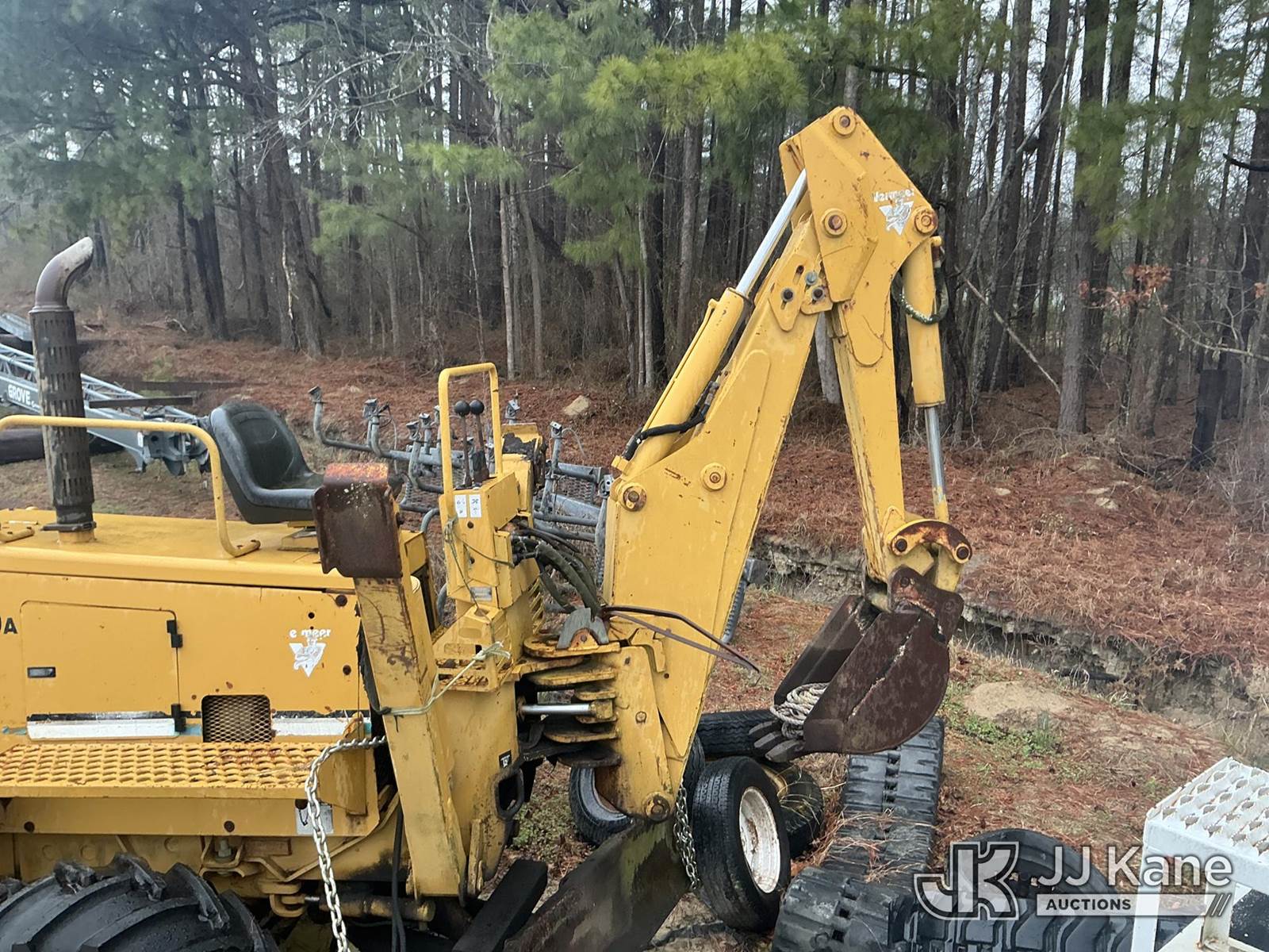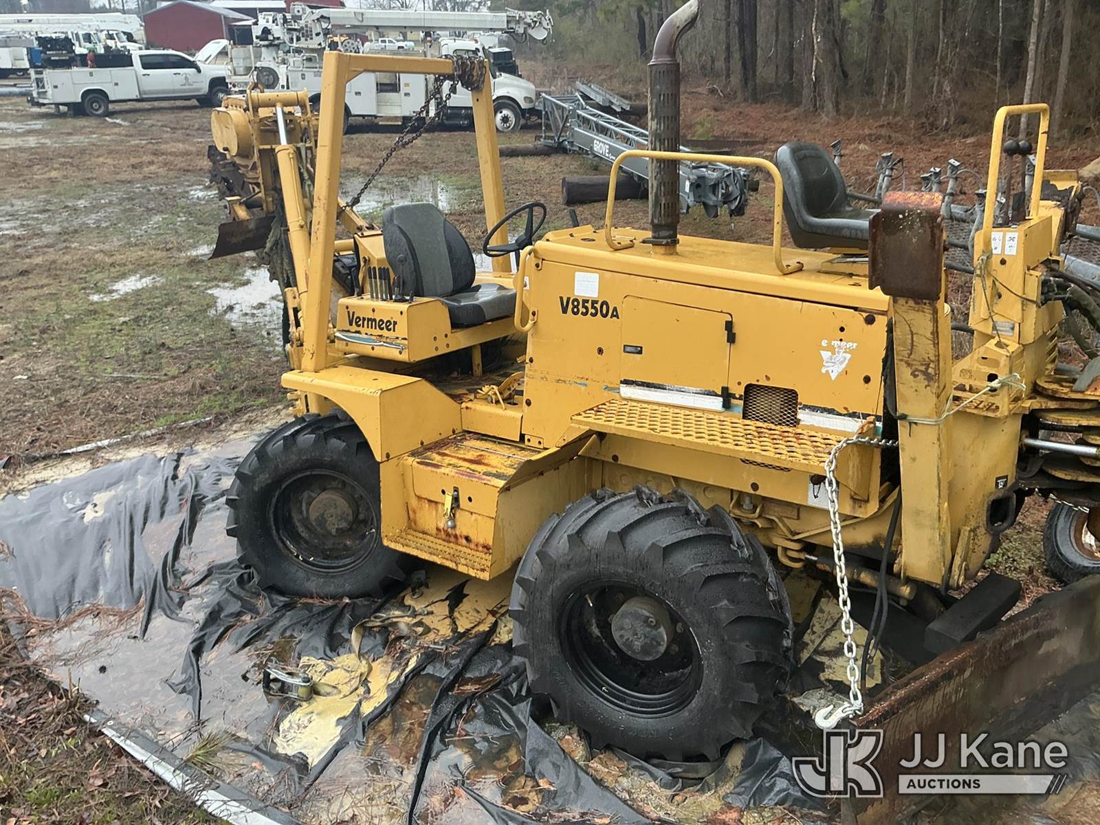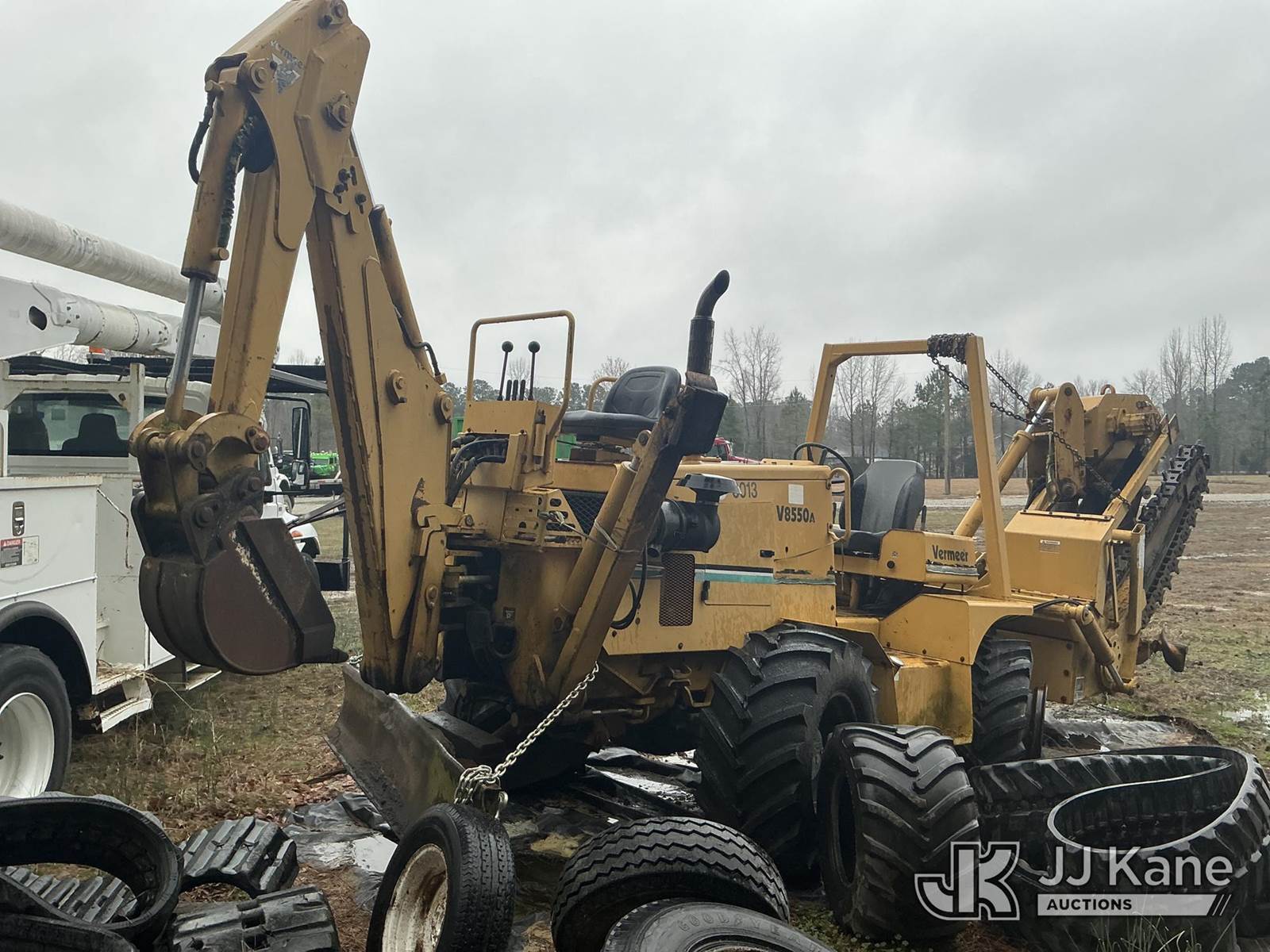2001 Vermeer V8550A Combo Trencher/Vibratory Cable Plow, s/n 1VPT112P1Y1000671, diesel, Hydrostatic, with PT8550 trencher boom w/ carbide tipped chain, vibratory cable plow, B930 backhoe attachment, backfill blade & ROPS, (Condition Unknown, Flat Tire Off Rim) ( Per Seller: Runs, Moves, Hydraulic Leak) (Buyer Must Load) (Reads 1,847 hours) NOTE: This unit is being sold AS IS/WHERE IS via Timed Auction and is located in Washington, NC. Inspection & preview days for this unit are by appointment only; please contact us at contact@jjkane.com or 84-Go-JJKane for more details. (Buyer is responsible for removal. Assistance by consignor or JJ Kane Auctions is not assured.)