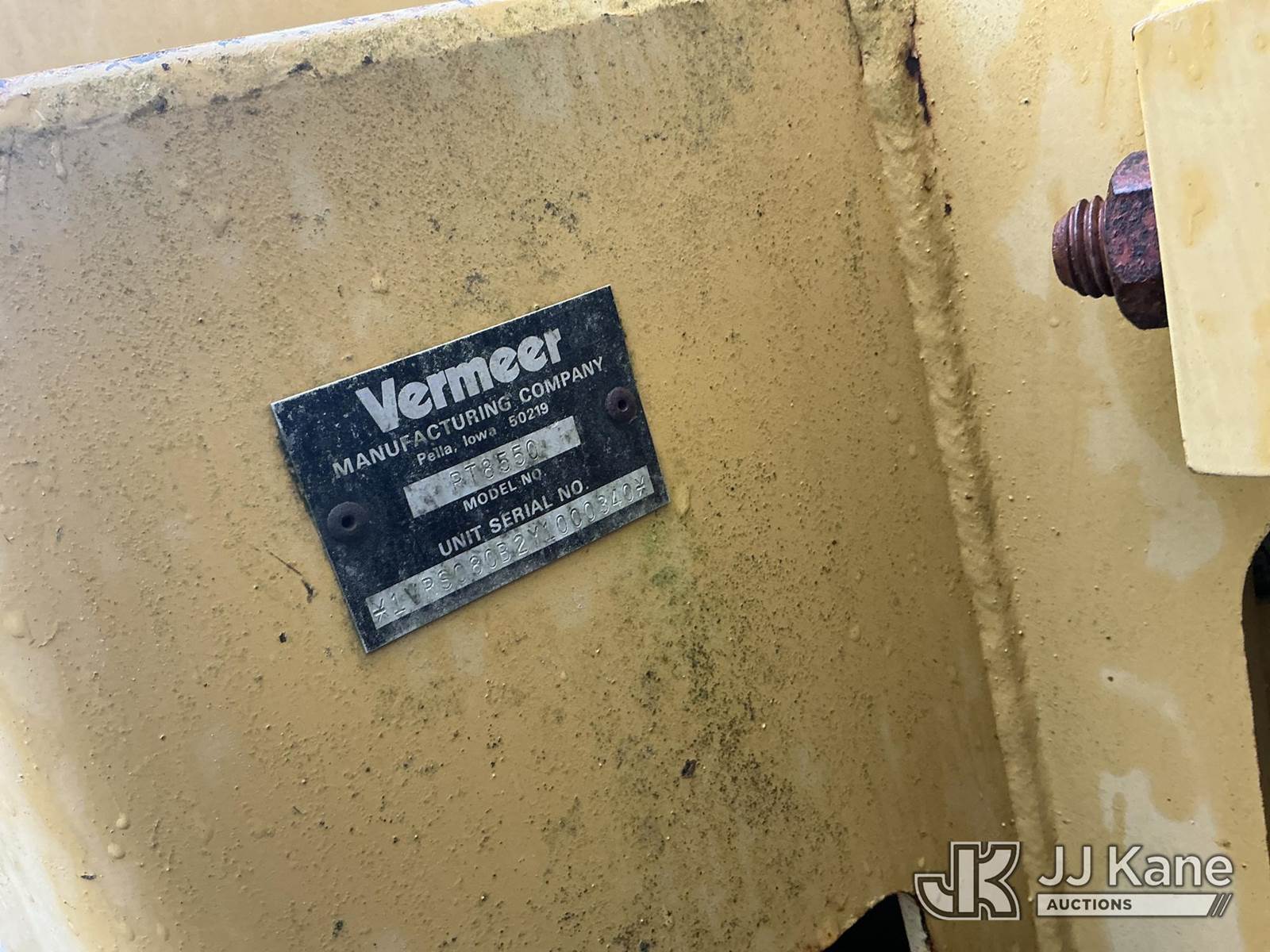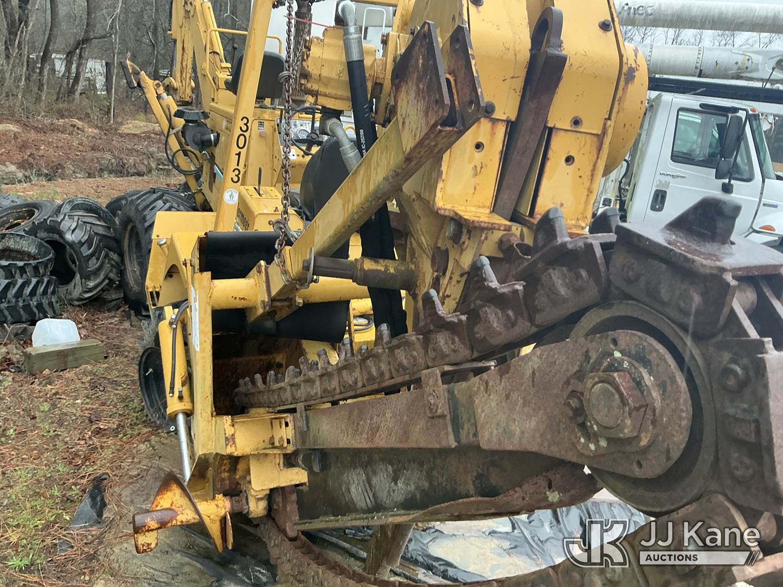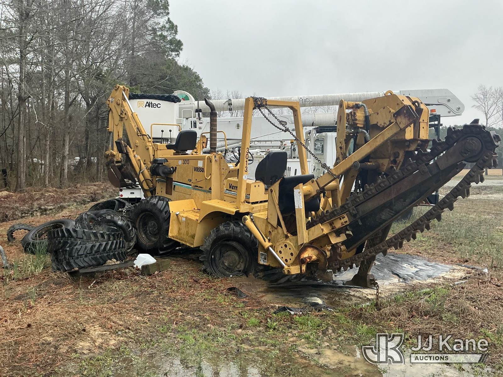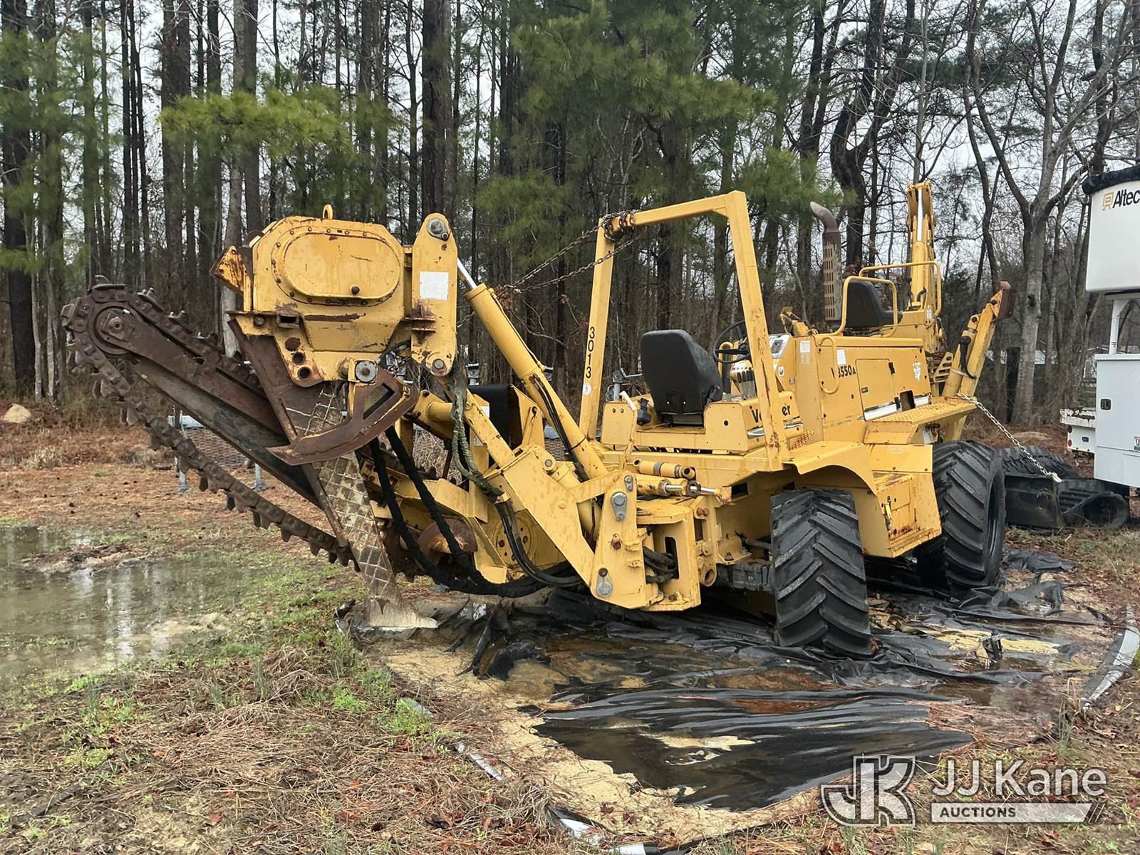 2001 Vermeer V8550A Combo Trencher/Vibratory Cable Plow, s/n 1VPT112P1Y1000671, diesel, Hydrostatic, with PT8550 trencher boom w/ carbide tipped chain, vibratory cable plow, B930 backhoe attachment, backfill blade & ROPS, (Condition Unknown, Flat Tire Off Rim) ( Per Seller: Runs, Moves, Hydraulic Leak) (Buyer Must Load) (Reads 1,847 hours) NOTE: This unit is being sold AS IS/WHERE IS via Timed Auction and is located in Washington, NC. Inspection & preview days for this unit are by appointment only; please contact us at contact@jjkane.com or 84-Go-JJKane for more details. (Buyer is responsible for removal. Assistance by consignor or JJ Kane Auctions is not assured.)