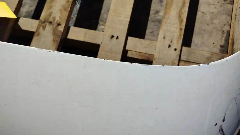 2001 Volvo VNM Exterior Sun Visor, Fiberglass, 80"L x 13"H. Surface Scratches, Chips Along Top Edge.