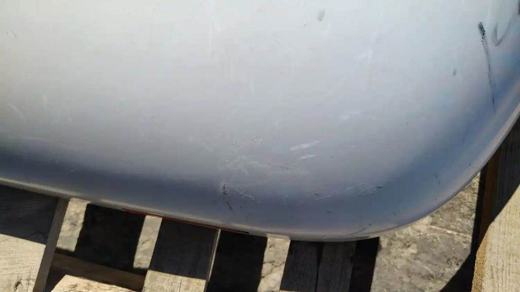 1978 Freightliner FL Cabover Exterior Sun Visor. No Cracks, Slight Dent On Edge, Exposed Metal From Rivet Removal, One Mount Bent....