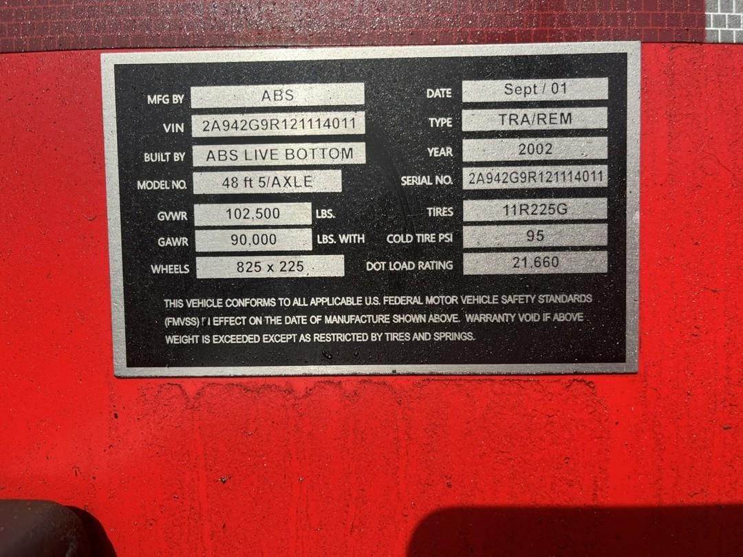 2002 ABS ABS LIVE BOTTOM Live Floor Trailer