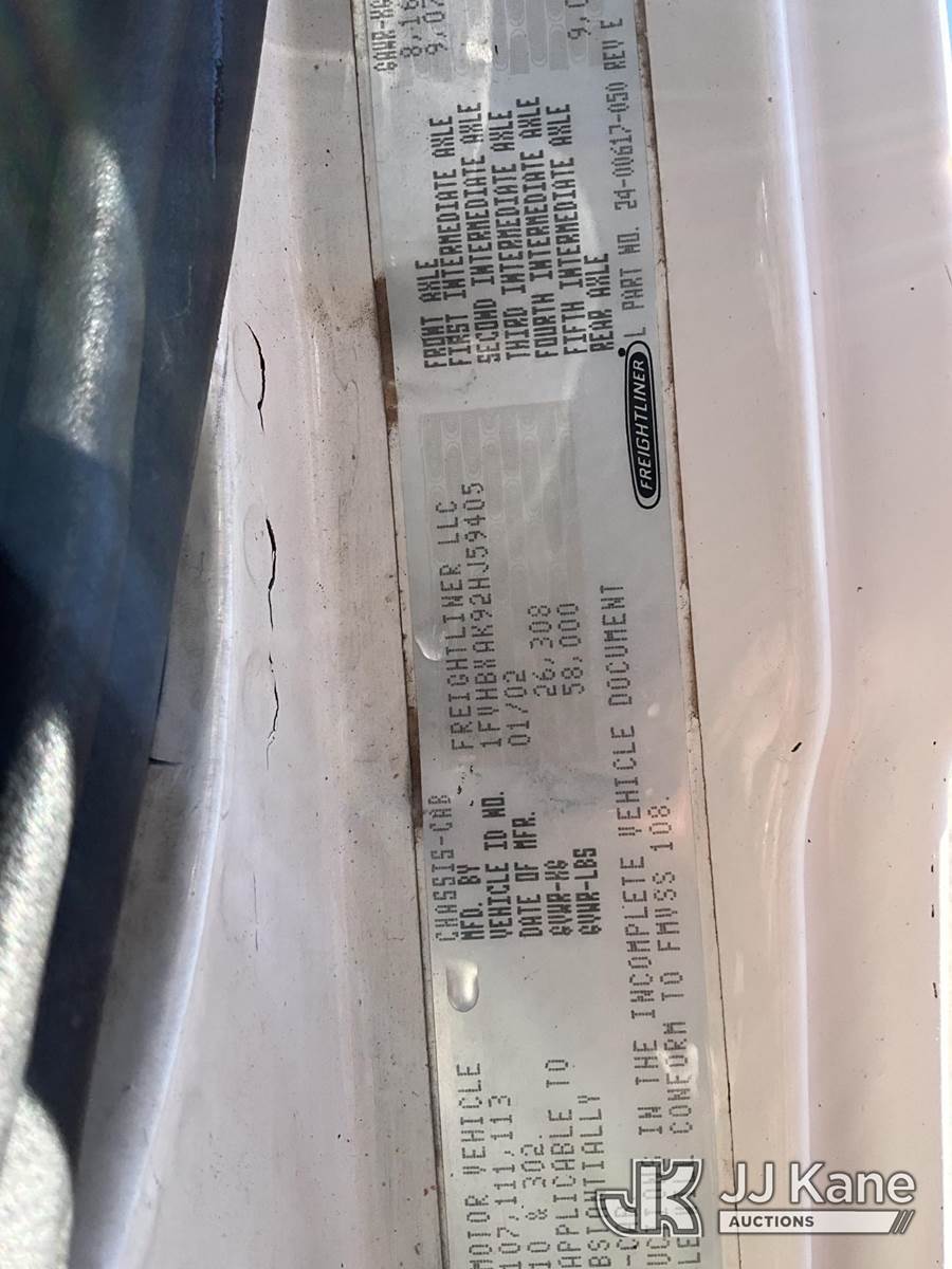 Altec A77T-E93, 98 ft, Articulating & Telescopic Material Handling Elevator Bucket Truck s/n 0102CT0407, with two-man bucket & 4 hyd outriggers, rear mounted on 2002 Freightliner FL80 6x6 Utility Truck, 7.2L L6 diesel, 7-spd, A/C, (Exempt from Odometer Disclosure - Reads 70,434 miles) (Runs, Moves & Upper Operates) (Bucket is Partially Unaligned, Missing Upper Plate) (Reads 1,010 hours) This is a Titled Item NOTE: This unit is being sold AS IS/WHERE IS via Timed Auction and is located in Kalkaska, MI. For more information & removal arrangements please contact Steve Morse @ 517-983-9026. (Missing manuals, See Auction Company for Manufacturers Information to obtain manuals) (Buyer is responsible for removal. Assistance by consignor or JJ Kane Auctioneers is not assured.)