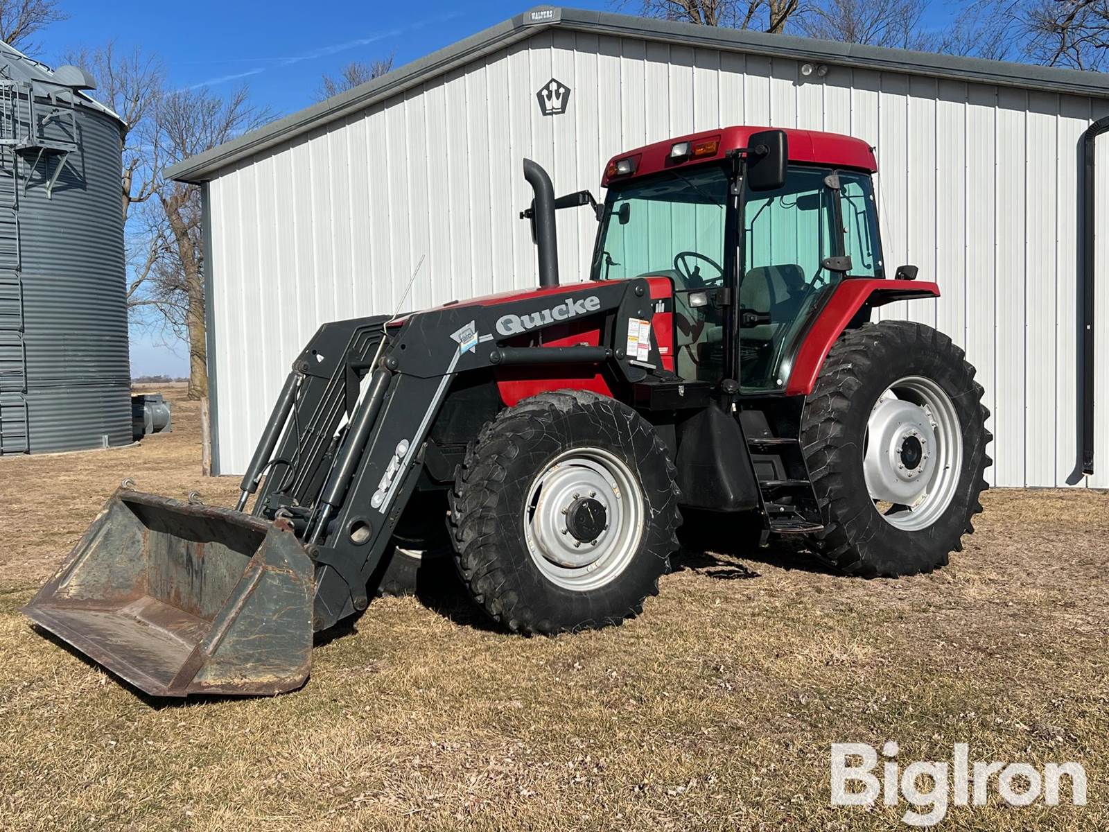 2002 Case IH MX120 MFWD Tractor, 3,140 hrs showing, 120 hp, CDC 5.9L 6-cyl diesel, 16 Speed Partial Power Shift, 540 & Small 1000 PTO, 3 Hyd Outlets, 14.9R28 Front tires, 18.4R38 Rear tires, 3-Pt, Quicke Q770 Loader w/ 87" Bucket & Soft Drive, Heat/AC/Radio, SN: JJA0114577