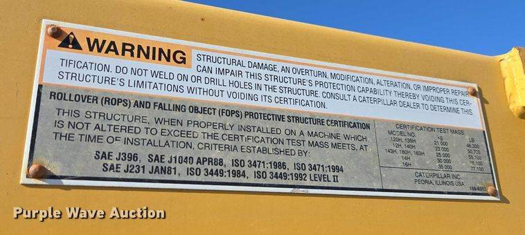 2012 Caterpillar 140H motor grader, Hours: 10,253 on meter, Engine, Caterpillar 3175, Serial: 3PD07165, Cylinders: 6, Fuel type: Diesel,...