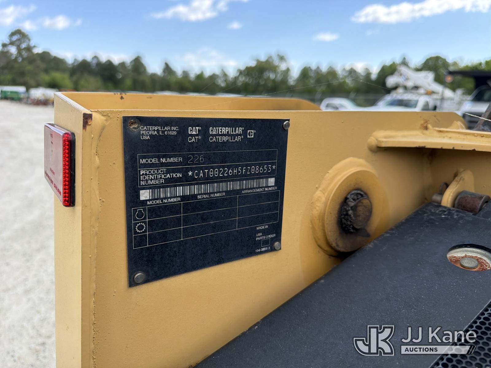 2002 Caterpillar 226 Skid Steer Loader, s/n CAT00226H5FZ08653, Perkins diesel, Hydrostatic, with GP bucket, aux hyd, joystick controls & EROPS, (Runs, Moves & Operates) (Reads 1,222 hours) NOTE: This unit is being sold AS IS/WHERE IS via Timed Auction and is located in Chester, VA. Inspection & preview days for this unit are the 2 business days prior to the first day of items closing for this auction, item is located at 13301 Great Coastal Dr Chester, VA 23836 and hours of operations are 7am-3pm. For pre-sale questions, please contact Doug Caton @ 804-807-4574. (Buyer is responsible for removal. Assistance by consignor or JJ Kane Auctions is not assured.)