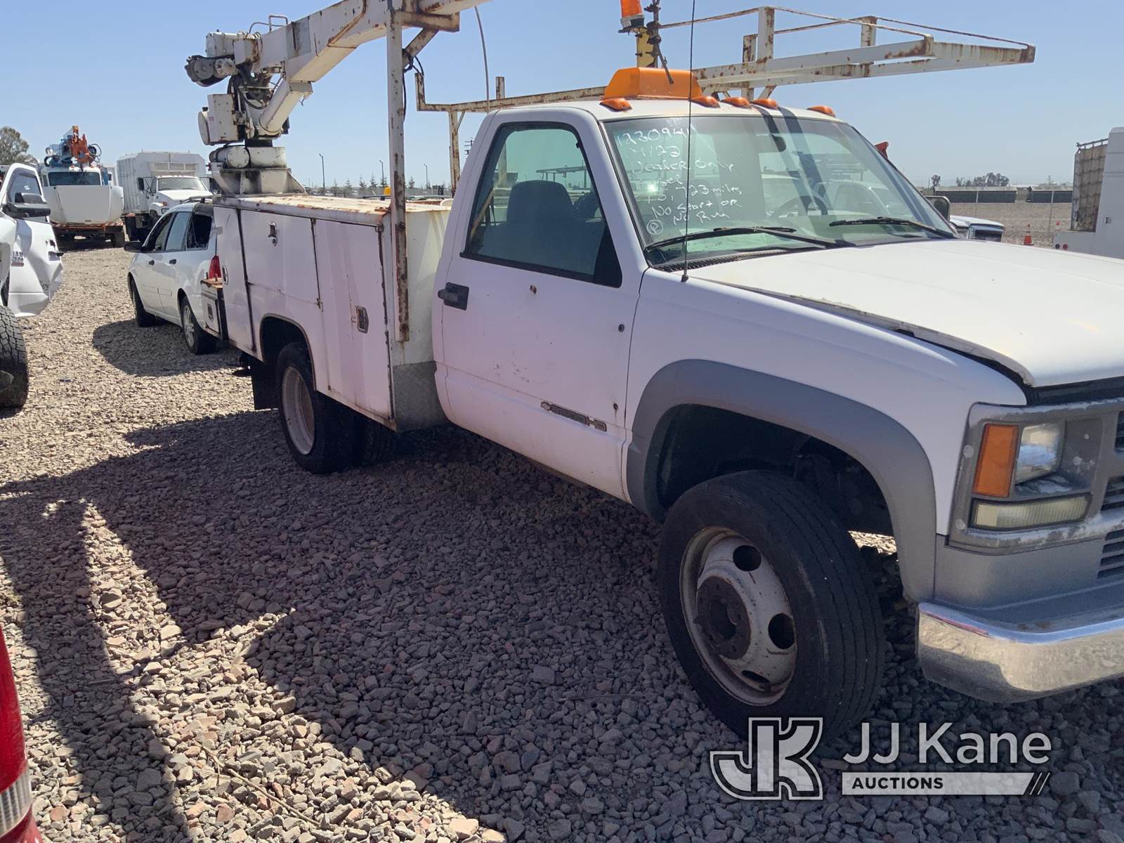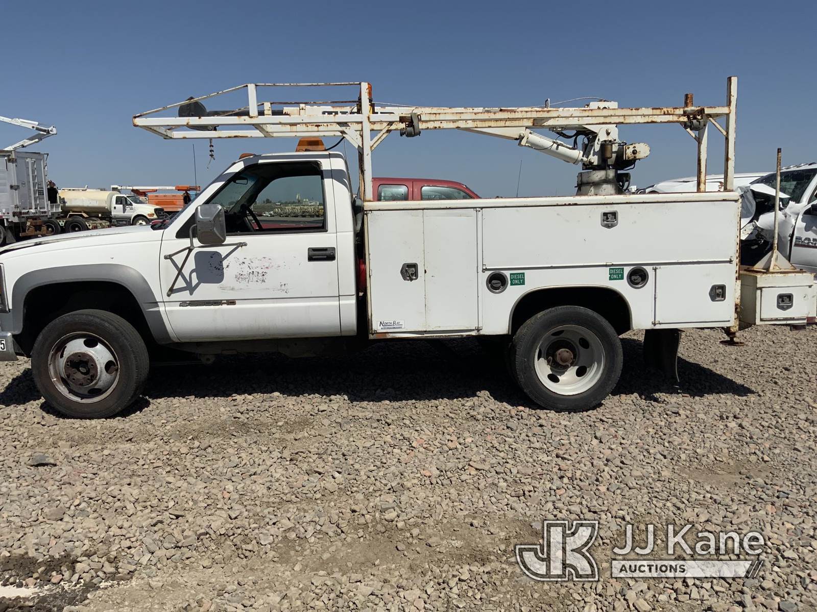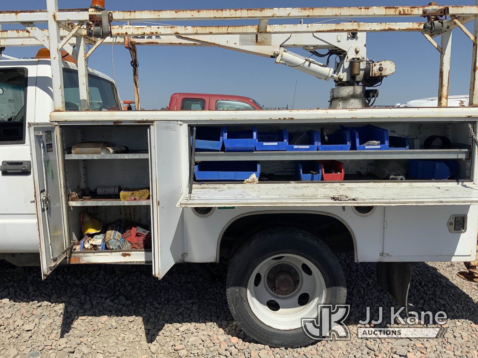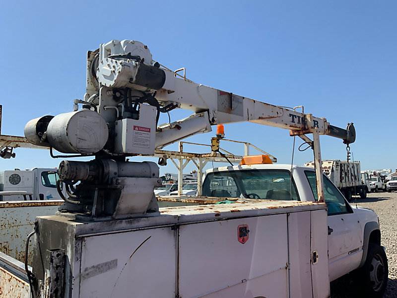 2002 Chevrolet Silverado 3500HD Service Truck, 6.5L Turbo diesel, Auto, with Tiger service body, International crane, S/N: 1685 6EH. MFG Date: 2-15-02, (Exempt from Odometer Disclosure - Reads 75,723 miles) (Not Running, Conditions Unknown) (Driveshaft Disconnected, Ignition Damaged) (Bidding Restricted to Licensed Vehicle Dealers Only), This is a Titled Item NOTE: This unit is being sold AS IS/WHERE IS via Timed Auction and is located in Dixon, CA. Inspection & preview days for this unit are the 2 business days prior to the first day of items closing for this auction, item is located at 8668 Sparling Ln Dixon, CA 95620 and hours of operations are 8a-4p. For pre-sale questions, please contact JJ Kane Staff at (707) 678-8060 (dixon@jjkane.com). Dealer License Number 45696. (Buyer is responsible for removal. Assistance by consignor or JJ Kane Auctions is not assured.)