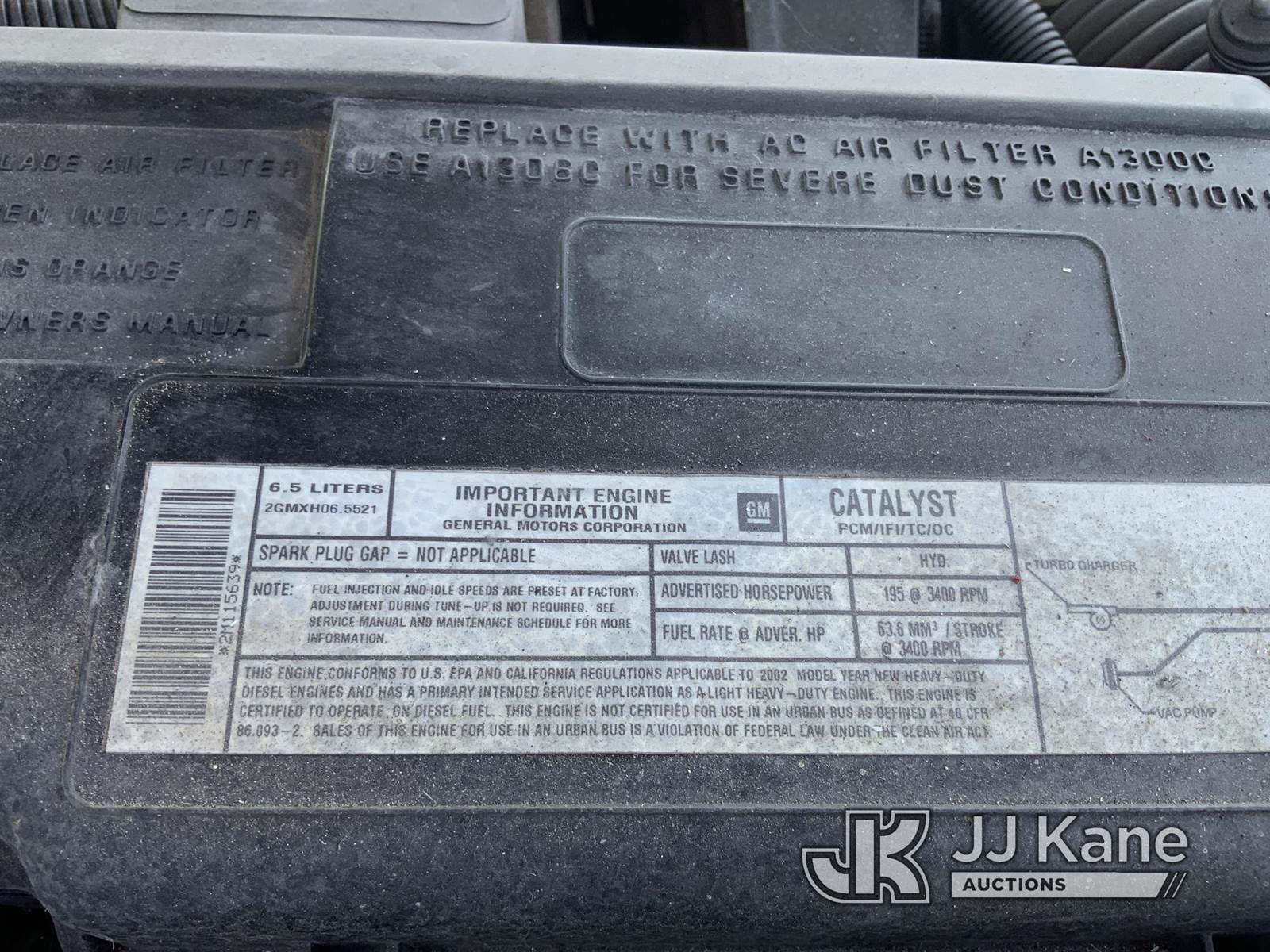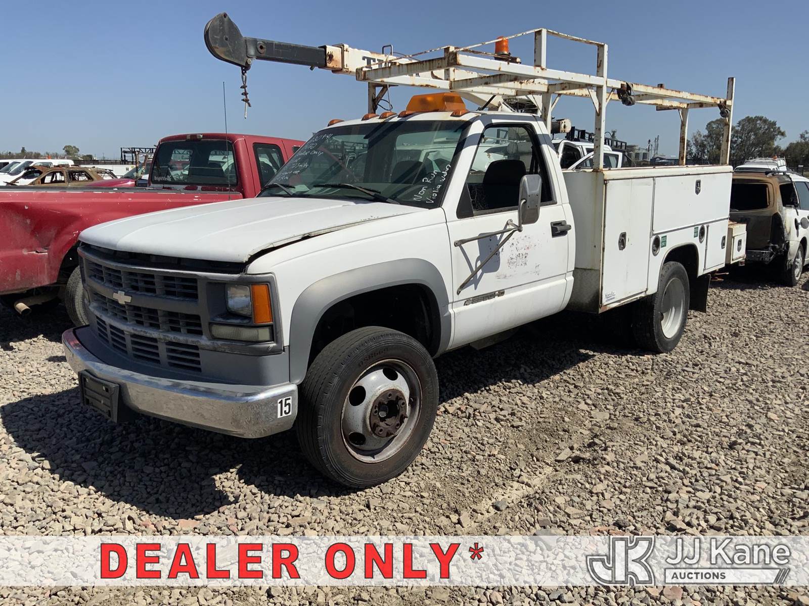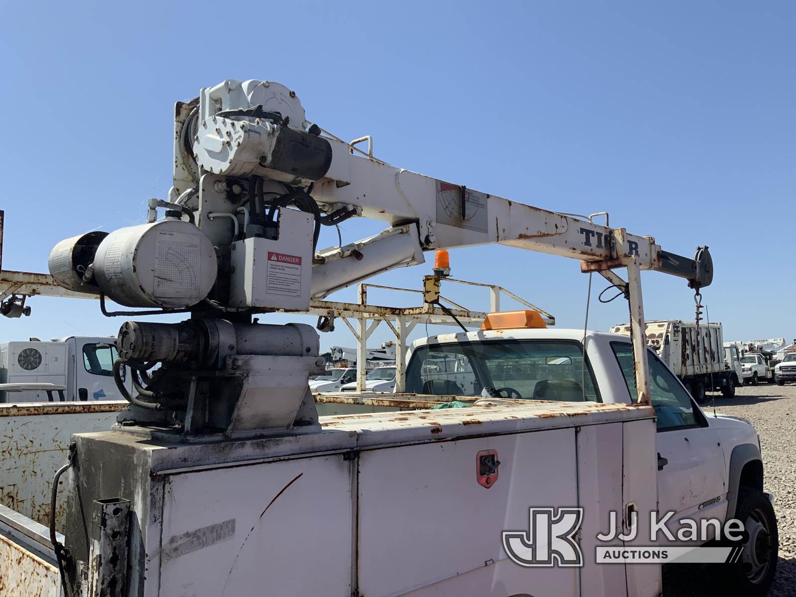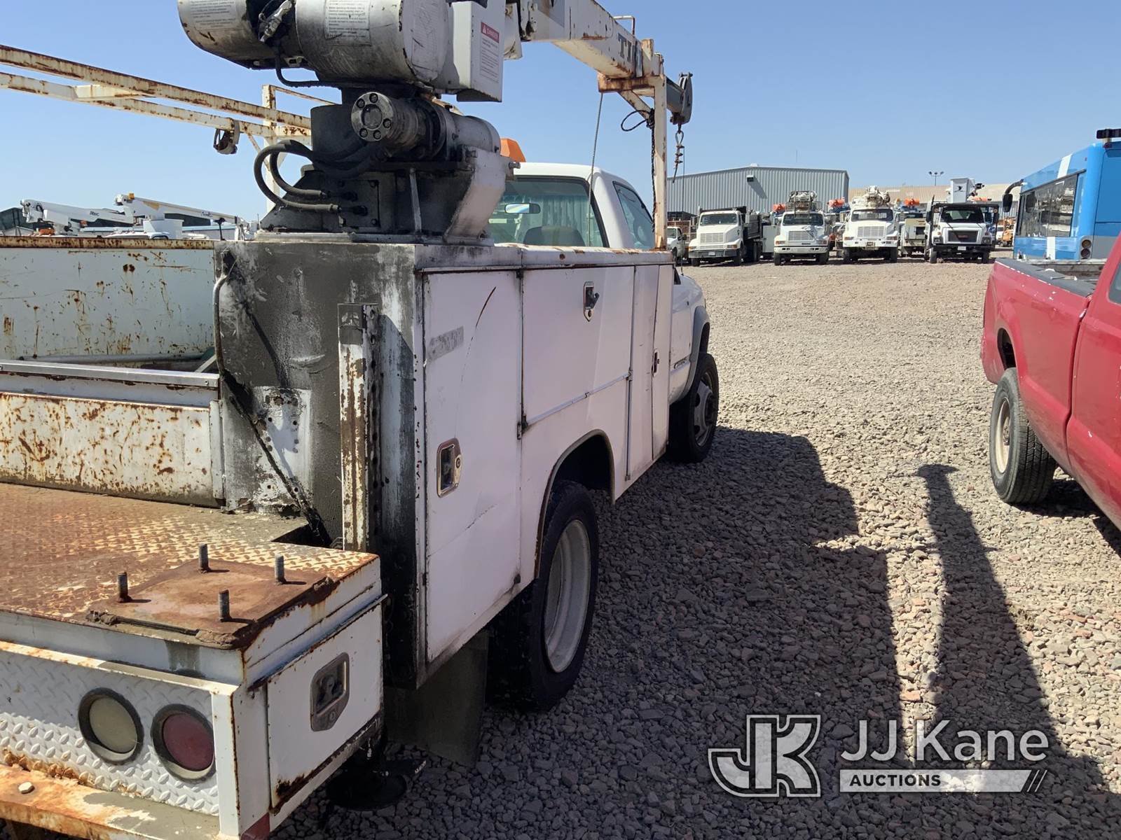 2002 Chevrolet Silverado 3500HD Service Truck, 6.5L Turbo diesel, Auto, with Tiger service body, International crane, S/N: 1685 6EH. MFG Date: 2-15-02, (Exempt from Odometer Disclosure - Reads 75,723 miles) (Not Running, Conditions Unknown) (Driveshaft Disconnected, Ignition Damaged) (Bidding Restricted to Licensed Vehicle Dealers Only), This is a Titled Item NOTE: This unit is being sold AS IS/WHERE IS via Timed Auction and is located in Dixon, CA. Inspection & preview days for this unit are the 2 business days prior to the first day of items closing for this auction, item is located at 8668 Sparling Ln Dixon, CA 95620 and hours of operations are 8a-4p. For pre-sale questions, please contact JJ Kane Staff at (707) 678-8060 (dixon@jjkane.com). Dealer License Number 45696. (Buyer is responsible for removal. Assistance by consignor or JJ Kane Auctions is not assured.)