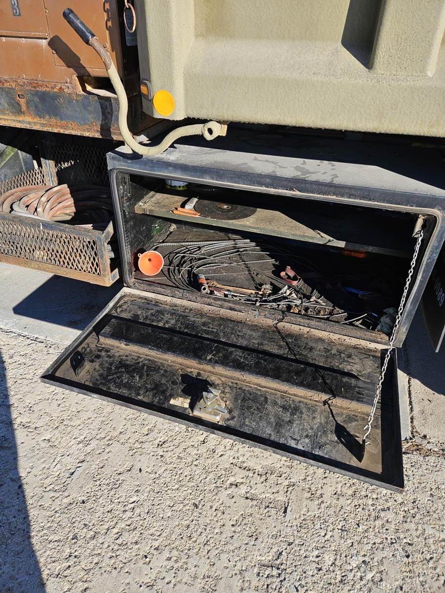 2002 Chevrolet C 7500 combo dump/service single axle, 69k miles, 4x2 drive, truck, Cat 3126 diesel engine 7.2 L 300 HP, 10 ft dump bed, GVWR 33,000 lbs., spring suspension, Allison 300 6 speed manual transmission, Rand McNally Industrial Air Compressor incorporated1979 hours on compressor(needs a new fuel pump), 2 tool boxes, 2 catch boxes, Pintle hitch, air brakes.