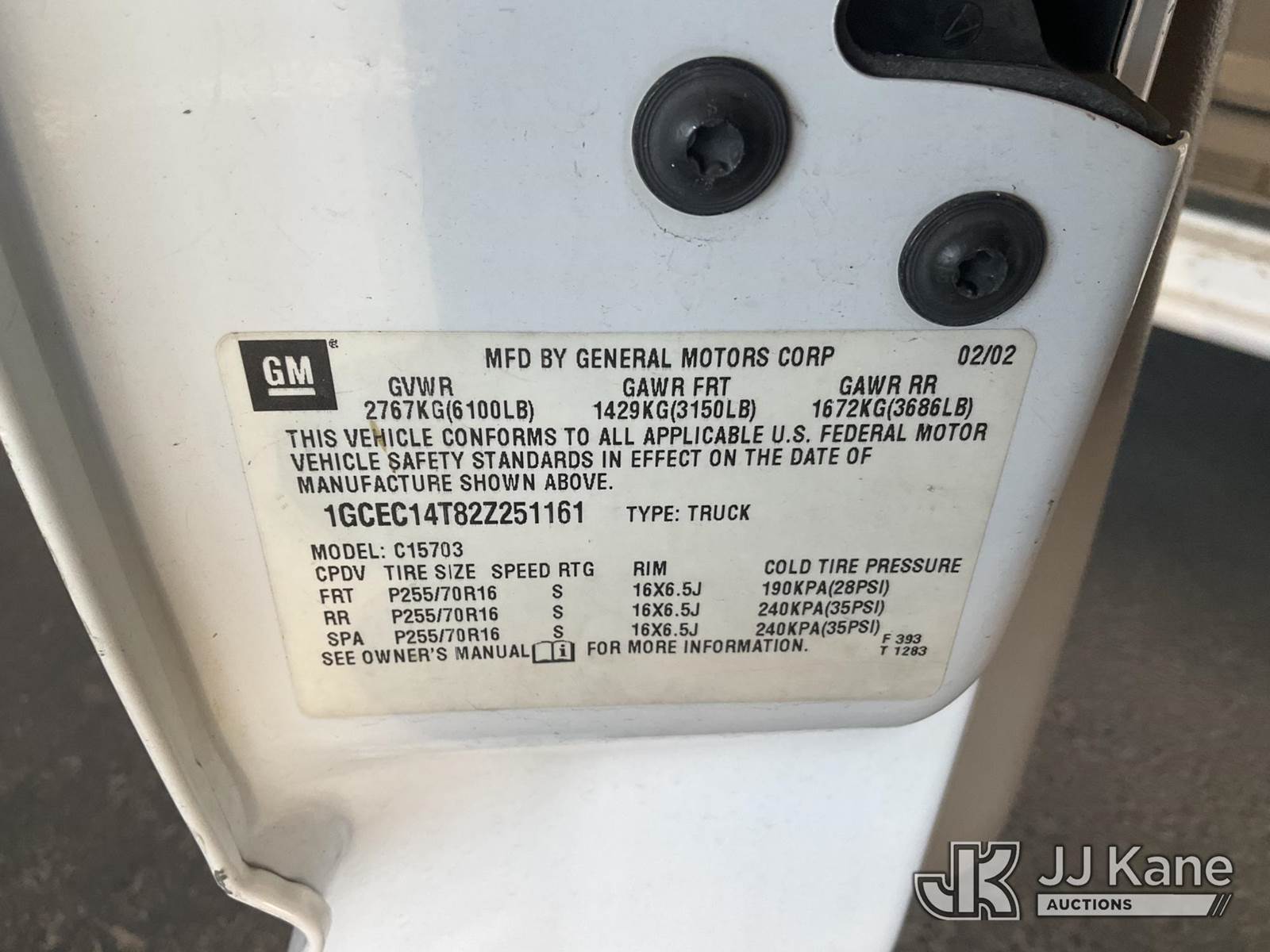 2002 Chevrolet Silverado 1500 Pickup Truck, s/n 1GCEC14T82Z251161, 8-cyl gas, 4-Speed Automatic, A/C, with Tow package, (Exempt from Odometer Disclosure - Reads 152,544 miles) (Runs & Moves) (Broken Driver Side Mirror, Engine Light On) (Bidding Restricted to Licensed Vehicle Dealers Only), This is a Titled Item NOTE: This unit is being sold AS IS/WHERE IS via Timed Auction and is located in Jurupa Valley, CA. Inspection & preview days for this unit are the 2 business days prior to the first day of items closing for this auction, item is located at 4510 Muth Way Jurupa Valley, CA 92509 and hours of operations are 8a-4p. For pre-sale questions, please contact please contact Office Staff @ (310) 353-7140. Dealer License Number 45696. (Buyer is responsible for removal. Assistance by consignor or JJ Kane Auctions is not assured.)