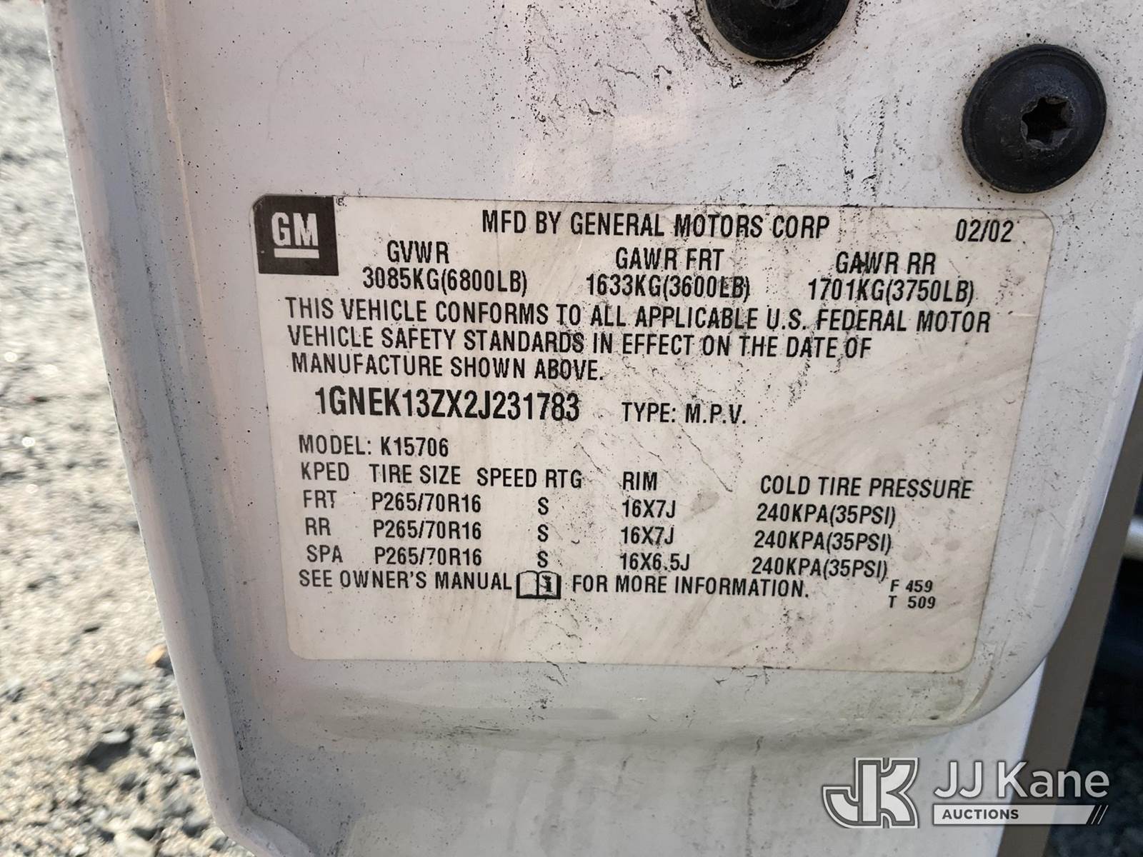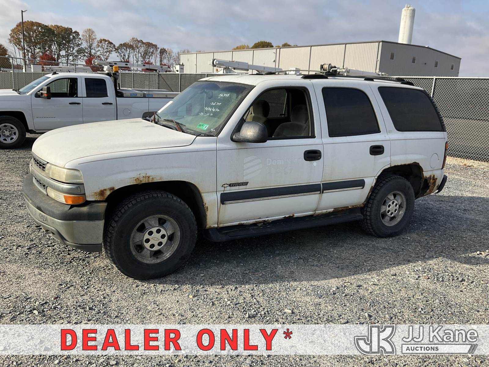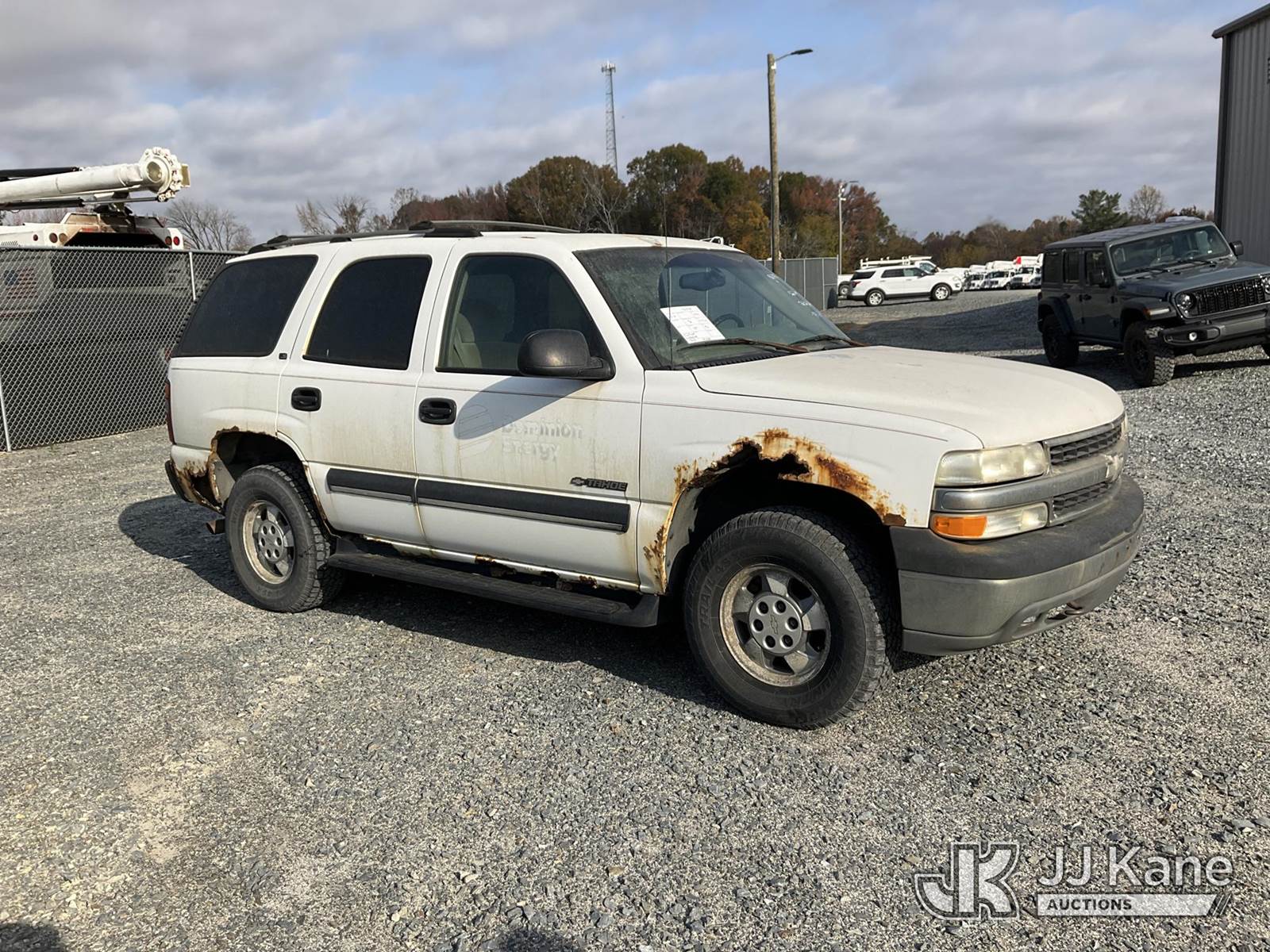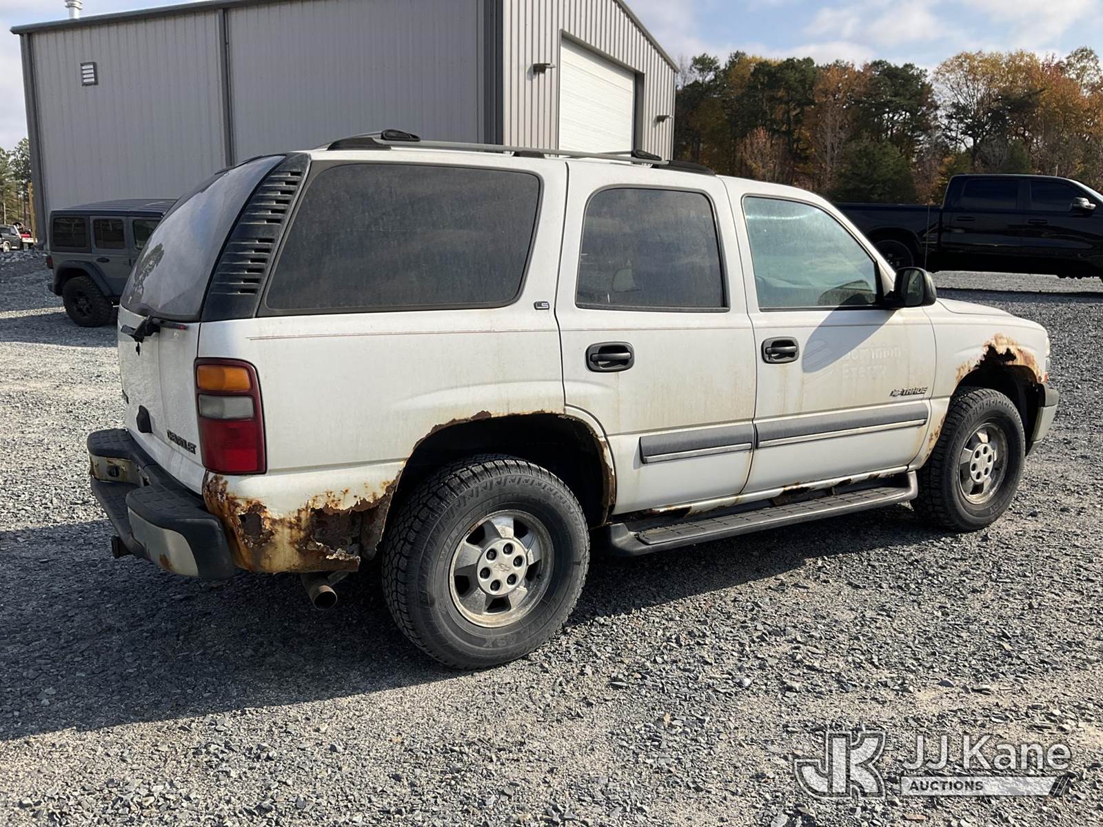 2002 Chevrolet Tahoe 4x4 4-Door Sport Utility Vehicle, 8-cyl gas, Auto, A/C, (Exempt from Odometer Disclosure - Reads 122,978 miles) (Runs & Moves) (Jump To Start, ABS Light On, Paint/Body/Rust Damage ) (TITLE DELAY) (Bidding Restricted to Licensed Vehicle Dealers and Out of State Buyers Only), This is a Titled Item NOTE: This unit is being sold AS IS/WHERE IS via Timed Auction and is located in China Grove, NC. Inspection & preview days for this unit are the 2 business days prior to the first day of items closing for this auction, item is located at 820 E NC Hwy 152 China Grove, NC 28023 and hours of operations are 8a-4p. For pre-sale questions, please contact Office Staff @ (704) 674-1113. Sales Tax Collected Based on Residency Title To Come From Leasing Company In 30 Days(Buyer is responsible for removal. Assistance by consignor or JJ Kane Auctioneers is not assured.)