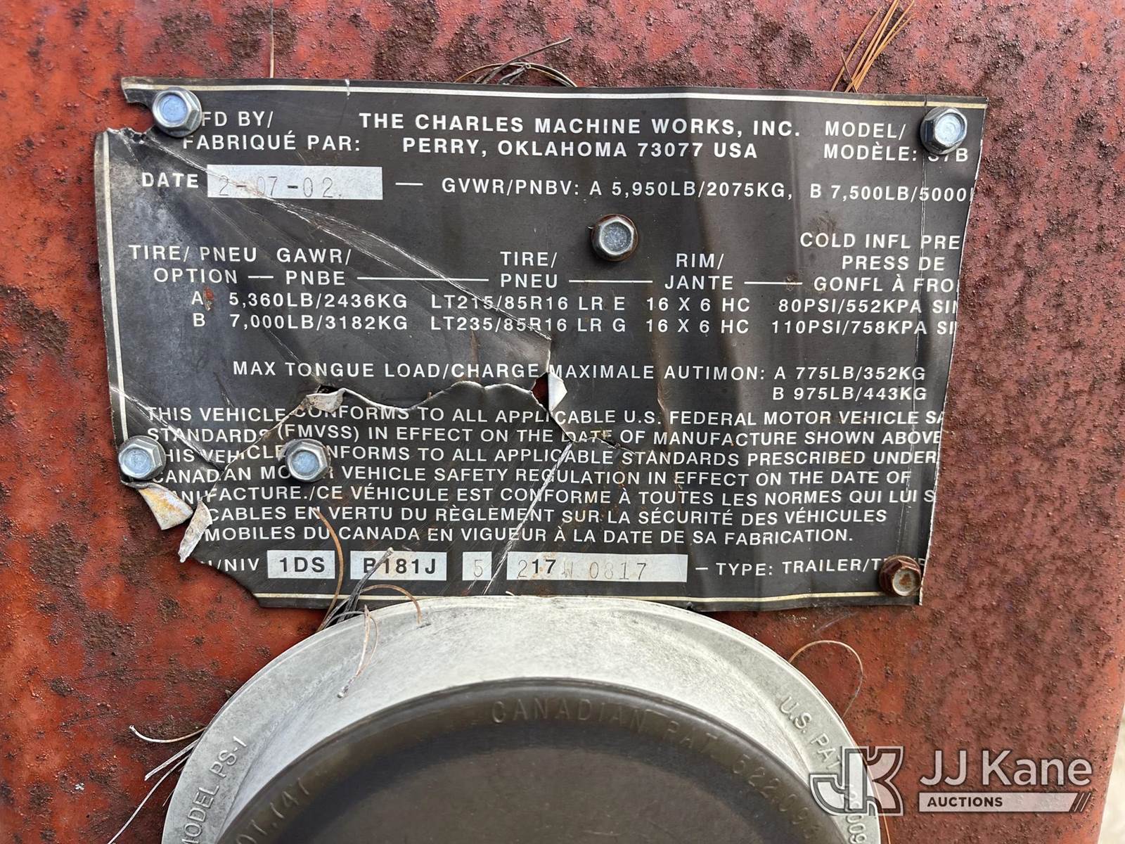 2002 Ditch Witch S7B S/A Tilt Deck Tagalong Equipment Trailer, with 12ft x5ft level deck between wheels, (No Hitch, No Plug, Dry Rotted Tires) This is a Titled Item NOTE: This unit is being sold AS IS/WHERE IS via Timed Auction and is located in Smock, PA. Inspection & preview days for this unit are the 2 business days prior to the first day of items closing for this auction, item is located at 1000 Franklin Dr Smock, PA 15480 and hours of operations are 7:00 am to 3:30 pm. For pre-sale questions, please contact Alaina White @ (724) 562-2575 or Alaina.White@JJKane.com. (Buyer is responsible for removal. Assistance by consignor or JJ Kane Auctions is not assured.)