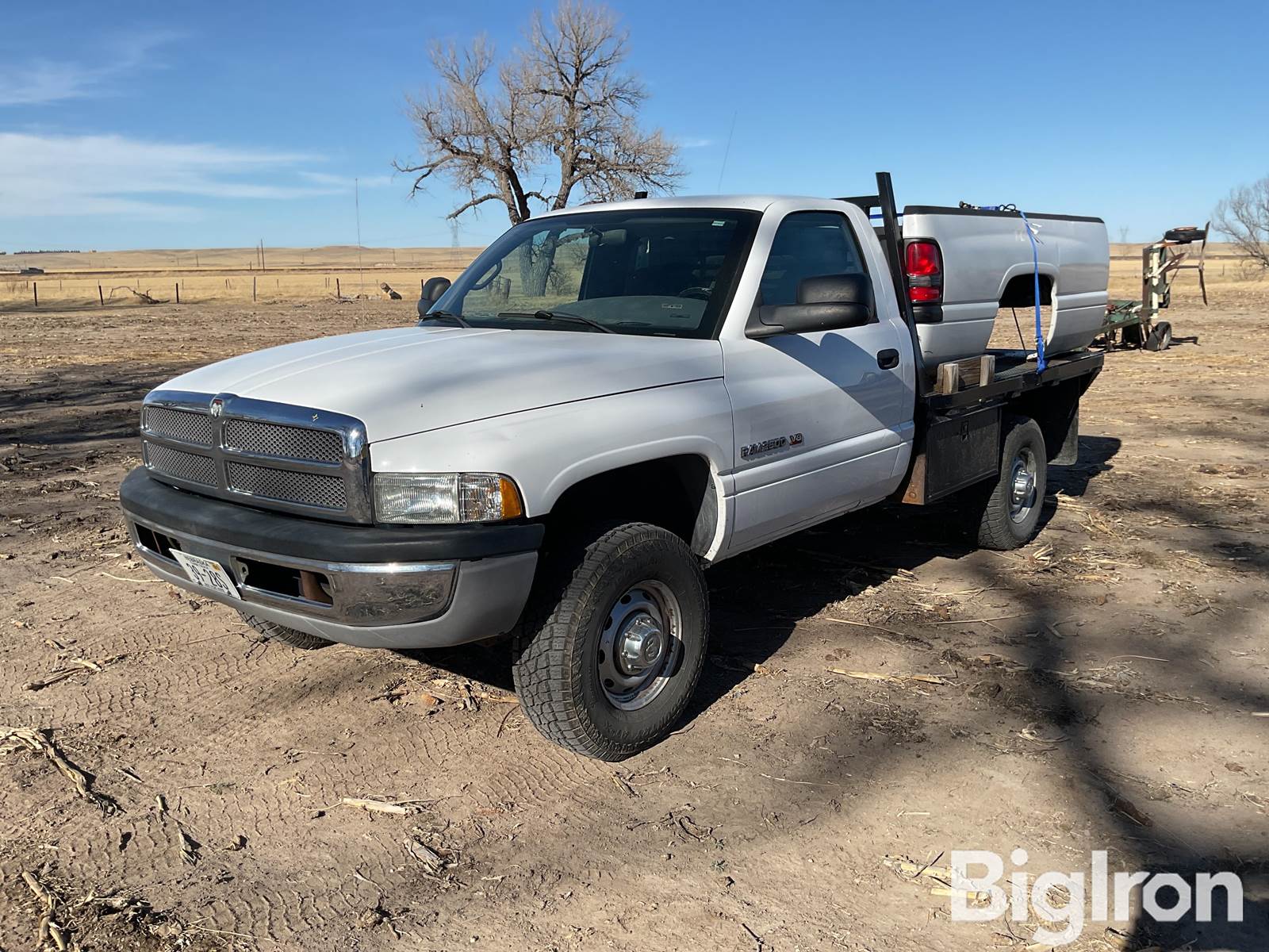 2002 Dodge Ram 2500 4x4 Flatbed Pickup w/Box, 106,025 miles showing, Title Will Be Marked Miles Exempt, Chrysler 5.9L V-8 Magnum, Gas, Chrysler, 45 Forward Speeds, Automatic Transmission, 4WD, 265/75R16 Front Tires, 265/75R16 Rear Tires, Steel Rims, Heater, AC, Radio, 8’ Steel Flatbed, Under Mount Tool Boxes, Headache Rack, Receiver Hitch, Gooseneck Ball Hitch, Steel Flatbed With Rub Rails And Stake Pockets, Comes Original Steel Box, Heat, AC, Radio, VIN: 3B7KF26Z82M232418