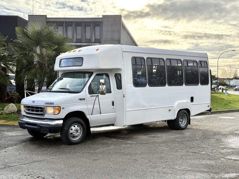2014 Ford Econoline E-450 Super Duty 14-passenger bus powered by a 6.8L V10 engine with automatic transmission and rear-wheel drive....