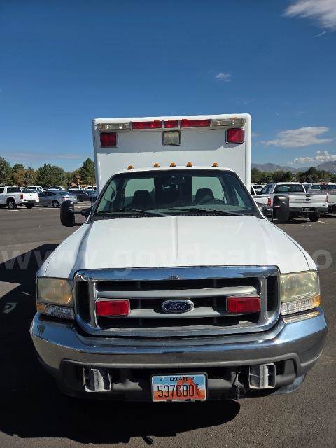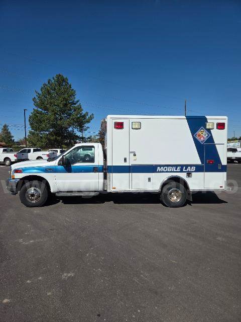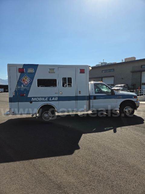 F350 SUPERDUTY TRUCK AMBULANCE Airbags: Yes Drive Type : 4WD/4-Wheel Drive/4x4 Horsepower : 215 Fuel : Diesel Make : FORD Model : F-350 Year : 2002 VIN : 1FDWF37F72EA69709 (4) LOCKABLE EXTERNAL STORAGE COMPARTMENTS OVERALL IN GOOD SHAPE WITH MINOR STAINS ON SEATING INTERIOR OF MOBILE LAB IN GOOD SHAPE WITH PLENTY OF STORAGE TIRES ARE IN GOOD SHAPE, EXTERIOR IN GOOD SHAPE (2) NEW BATTERIES INSTALLED INVOICE #207730 STALL 43