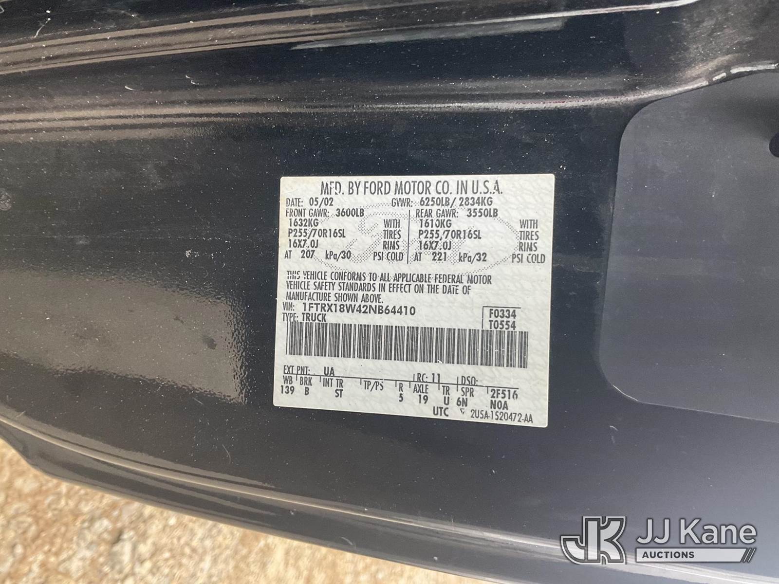 2002 Ford F150 Extended-Cab Pickup Truck, s/n 1FTRX18W42NB64410, 8-cyl gas, Auto, 4wd, True Mileage Unknown Abandoned Vehicles Have Been Sitting For Extended Periods of Time and Must Be Towed From The Auction Yard. No Loading Assistance Available. Successful Bidders Must Provide Their Own Tools To Be Prepared For Dead Batteries, Flat Tires & Means For Loading Non-Running Vehicles (Not Running, No Crank, Drivetrain Condition Unknown, Check Engine Light On.Broken Shifter, KEY - Conditions Unknown - No Title; AS IS; Vehicle Abandoned on Massachusetts Port Authoritys Property. Massachusetts residents can apply for title using Bill of Sale per Mass Act of 1963 Ch. 543. The Massachusetts Port Authority warrants title to the Buyer only against liens, encumbrances and claims arising by or through the Massachusetts Port Authority, and not otherwise) (Residents of other states must check with their state department of motor vehicles regarding the ability to obtain a vehicle title in their state. JJ Kane Auctioneers and the Massachusetts Port Authority make no representations or assurances that non-Massachusetts residents will be able to obtain a vehicle title) (Members or employees of the Authority, their immediate family members, or agents, are prohibited from bidding.) NOTE: This unit is being sold AS IS/WHERE IS via Timed Auction and is located in Shrewsbury, MA. Inspection & preview days for this unit are the 2 business days prior to the first day of items closing for this auction, item is located at 11 Fortune Blvd Shrewsbury, MA 01545 and hours of operations are 8a-4p. For pre-sale questions, please contact Rob Gifford @ (508) 864-4126. (Buyer is responsible for removal. Assistance by consignor or JJ Kane Auctioneers is not assured.)
