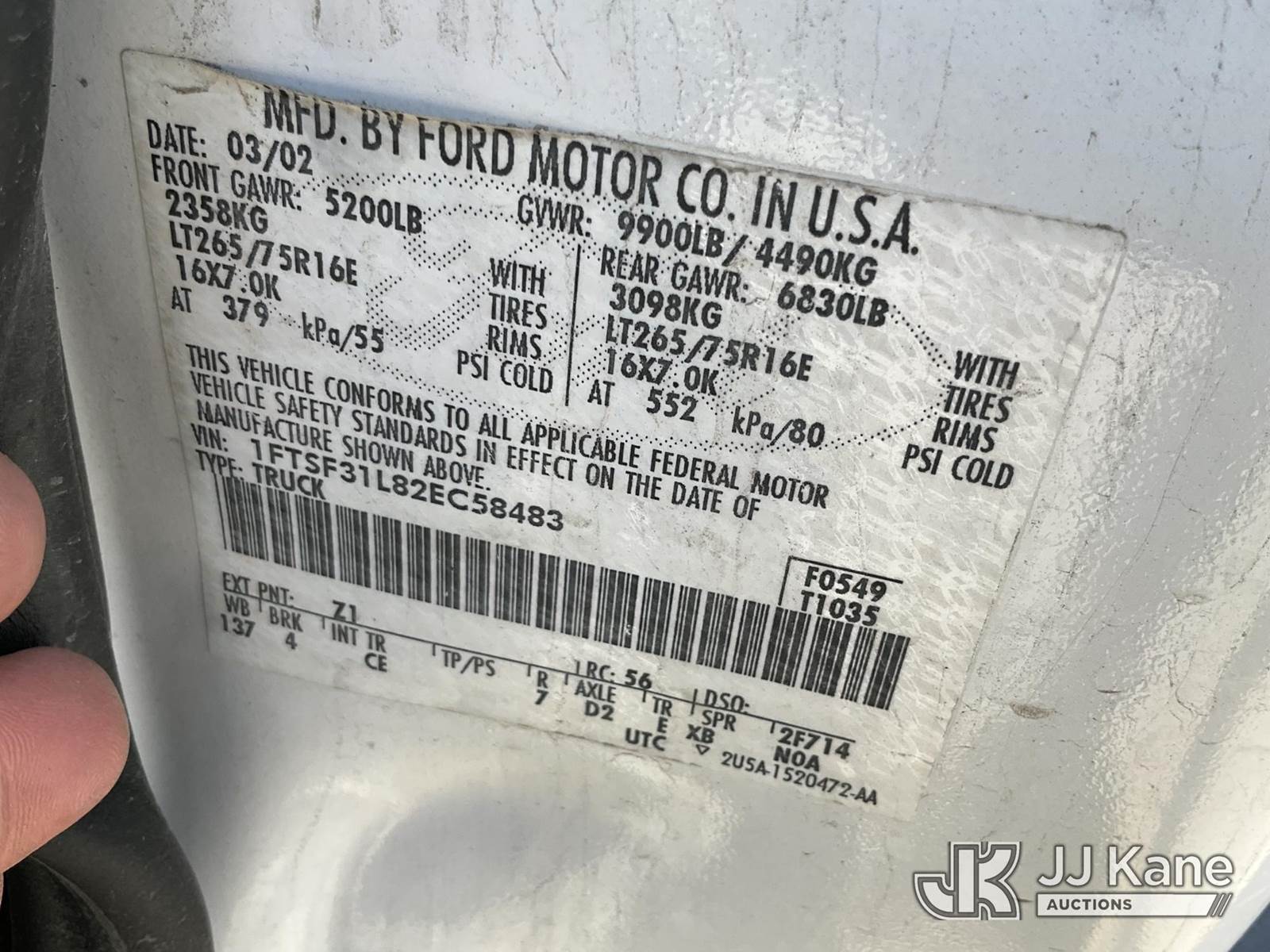 2002 Ford F350 4x4 Pickup Truck, 8-cyl gas, Auto, A/C, (Exempt from Odometer Disclosure - Reads 71,095 miles) (Runs & Moves) (Rust Damage) This is a Titled Item NOTE: This unit is being sold AS IS/WHERE IS via Timed Auction and is located in Salt Lake City, UT. Inspection & preview days for this unit are the 2 business days prior to the first day of items closing for this auction, item is located at 2353 N Redwood Rd Salt Lake City, UT 84116 and hours of operations are 8a-4p. Titles executed exactly as bidder registered. Ensure your name and/or business name and address in JJ Kane and/or ProxiBid is correct before bidding. For pre-sale questions, please contact Office Staff @ (801) 519-0123. (Buyer is responsible for removal. Assistance by consignor or JJ Kane Auctioneers is not assured.)