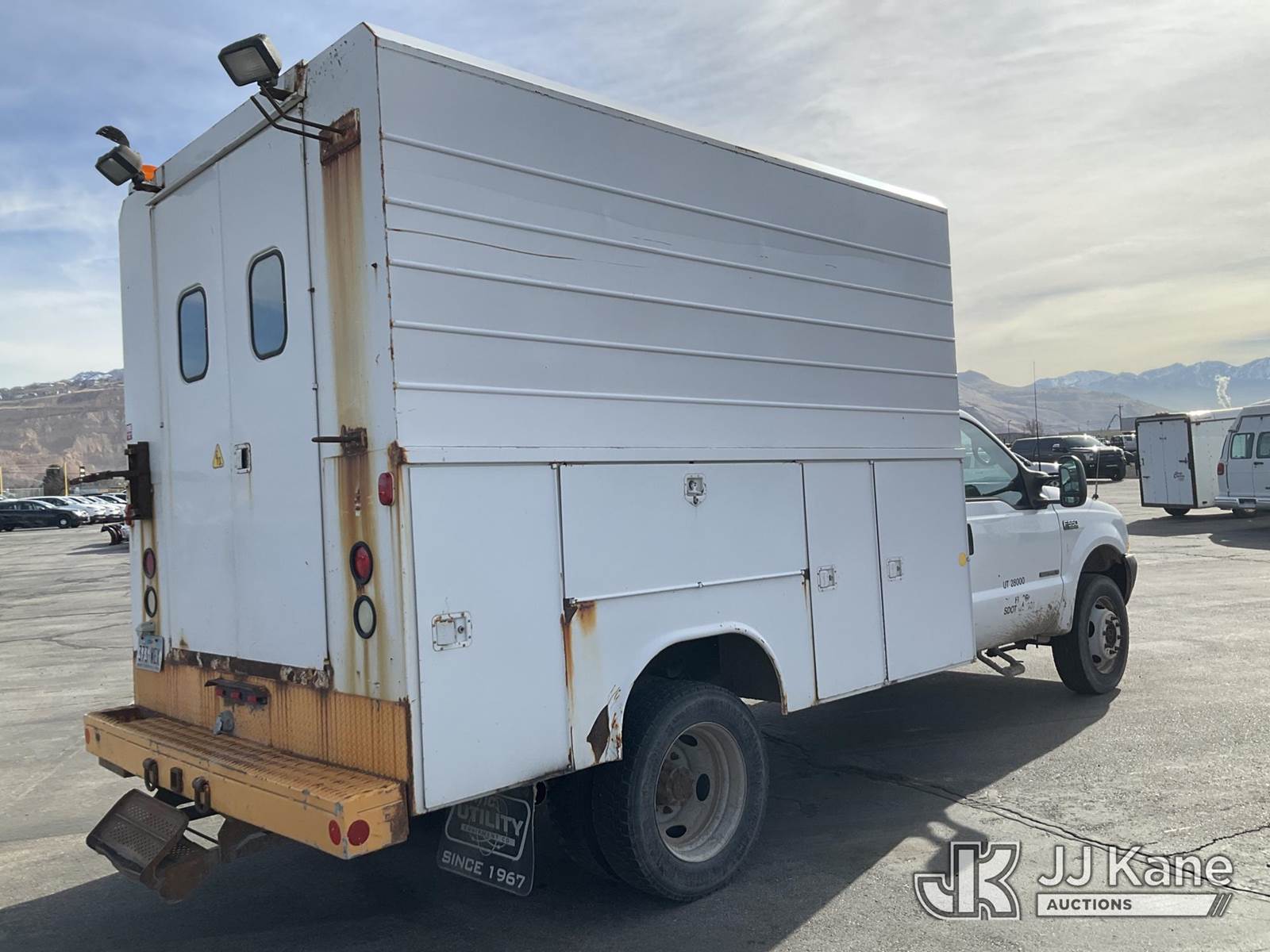 2002 Ford F550 4x4 Enclosed High-Top Service Truck, 7.3L diesel, Auto, A/C, (Exempt from Odometer Disclosure - Reads 202,950 miles) (Runs & Moves) This is a Titled Item NOTE: This unit is being sold AS IS/WHERE IS via Timed Auction and is located in Salt Lake City, UT. Inspection & preview days for this unit are the 2 business days prior to the first day of items closing for this auction, item is located at 2353 N Redwood Rd Salt Lake City, UT 84116 and hours of operations are 8a-4p. Titles executed exactly as bidder registered. Ensure your name and/or business name and address in JJ Kane and/or ProxiBid is correct before bidding. For pre-sale questions, please contact Office Staff @ (801) 519-0123. (Buyer is responsible for removal. Assistance by consignor or JJ Kane Auctions is not assured.)