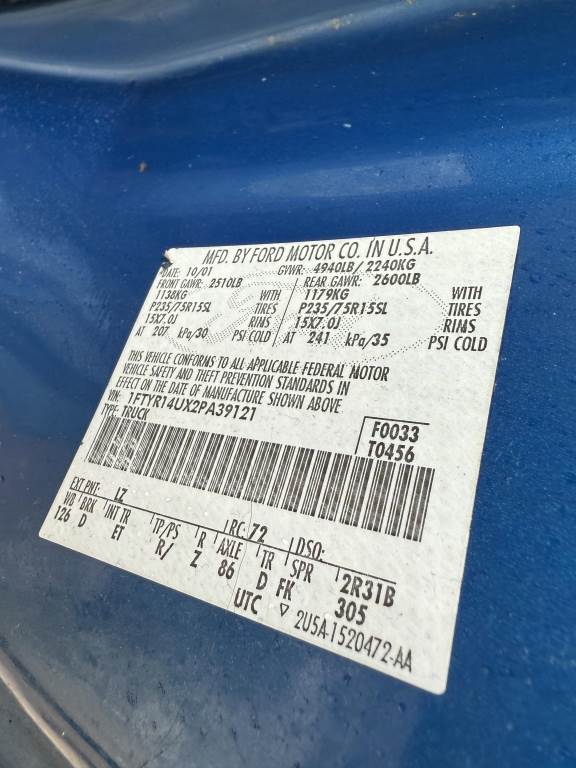 Location: Washougal WA ***End-User Consignment*** VIN: 1FTYR14UX2PA39121 Engine: 3.0L V6 Gas Transmission: Automatic *Per Seller - Odometer issue, indicated miles not accurate, seller estimates ~130,000 miles* 6' Bed, Curt tow package, Pendaliner bed liner, A/C, AM/FM/CD, spring suspension, P235/75R15 tires. Miles: 8,442 Indicated
