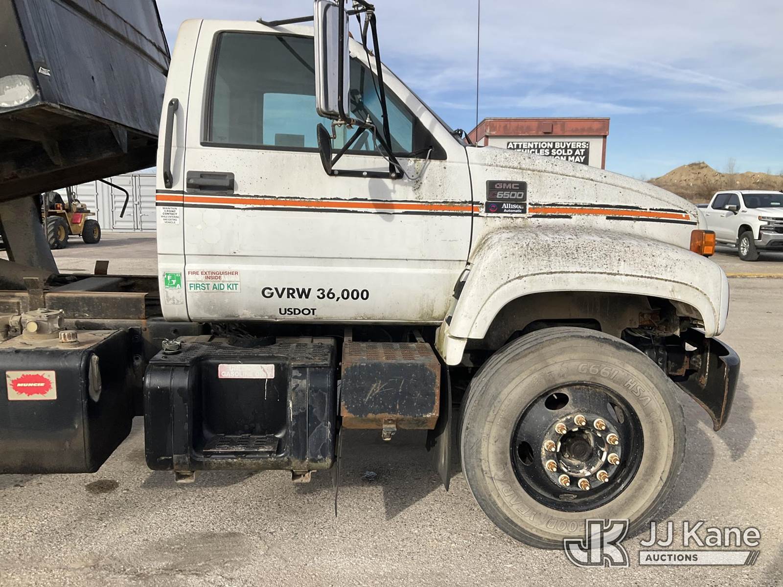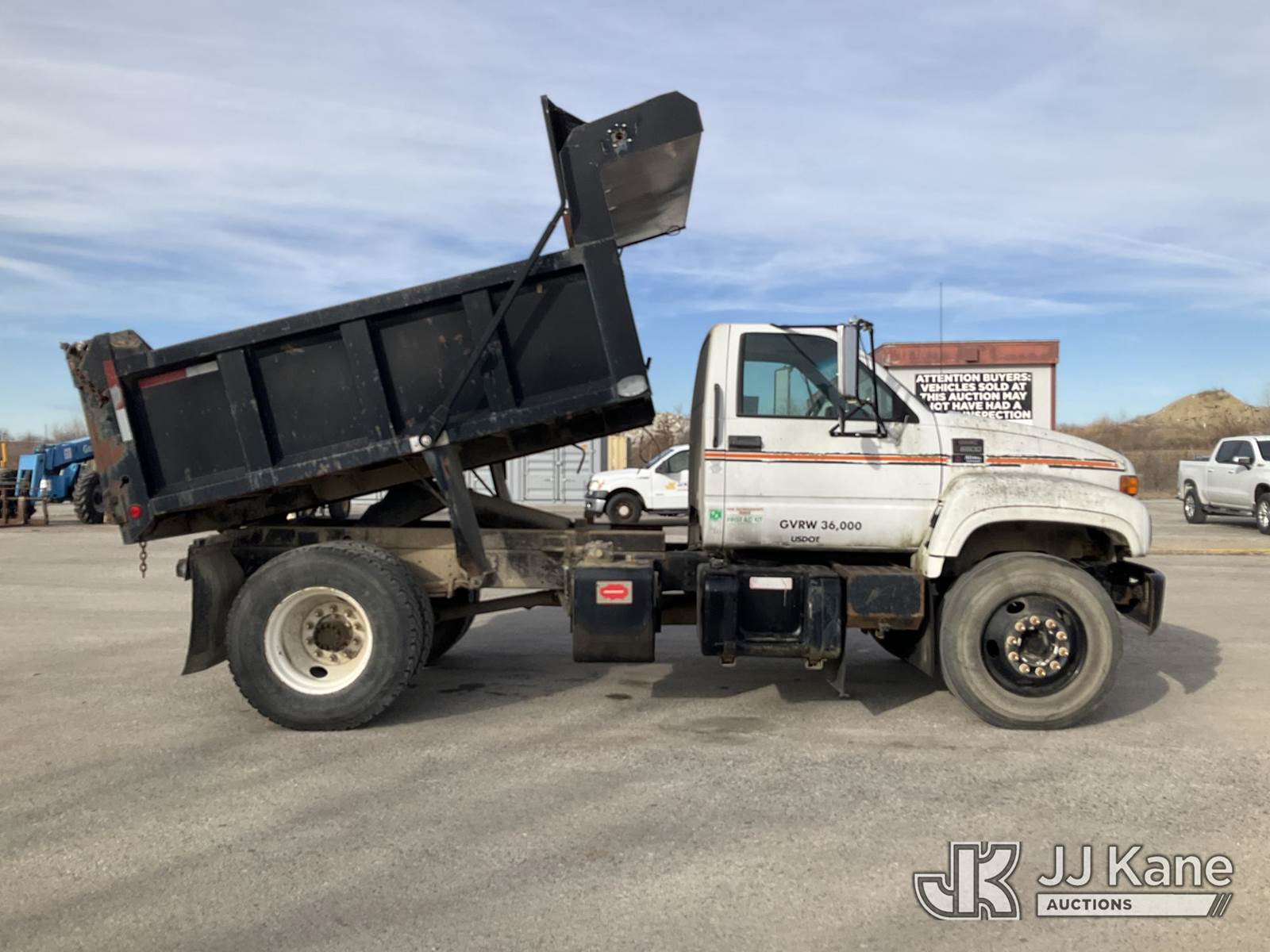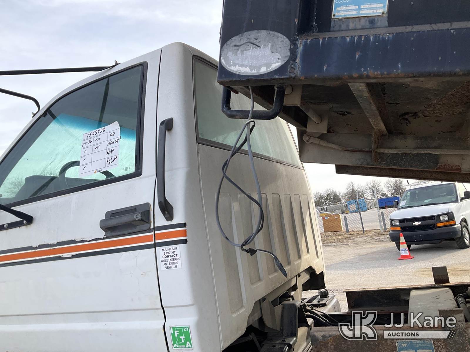 2002 GMC C7500 Dump Truck, 8-cyl gas, 4X2, Auto, A/C, with tarp cover, (Exempt from Odometer Disclosure - Reads 156,539 miles) (Not Running, Condition Unknown, Cranks Over W/ Jump, Ran Rough When Last Parked, Has Body & Rust Damage) (Seller States: Cosmetic Issues & Mechanical Work Needed, Bad Battery, Starter, Tires, & ABS, Rain Water In Floor Boards) This is a Titled Item NOTE: This unit is being sold AS IS/WHERE IS via Timed Auction and is located in Kansas City, MO. Inspection & preview days for this unit are the 2 business days prior to the first day of items closing for this auction, item is located at 962 Tel Aviv Ave Kansas City, MO 64153 and hours of operations are 8a-4p. For pre-sale questions, please contact Ricky McPherson @ (816) 610-2250. (Buyer is responsible for removal. Assistance by consignor or JJ Kane Auctions is not assured.)