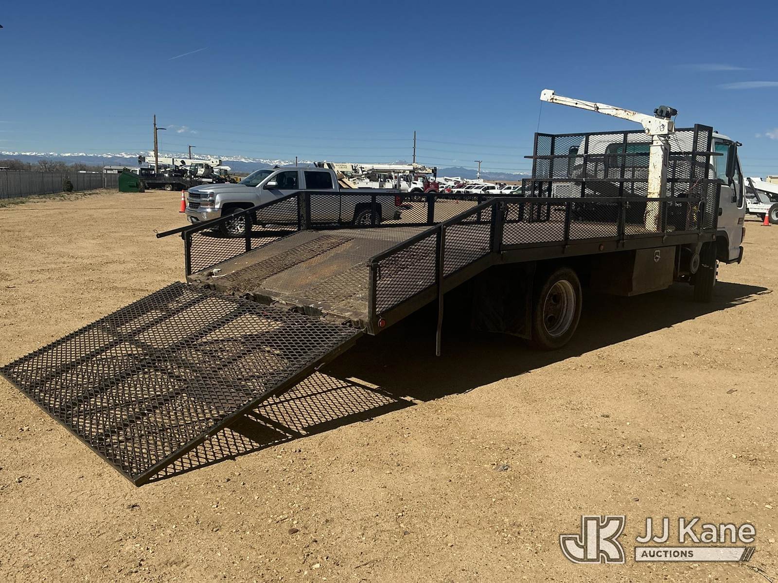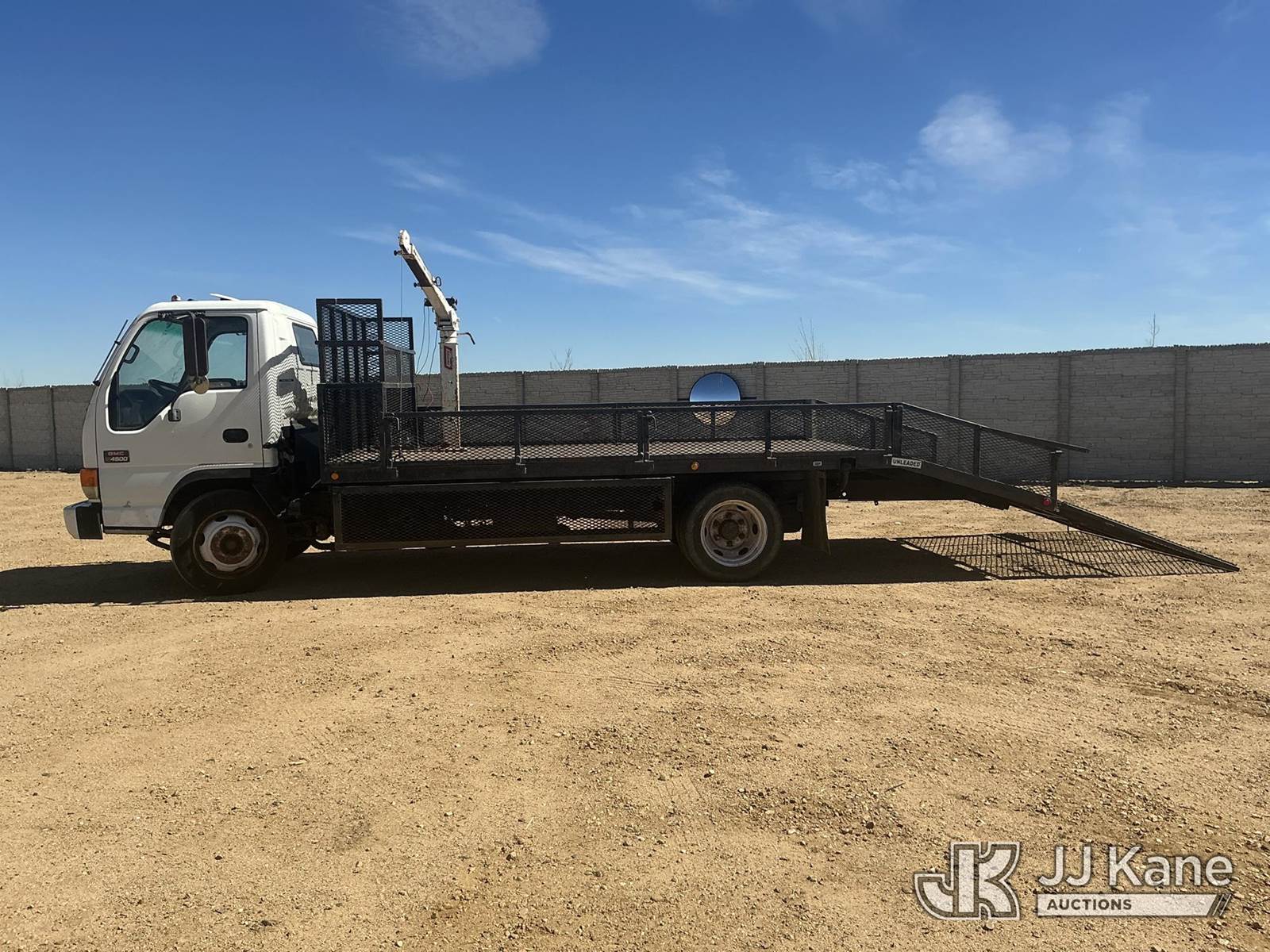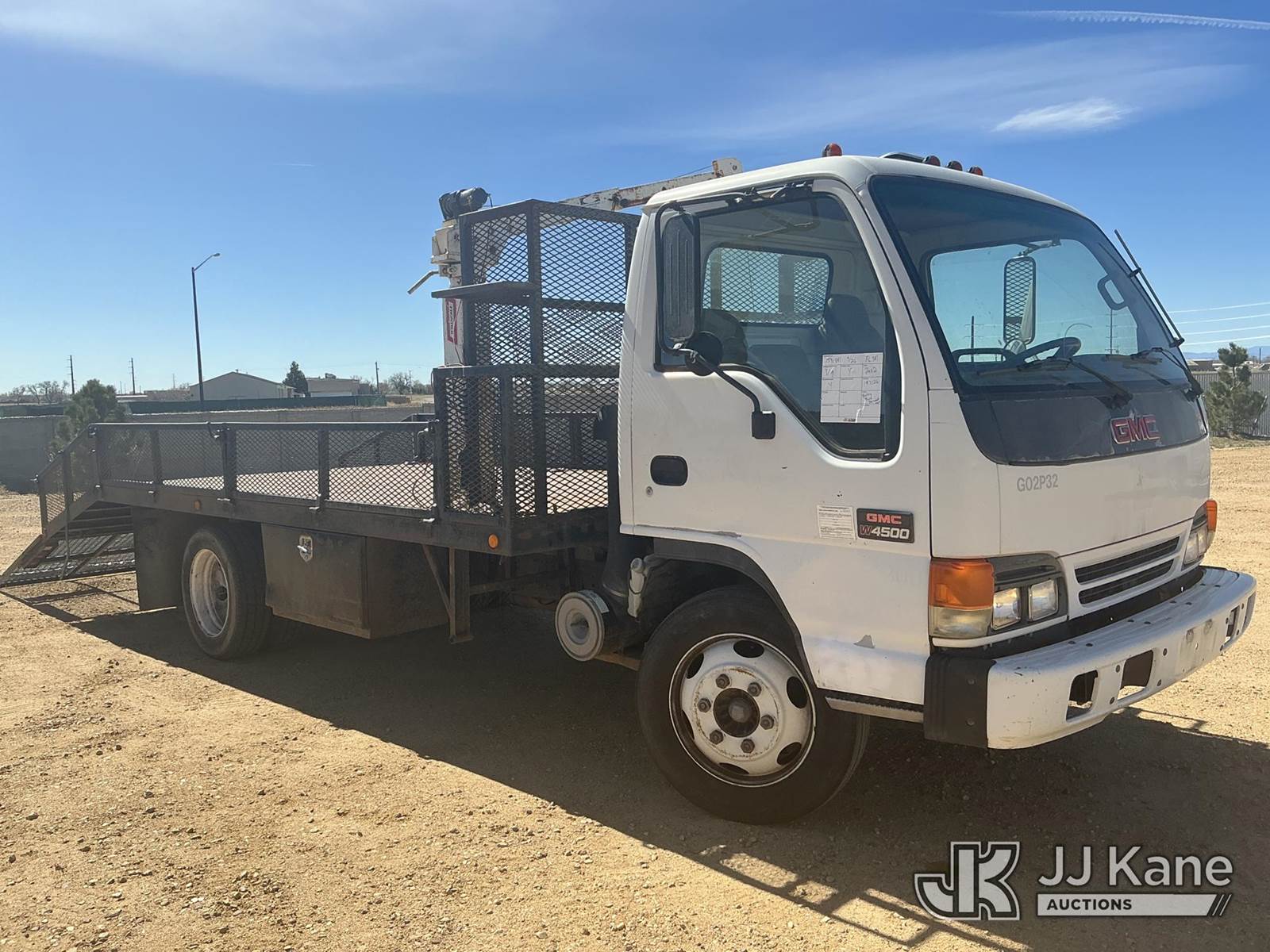 2002 GMC W45042 Flatbed/Service Truck, 8-cyl gas, 4X2, Auto, A/C, with Battery Powered Winch Attached To Manual Crane Arm, 14 Ft Flat Bed with 4 ft Dove Tail & 5 ft Ramps, (Exempt from Odometer Disclosure - Reads 147,126 miles) (Runs Rough & Barley Moves) (Jump To Start, Check Engine Light: Condition Unknown, Winch Not Operating: Condition Unknown) (Non Drive Away Removal Only: Curbside Rear Turn/Brake Lights Out ) This is a Titled Item NOTE: This unit is being sold AS IS/WHERE IS via Timed Auction and is located in Fort Lupton, CO. Inspection & preview days for this unit are the 2 business days prior to the first day of items closing for this auction, item is located at 2105 Northland Dr Fort Lupton, CO 80621 and hours of operations are 8a-4p. For pre-sale questions, please contact Dakota Hoffman @ (720) 621-0786. Dealer License Number 47109. (Buyer is responsible for removal. Assistance by consignor or JJ Kane Auctions is not assured.)