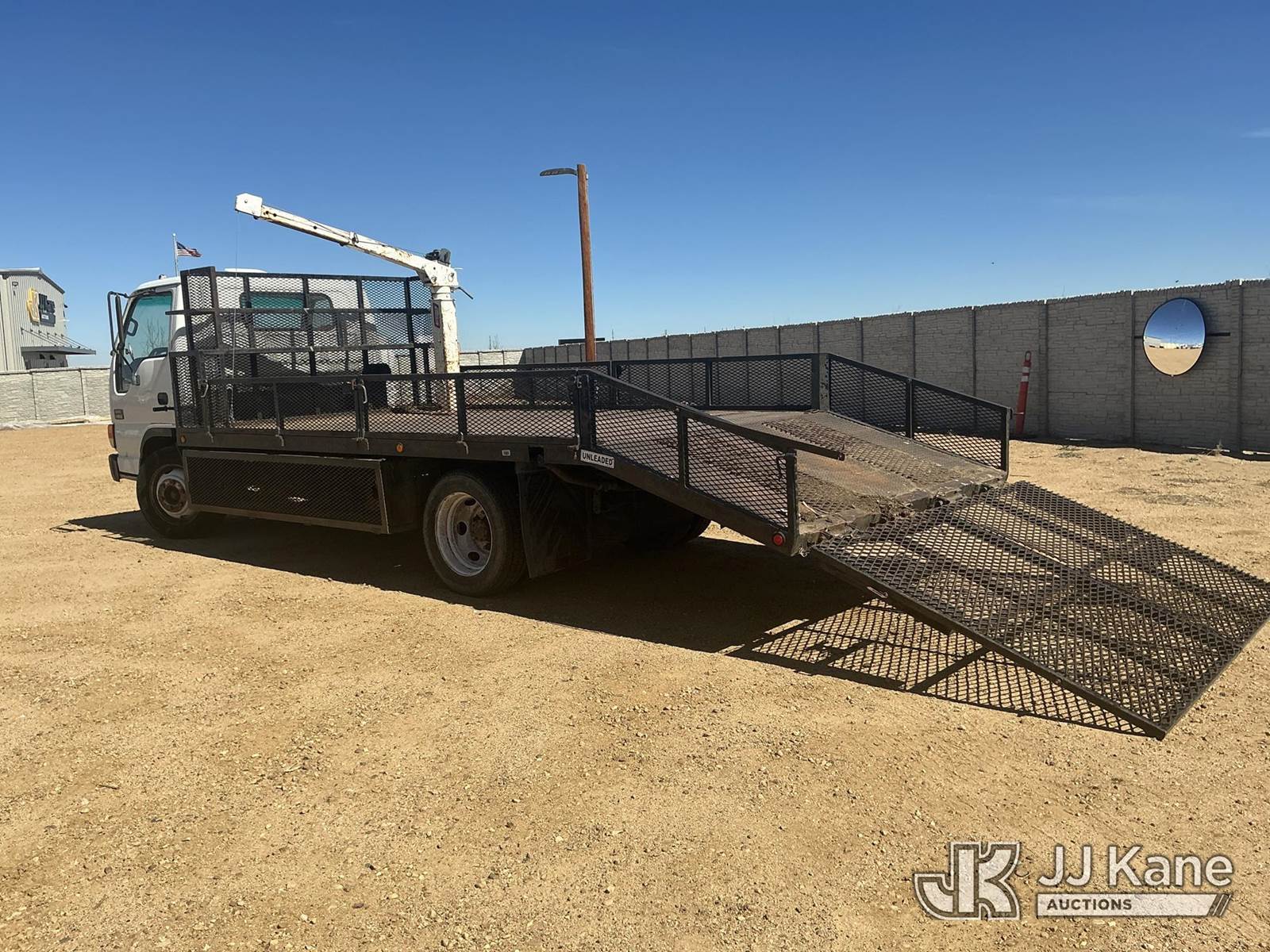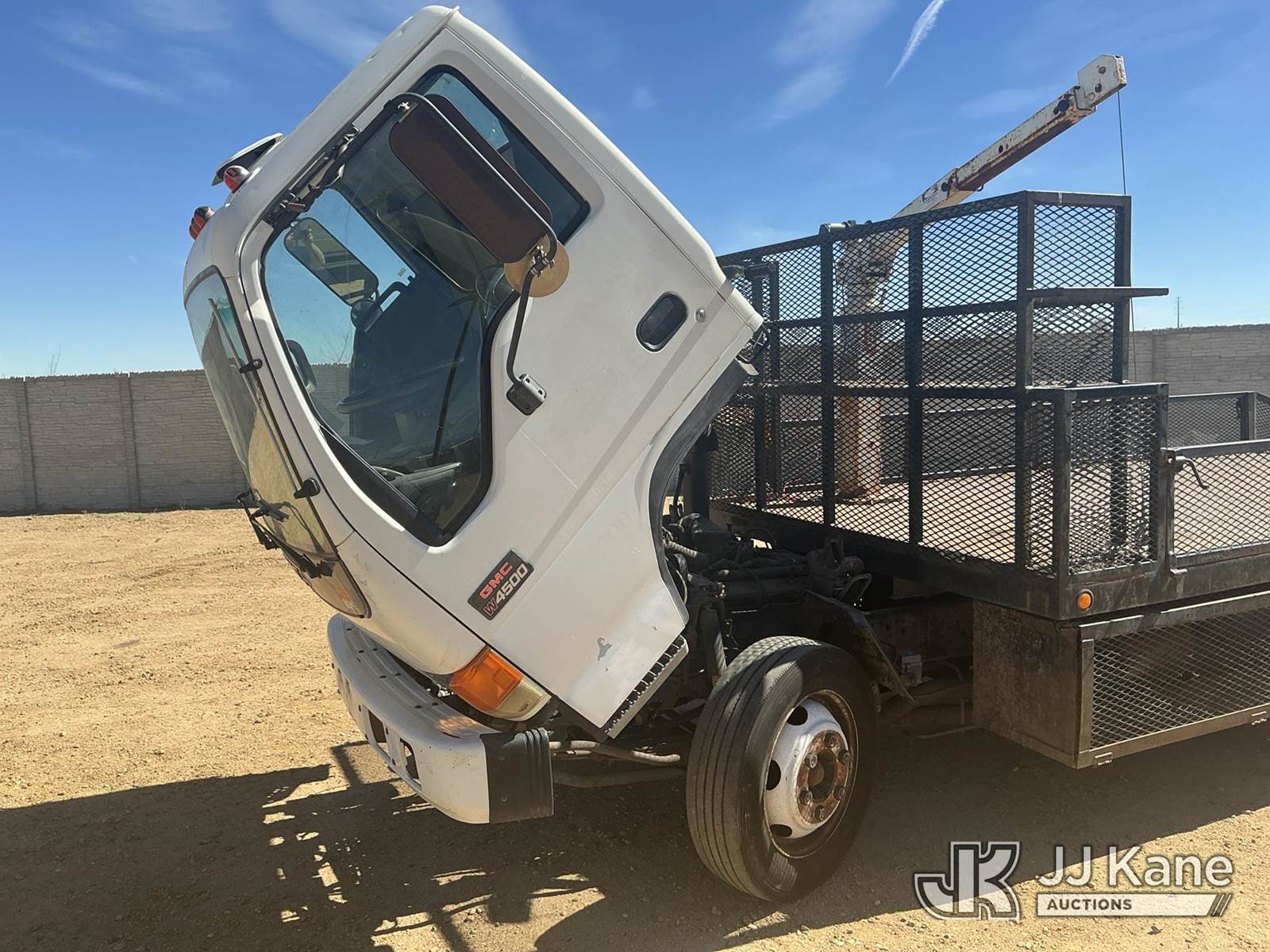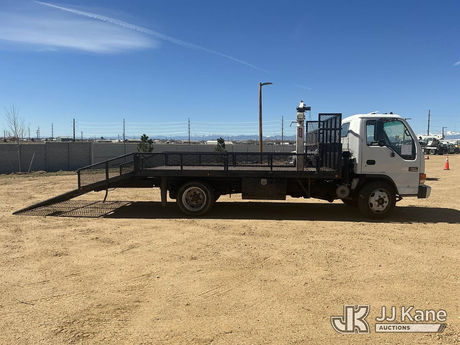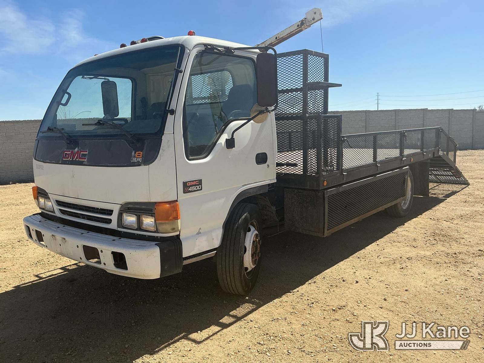 2002 GMC W45042 Flatbed/Service Truck, 8-cyl gas, 4X2, Auto, A/C, with Battery Powered Winch Attached To Manual Crane Arm, 14 Ft Flat Bed with 4 ft Dove Tail & 5 ft Ramps, (Exempt from Odometer Disclosure - Reads 147,126 miles) (Runs Rough & Barley Moves) (Jump To Start, Check Engine Light: Condition Unknown, Winch Not Operating: Condition Unknown) (Non Drive Away Removal Only: Curbside Rear Turn/Brake Lights Out ) This is a Titled Item NOTE: This unit is being sold AS IS/WHERE IS via Timed Auction and is located in Fort Lupton, CO. Inspection & preview days for this unit are the 2 business days prior to the first day of items closing for this auction, item is located at 2105 Northland Dr Fort Lupton, CO 80621 and hours of operations are 8a-4p. For pre-sale questions, please contact Dakota Hoffman @ (720) 621-0786. Dealer License Number 47109. (Buyer is responsible for removal. Assistance by consignor or JJ Kane Auctions is not assured.)