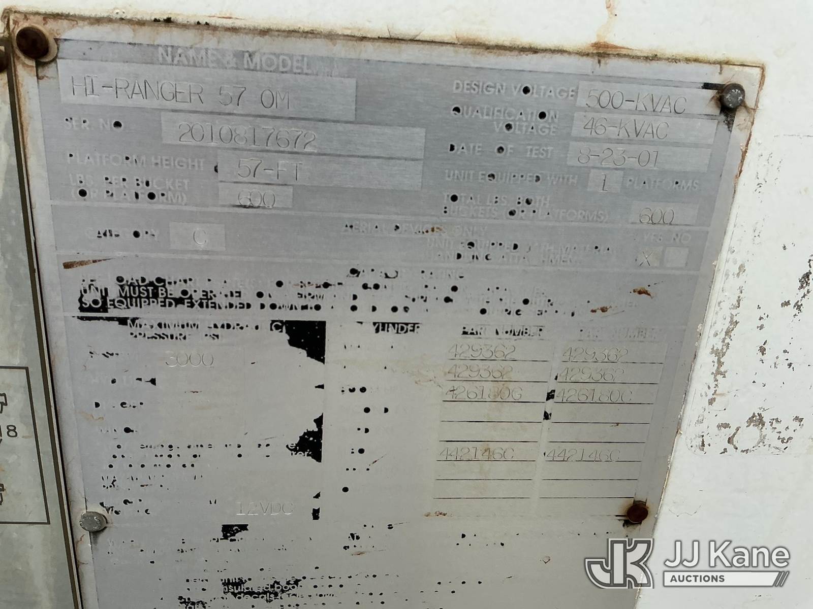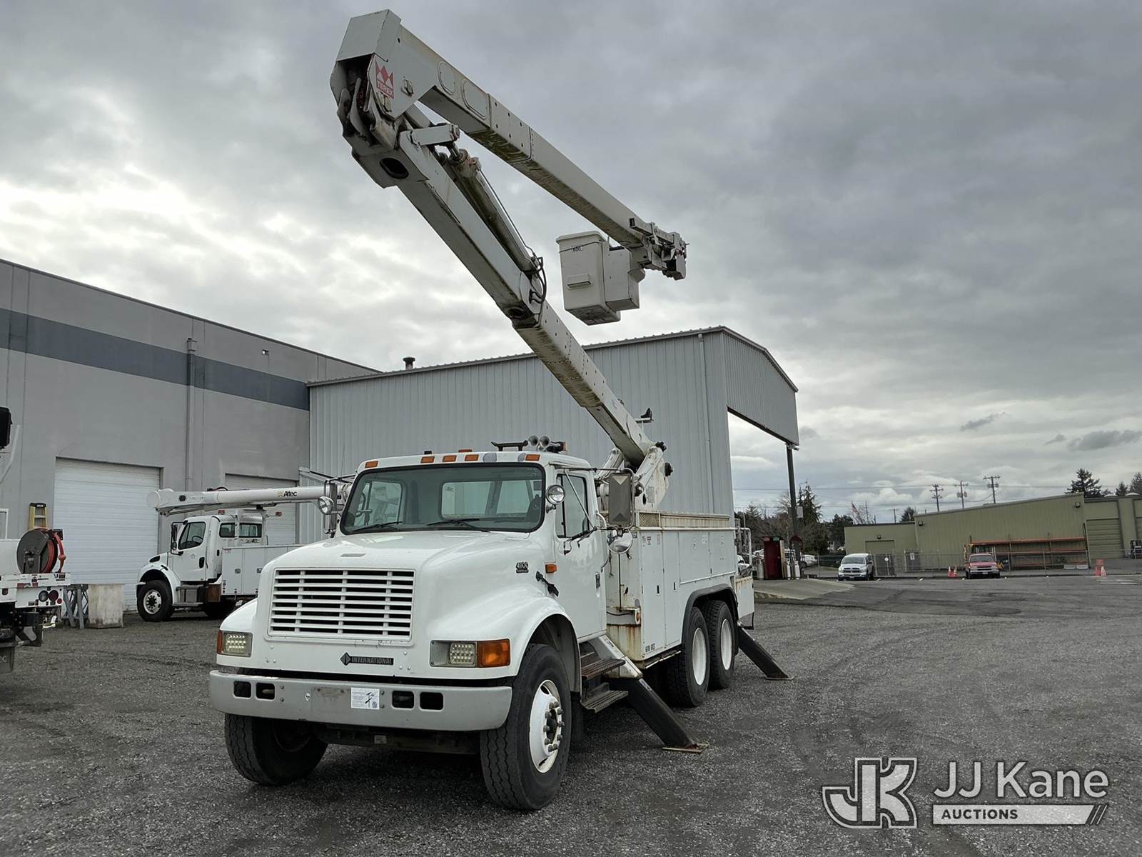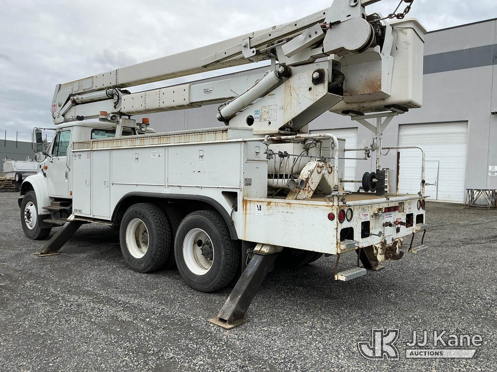 HiRanger 57-OM, 62 ft, Material Handling Bucket Truck s/n 2010817672, with Two-Man Bucket, 4 Hydraulic Outriggers, rear mounted on 2002 International 4900 Utility Truck, 8.7L L6 DIESEL 6X4, Auto, A/C, (Exempt from Odometer Disclosure - Reads 64,418 miles) (Runs, Moves & Upper Operates) (Reads 5,551 hours) This is a Titled Item NOTE: This unit is being sold AS IS/WHERE IS via Timed Auction and is located in Portland, OR. Inspection & preview days for this unit are the 2 business days prior to the first day of items closing for this auction, item is located at 13817 NE Sandy Blvd Portland, OR 97230 and hours of operations are 8a-4p. For pre-sale questions, please contact Tony Tully @ (503)-307-1348. Dealer License Number DL1391. (Missing manuals, See Auction Company for Manufacturers Information to obtain manuals) (Buyer is responsible for removal. Assistance by consignor or JJ Kane Auctions is not assured.)