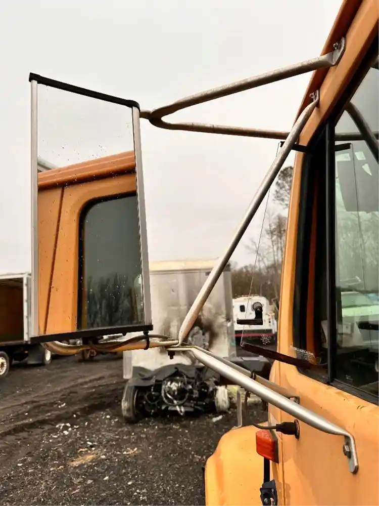 (Used) 2002 International 4900, SIDE VIEW MIRROR- Side: Driver Left Side, Color: Silver, Type: Manual, Heat Mirror, Mounts: Door, Reference images for condition, For more information about this item, give us a call. We ship Worldwide! (CRG HEAVY TRUCK PARTS) 929 W PULASKI HWY, ELKTON, MD 21921
