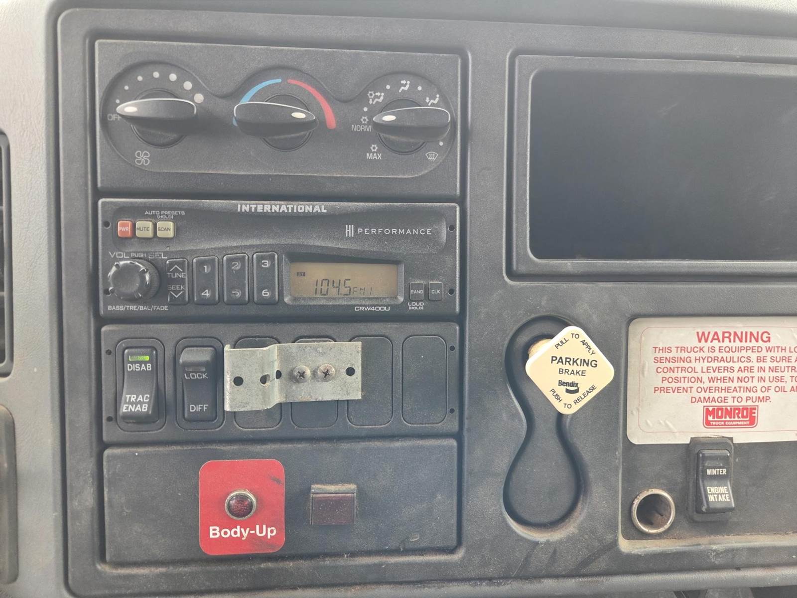 International DT466 Turbo Diesel Engine, Allison Automatic Transmission, 33350LB GVWR, 12350LB Front Axle GAWR, Diff Lock, PTO, Approx. 10' Box, Spring Ride Suspension, Single Frame, Swenson Salter/Sander, Approx. 12' Snowplow, Approx. 6' Wing, Heat/AC, Radio, Cruise Control, 11R22.5 Tires