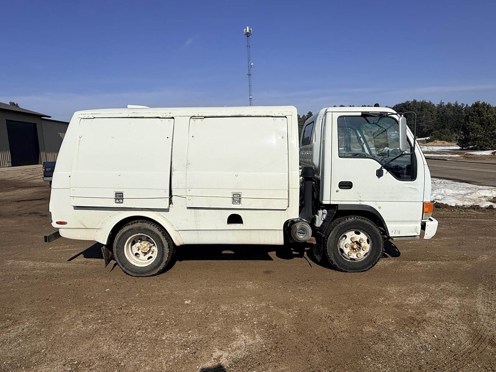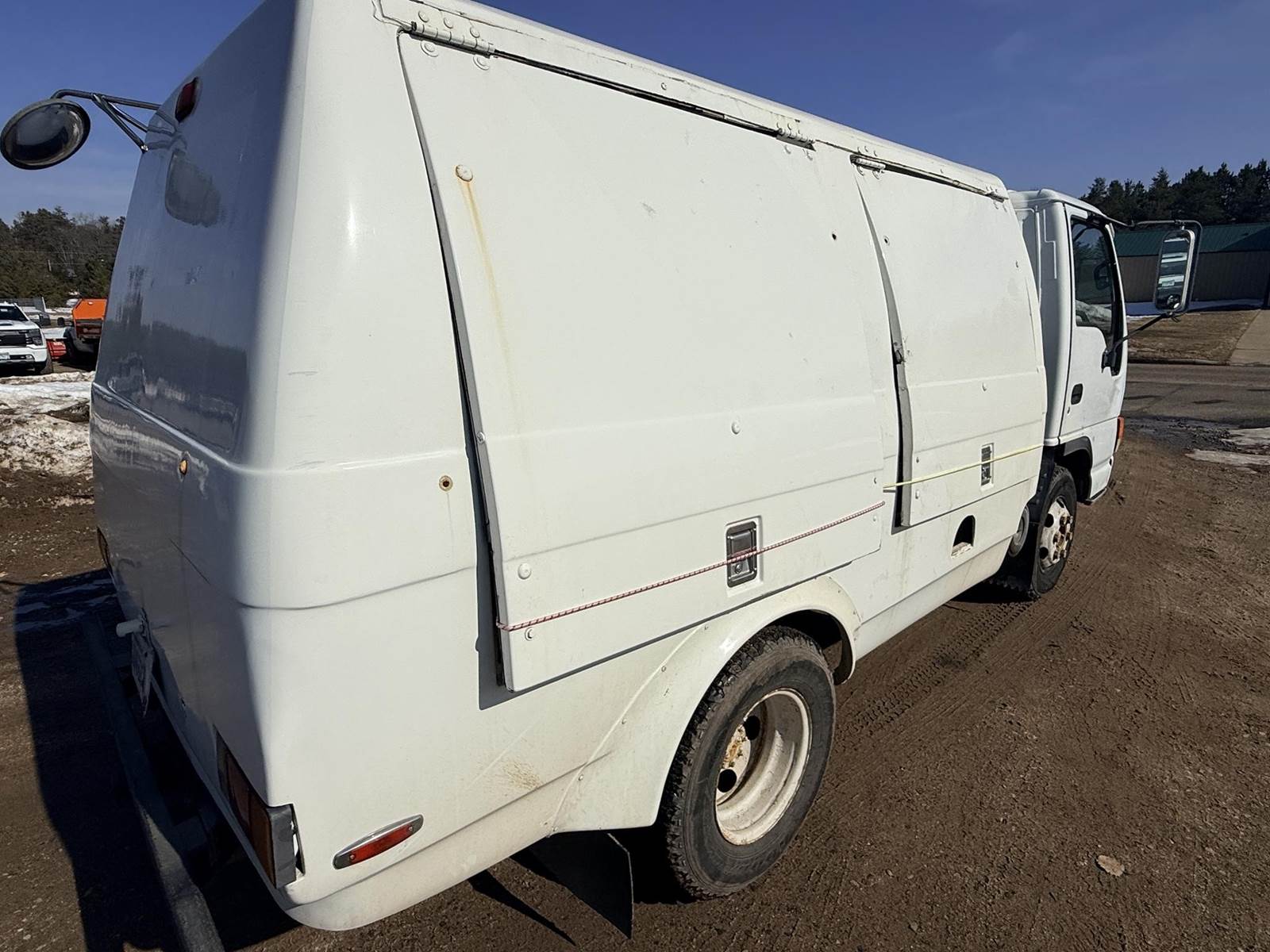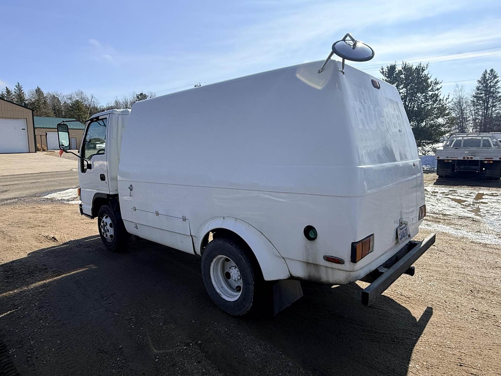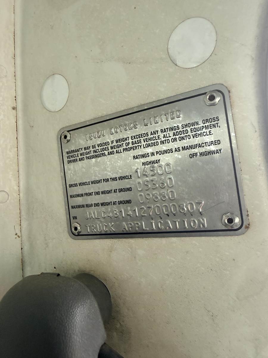 Isuzu Turbo Diesel Engine, Automatic Transmission, Spring Ride, 14500 LB GVWR, Fiber Glass Box, Sprayer Tank, Honda Gas Engine With Fertilizer Pump, Approx 300' Hose Reel, Heat and A/C, Radio, (3) Person Cab, 215/85R16 Tires