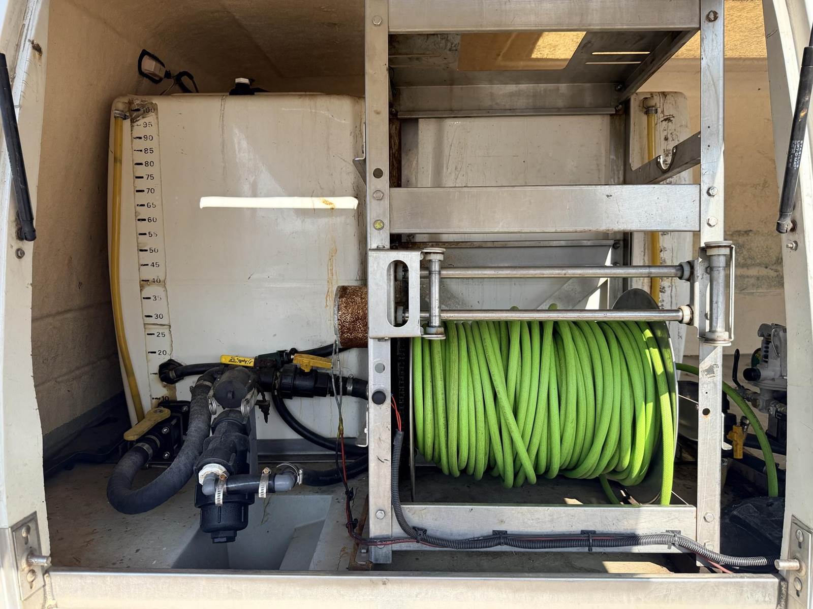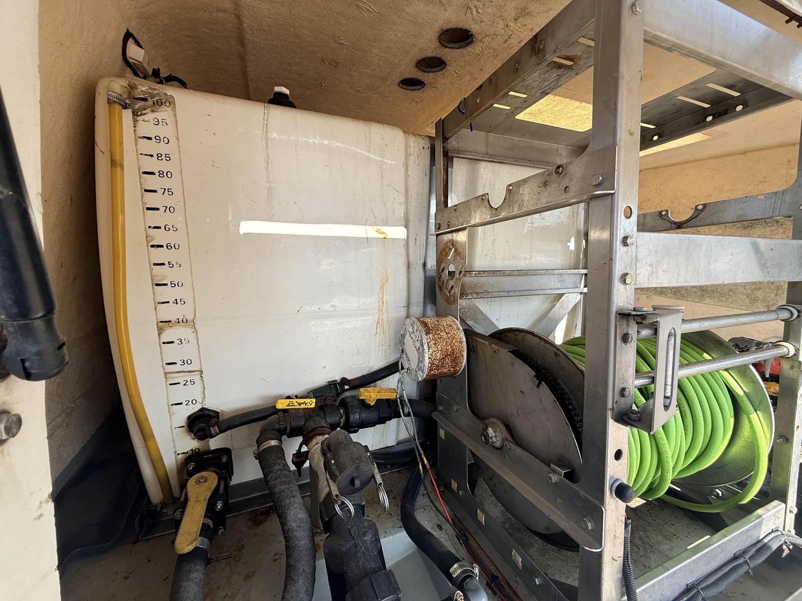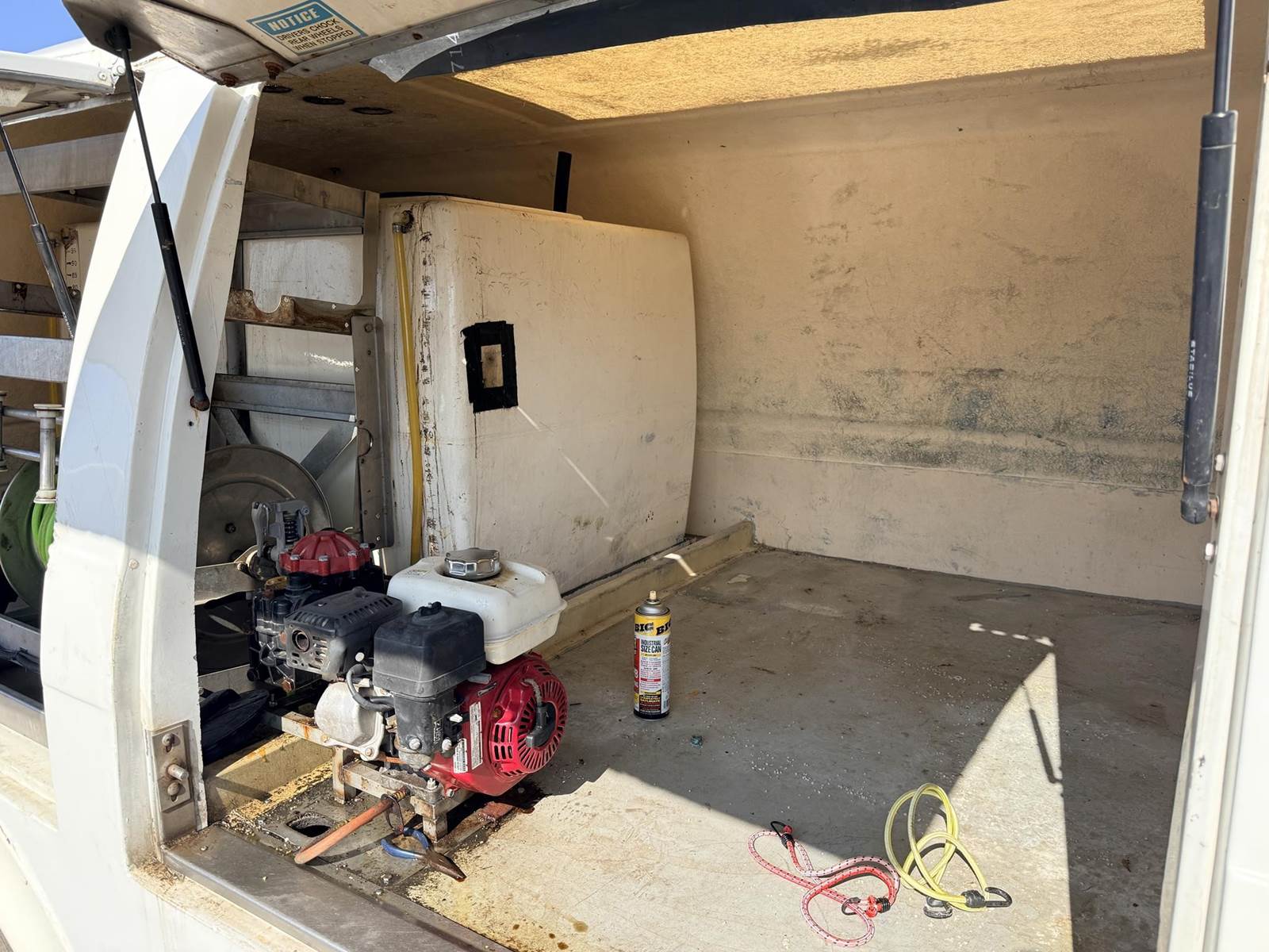 Isuzu Turbo Diesel Engine, Automatic Transmission, Spring Ride, 14500 LB GVWR, Fiber Glass Box, Sprayer Tank, Honda Gas Engine With Fertilizer Pump, Approx 300' Hose Reel, Heat and A/C, Radio, (3) Person Cab, 215/85R16 Tires