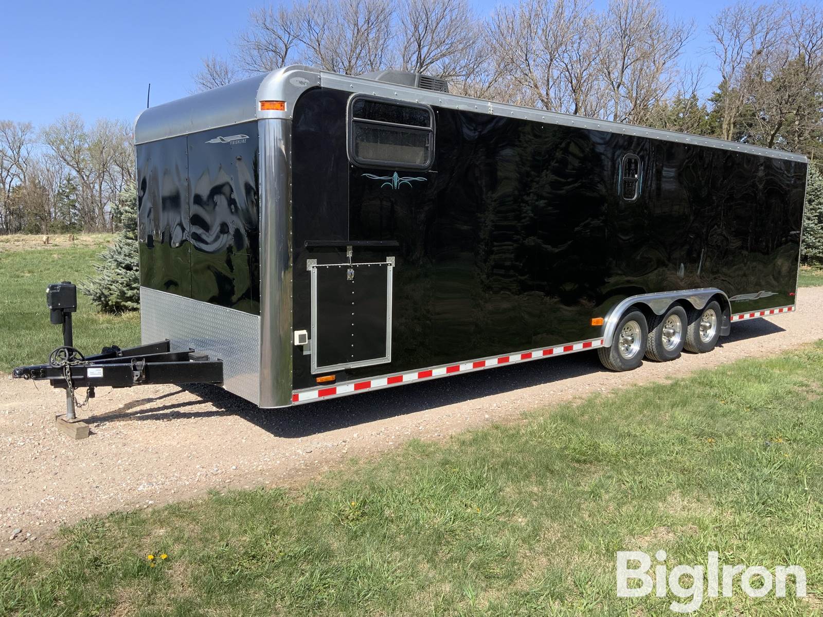 2002 Pace American Finishline 28’ Tri/A Enclosed Trailer w/Living Quarters, 32’ overall length, GVWR 15,000lbs, 5,000lbs. Torsion Axles, Cummins Onan P4300ie Quiet Run Generator (See Video), 30A Cord, 225/75R15 Tires, 2 5/16” Ball Hitch, Safety Chains, Electric Tongue Jack, 7-Pin Trailer Plug, Break Away System, Electric Trailer Brakes, 17’ Awning(See Video), 4’x75” Walk-in Side Door w/Awning, Cargo Area Equipped with 2,500lbs. Ramsey 12V Winch, 72” Work Bench, 48” Florescent Workbench Light, Performax 6-Drawer Toolbox, 2) Aluminum Wall Storage Racks, Tire Stops, 6 Floor Anchors, 72”x40” Futon, Laminate Flooring Throughout, 68” Beaver Tail, Ramp Door, 88” Wide x 73” Tall Rear Door Opening, 19’ Overall Length of Cargo Area, 8’ Overall Width Cargo Area, 88” in Between Fenders, 76” Overall Interior Height, 17’ 8” Long Cargo Area from Front of Bench to Rear Door, 98”x8’ Living Quarters Area Equipped with Pioneer CD/Radio & Speakers, Futon Couch/Bed, Front Cabinet Storage, Performax 6-Drawer Toolbox, Microwave, Coffee Maker, Electric Awning, 110V Outlets Throughout, AC/Heat Roof Unit. NOTE: Awning Needs a Switch., VIN: 4P2WB28372U032375