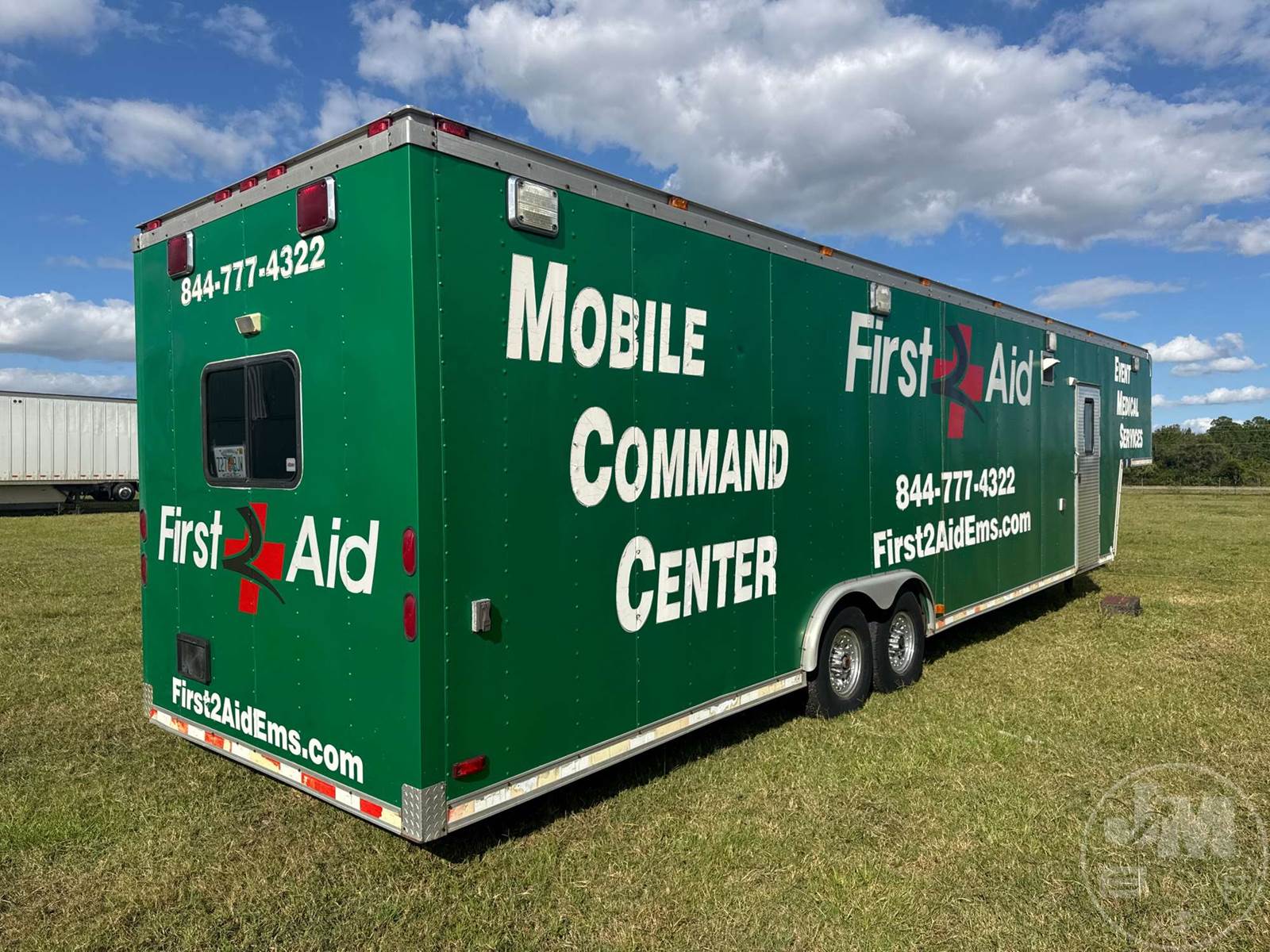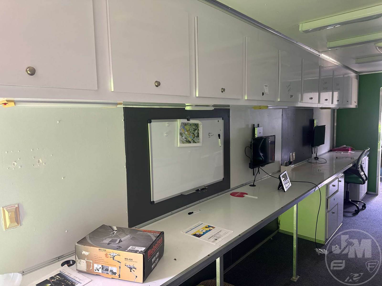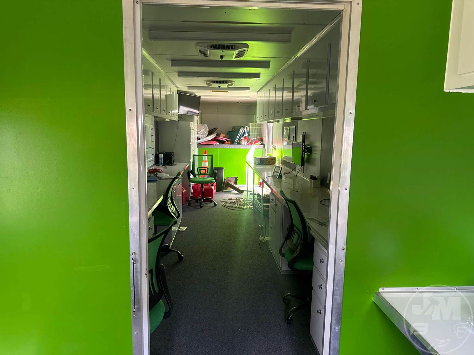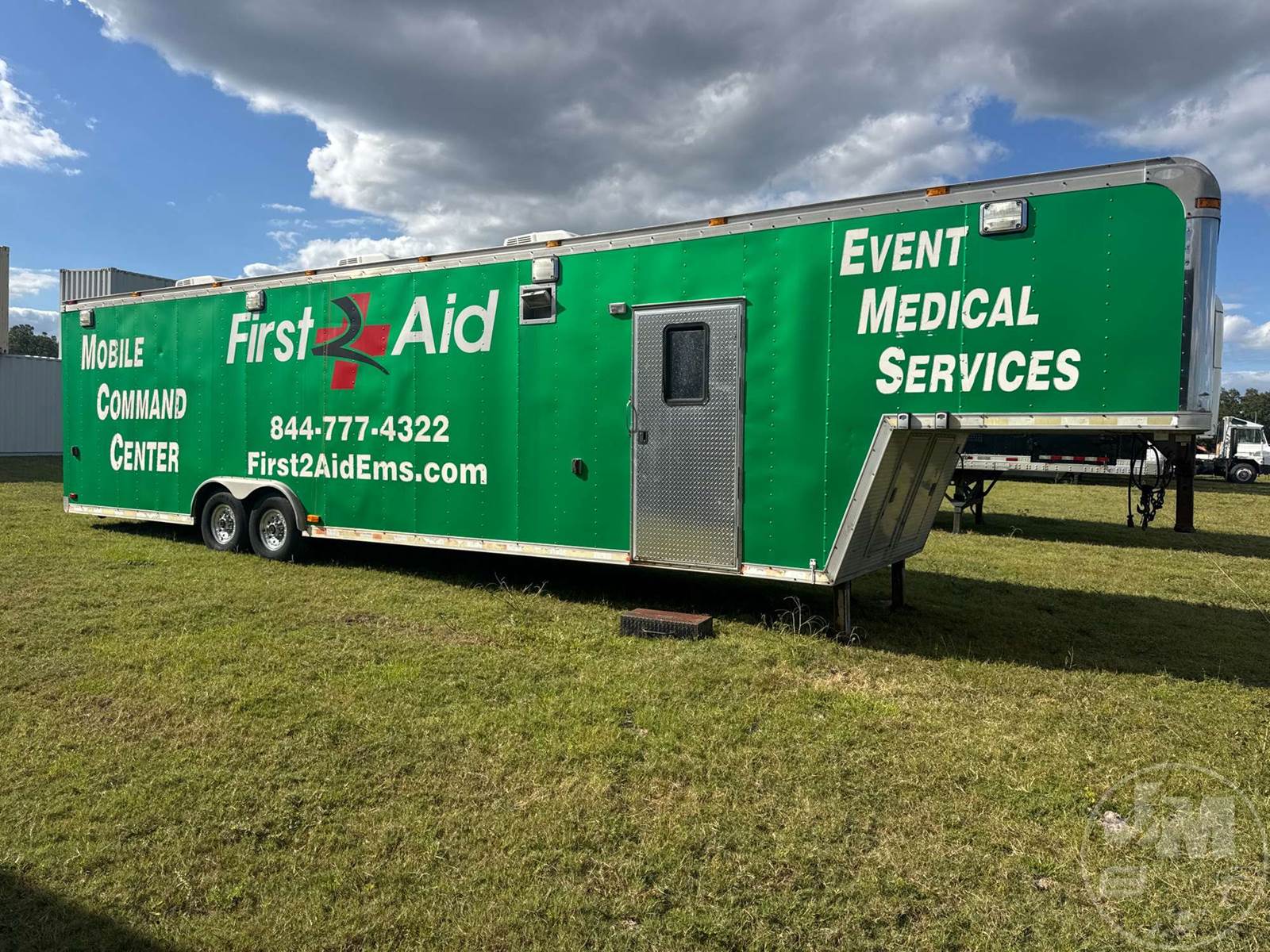 40' ENCLOSED TRAILER, 8' WIDE, 2 AXLE, SPRING SUSPENSION, WOOD DECKING, GOOSENECK HITCH, OFFICE SET UP, 3 A/C UNITS, 5 TVS, SIDE DOORS, TIRES 235/85R16
