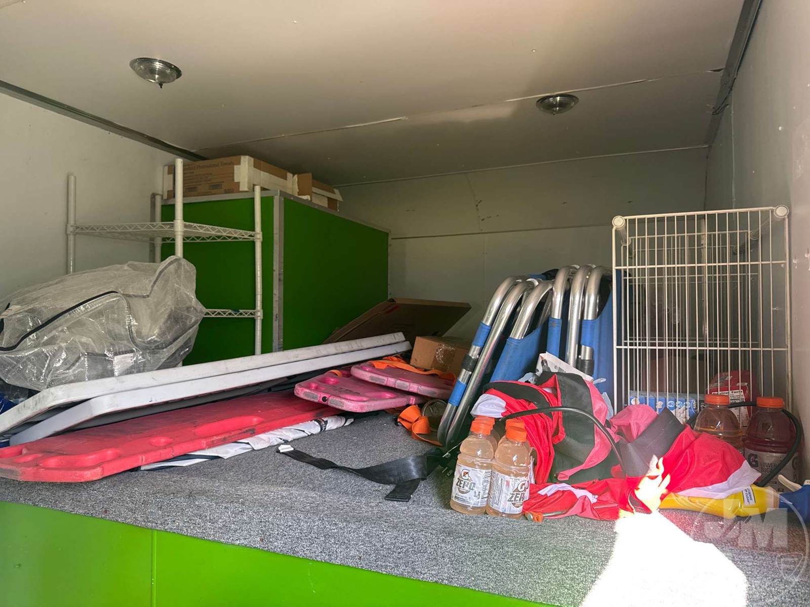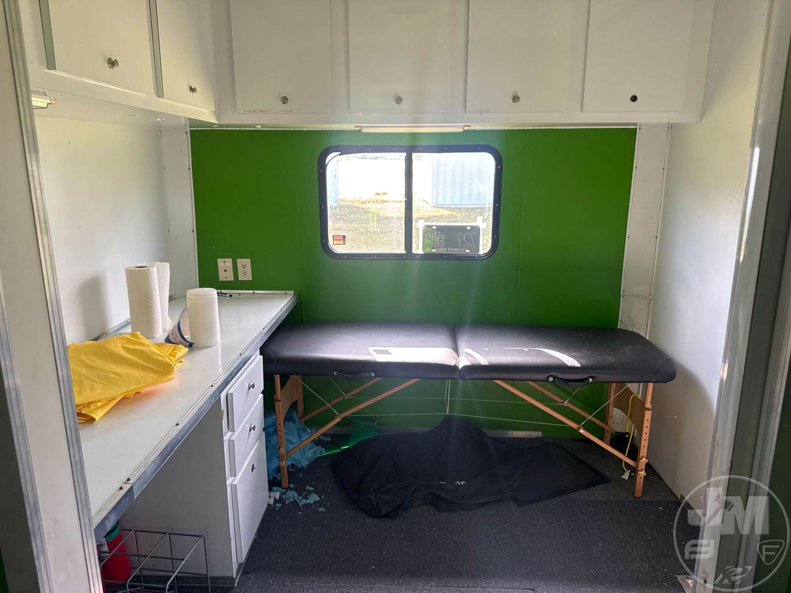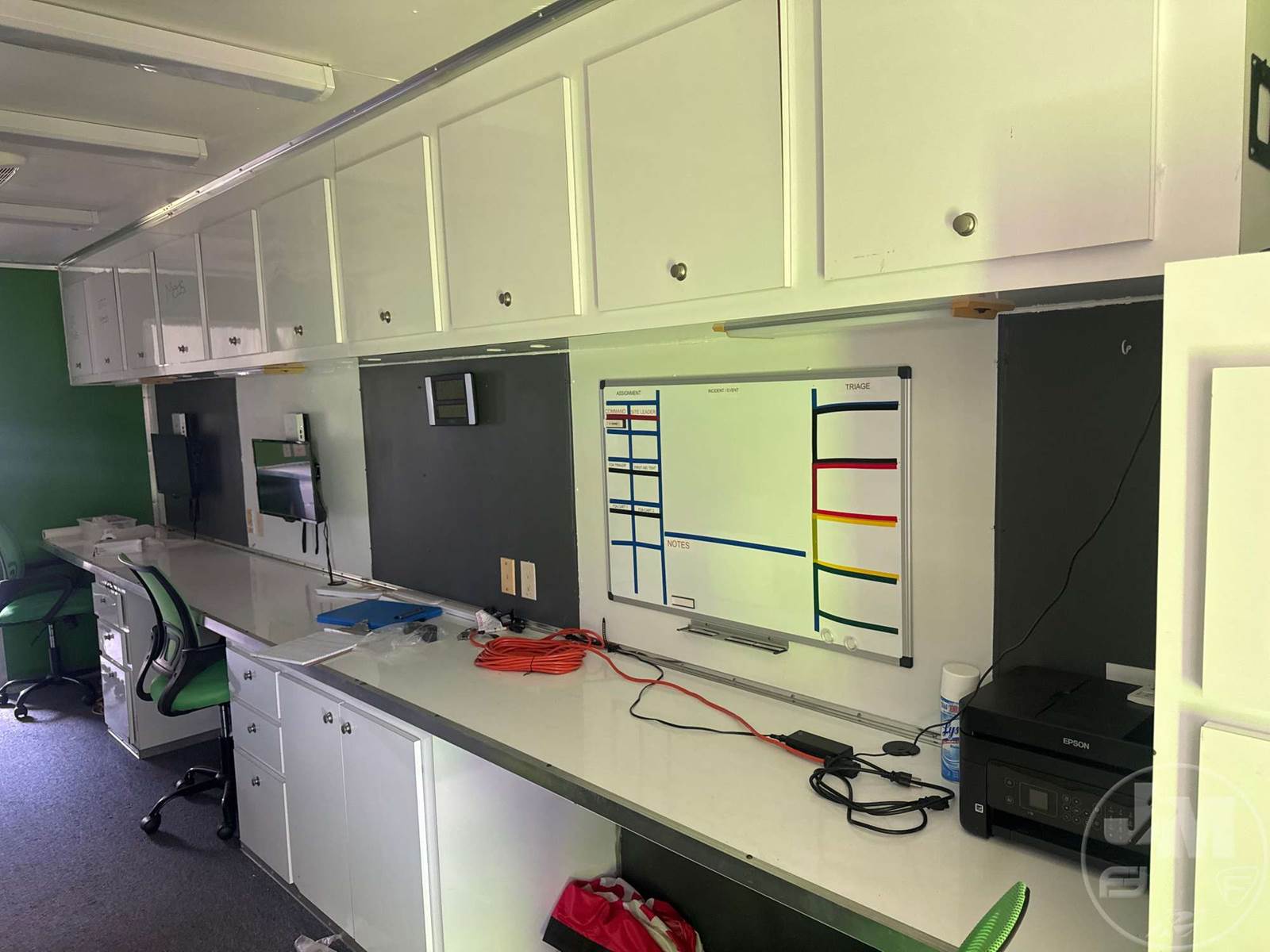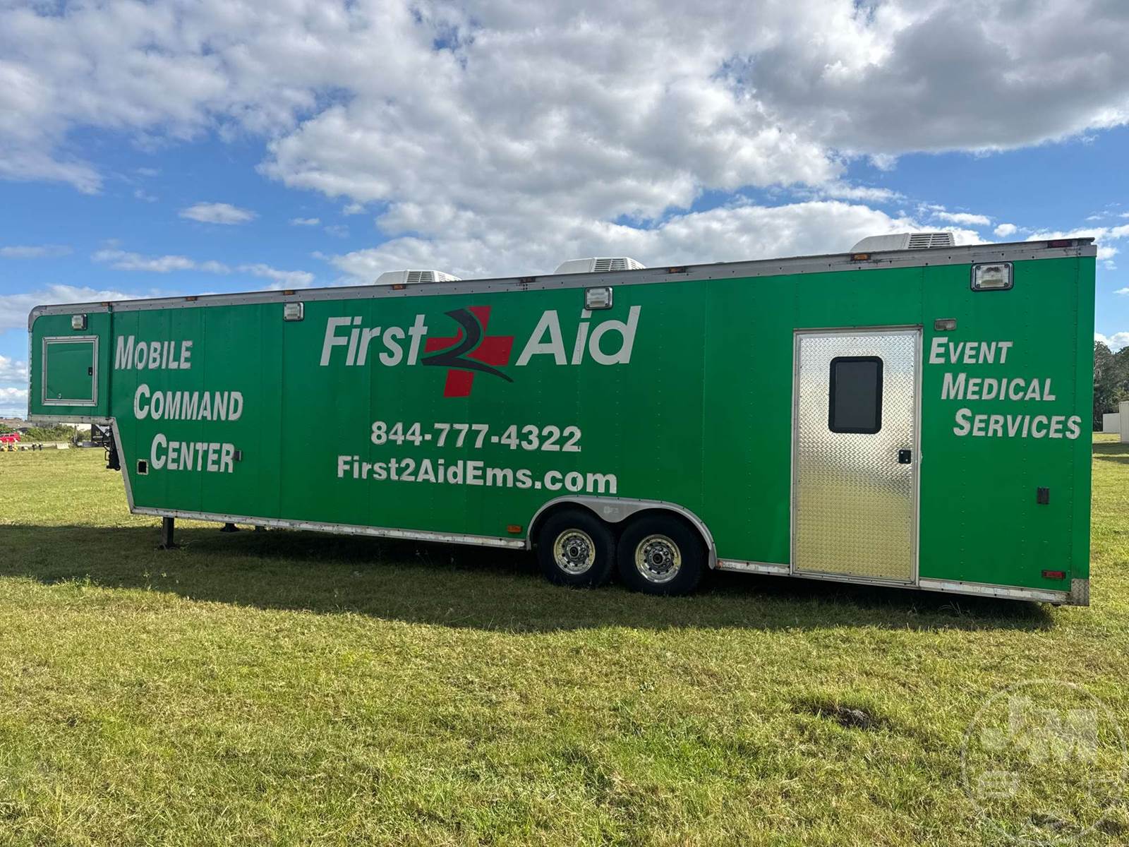 40' ENCLOSED TRAILER, 8' WIDE, 2 AXLE, SPRING SUSPENSION, WOOD DECKING, GOOSENECK HITCH, OFFICE SET UP, 3 A/C UNITS, 5 TVS, SIDE DOORS, TIRES 235/85R16