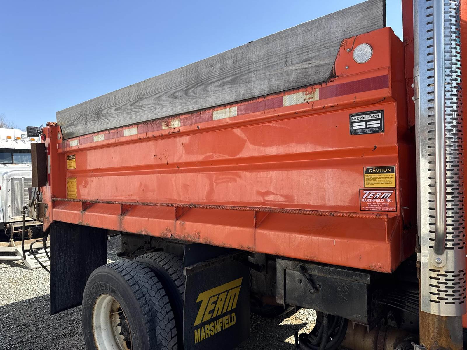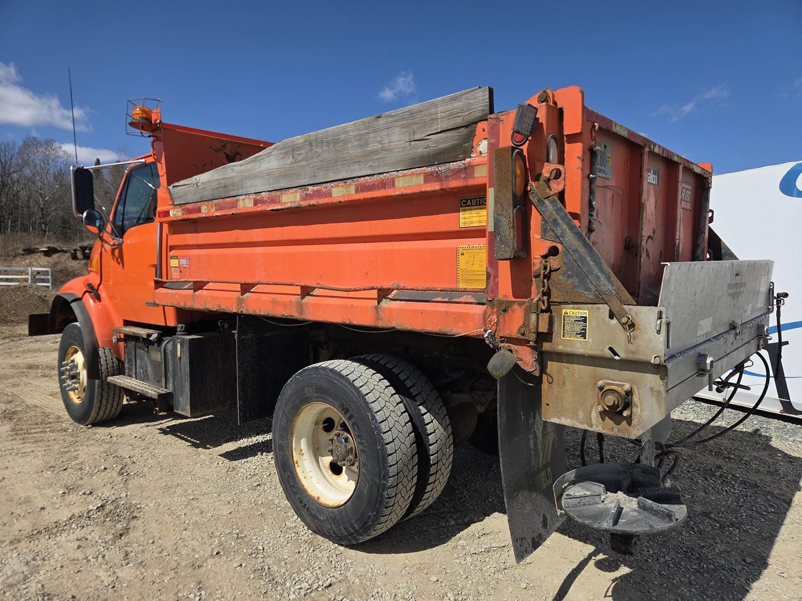 Caterpillar 3126 Turbo Diesel Engine, Allison Automatic Transmission, GVWR: 41000LB, 18000LB Front Axle, Spring Ride, Live PTO, Approx 11' Dump Box, Air Trip Tailgate, Rear Auger/Spreader, Front Plow Mount W/ Hydraulic Hookups, Air Ride Drivers Seat, Power Windows, Heat, A/C, Radio, 315/80R22.5 Front Tires, 11R22.5 Rear Tires