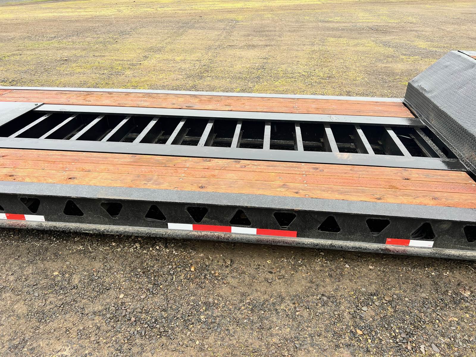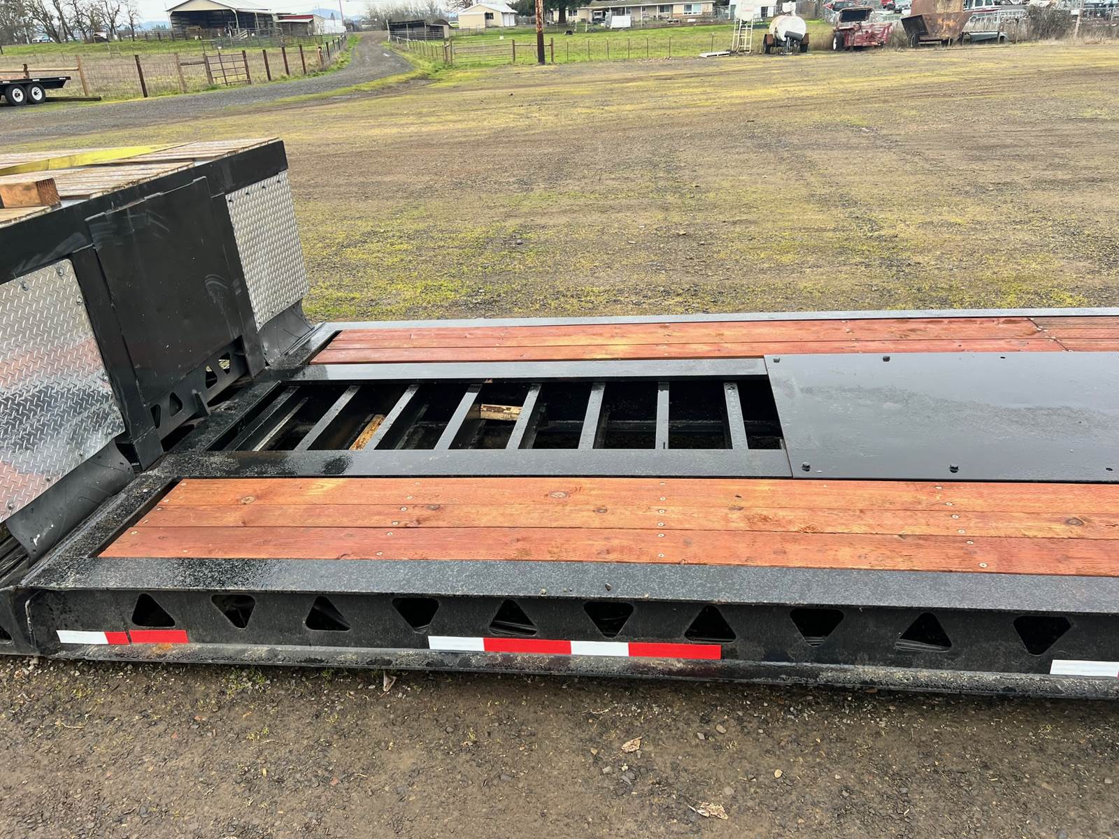 2000 Trail King TK 80MG Series, 48' (2 axle) with flip axle (53'). Well cared for low usage. 28' 6" well. Calif. legal. New tires Excellent deck boards. Nice arch in well. Adjustable height rear air suspension.