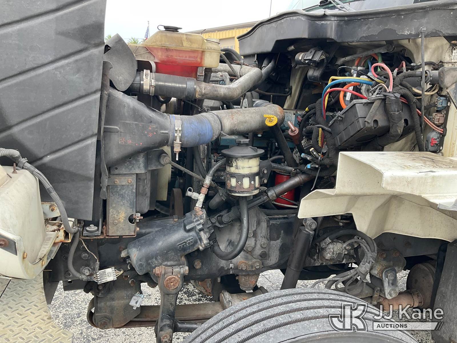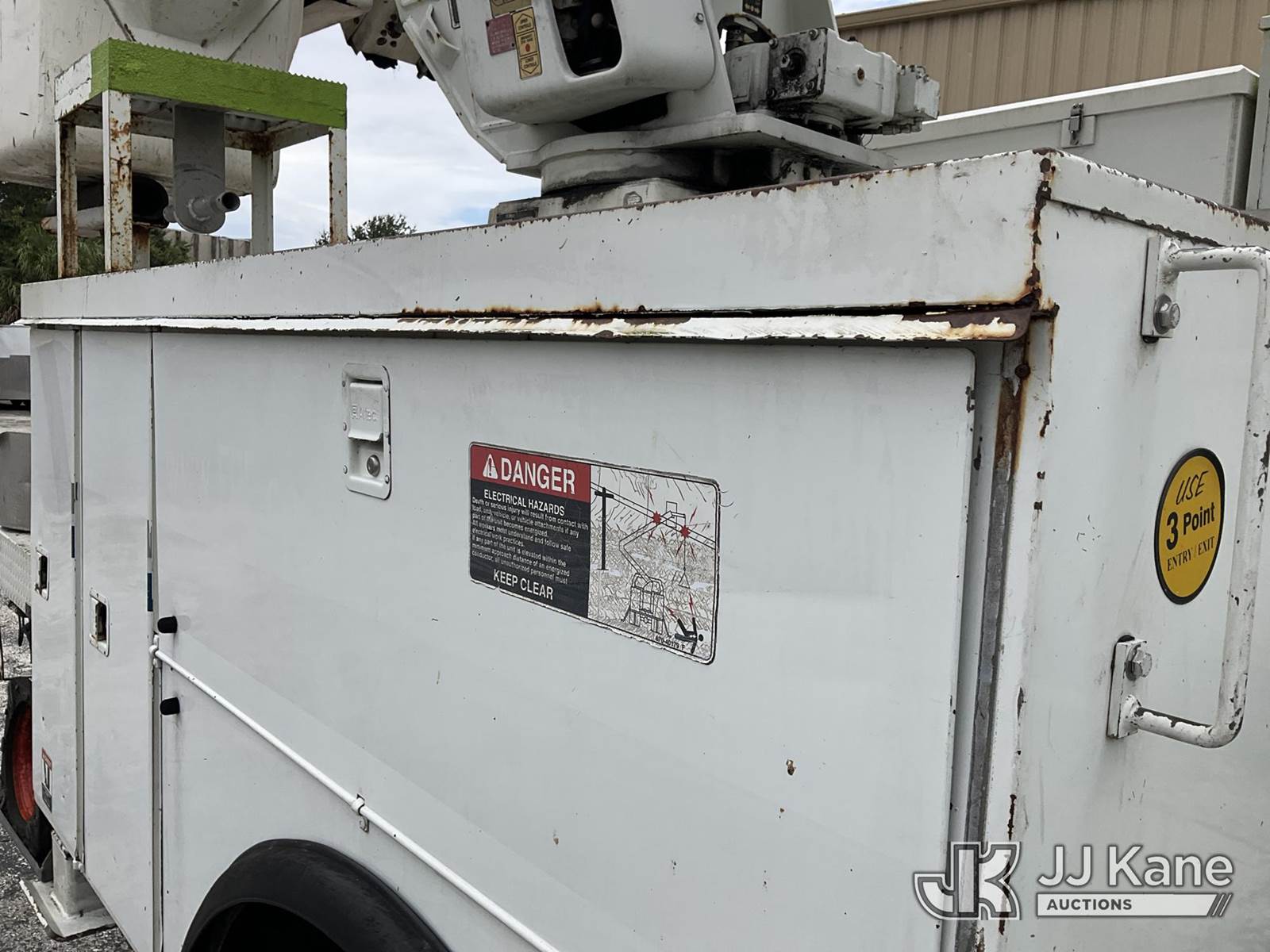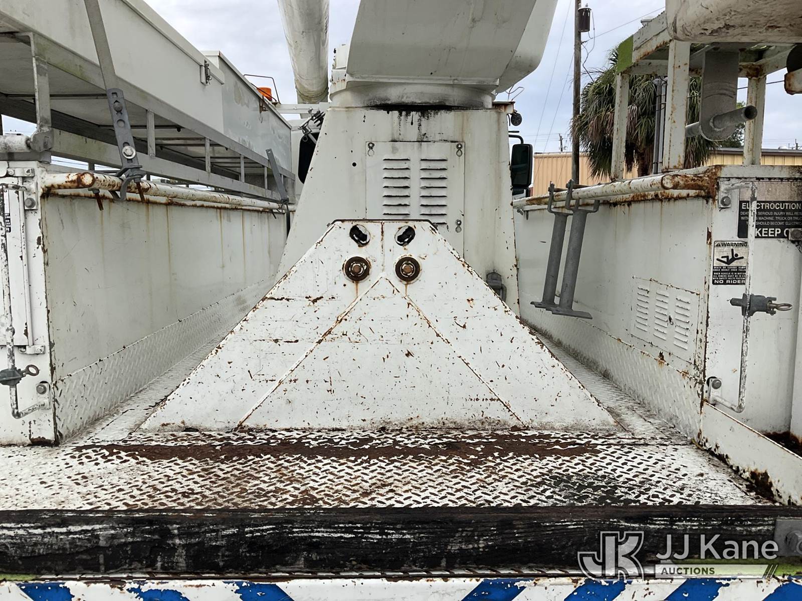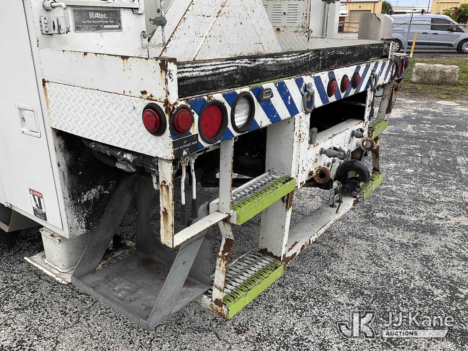 Altec AM855, 60 ft, Over-Center Material Handling Bucket Truck s/n 0103BB3198, with single-man bucket & 4 hyd outriggers, rear mounted on 2003 International 7300 4x4 Utility Truck, DT466 diesel, Auto, A/C, (Exempt from Odometer Disclosure - Reads 190,643 miles) (Runs & Moves, Hard To Start)( PTO Does Not Engage, Upper Operating Condition Unknown)( ABS Light On, Body Damage & Rust, Missing Jib & Cylinder Bracket Hanging Down, Missing Upper Boom Covers) (FL Residents Purchasing Titled Items - tax, title & registration fees will be collected at the maximum rate of $400.00 under 25,999 and $800.00 for Over 26,000 and $250.00 trailers - Proof of insurance is mandatory; Out of State Residents Purchasing Title Items - tax will be collected based upon your state rate.) This is a Titled Item NOTE: This unit is being sold AS IS/WHERE IS via Timed Auction and is located in West Palm Beach, FL. For Pick Up & Removal information, please contact: Andy Garcia @ 561-215-0085. Removals require 24-hr Notice by Appointment Only, Buyer/Hauler must present copy of Paid-in-Full JJ Kane Release Form upon arrival. Purchaser acknowledges ALL lots must be removed within 10 business days of Auction, or a towing & storage fee may be incurred. (Missing manuals, See Auction Company for Manufacturers Information to obtain manuals) (Buyer is responsible for removal. Assistance by consignor or JJ Kane Auctions is not assured.)