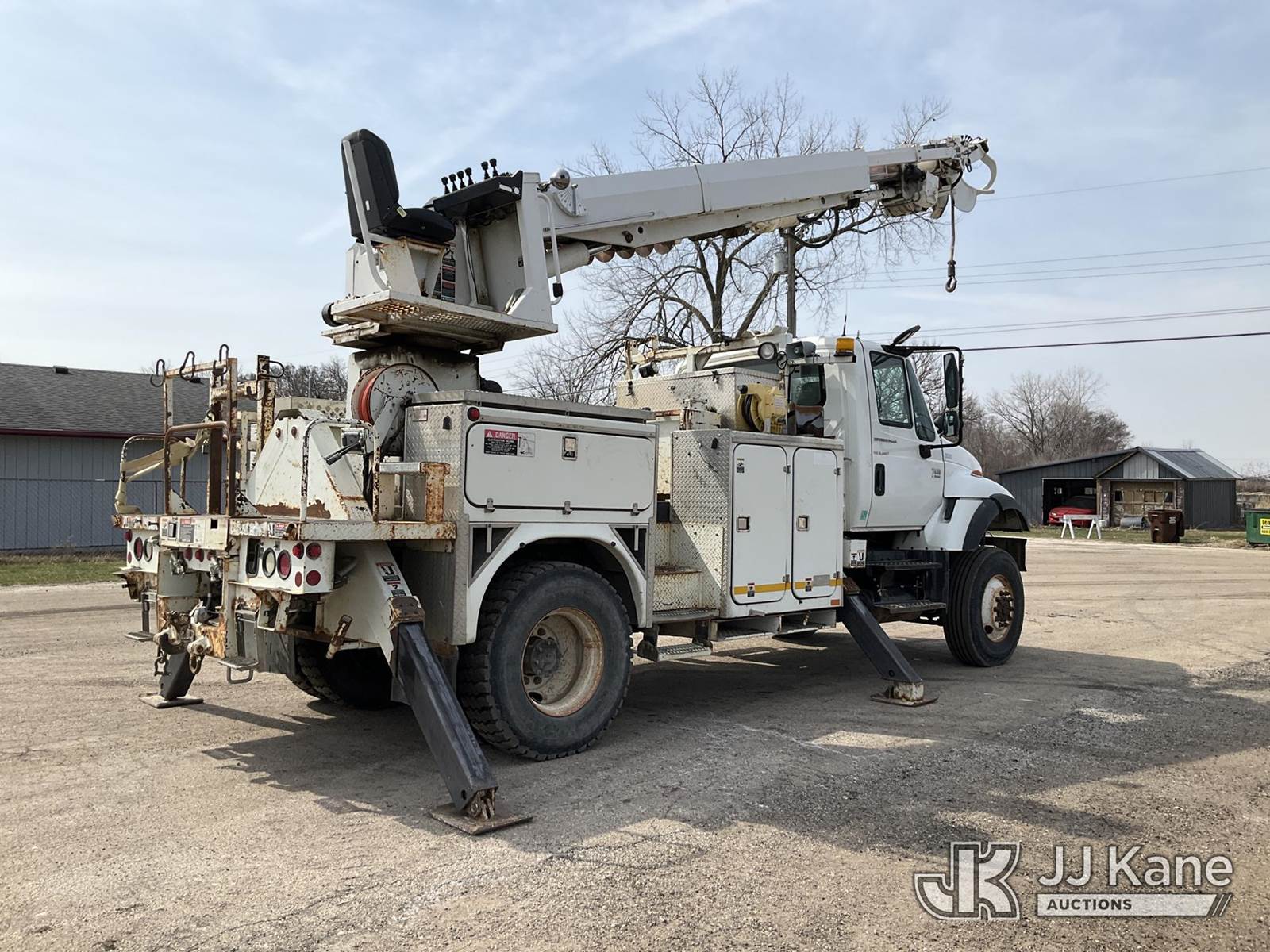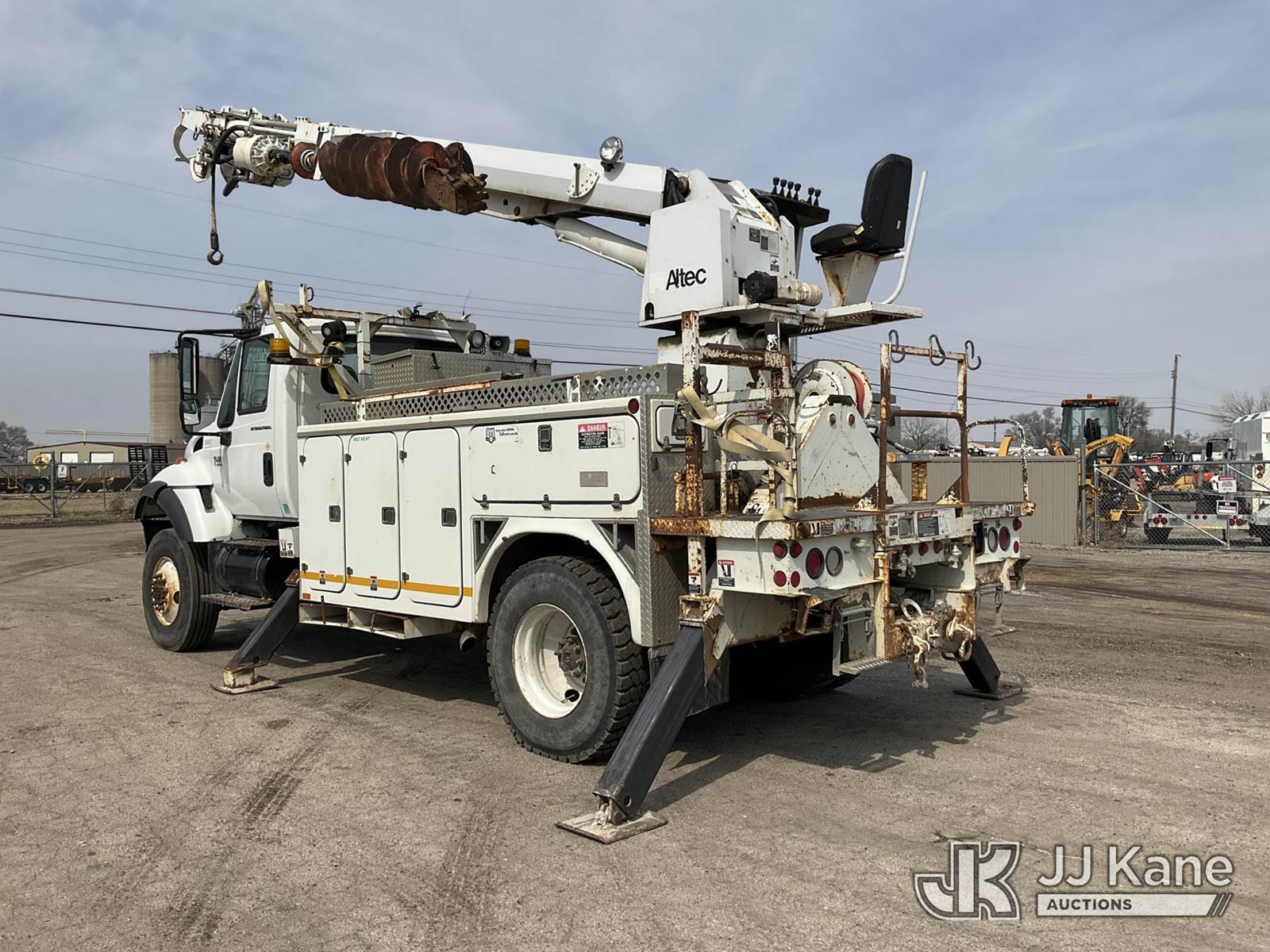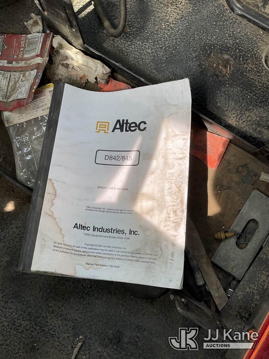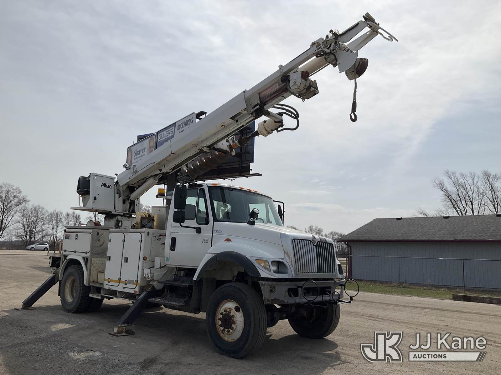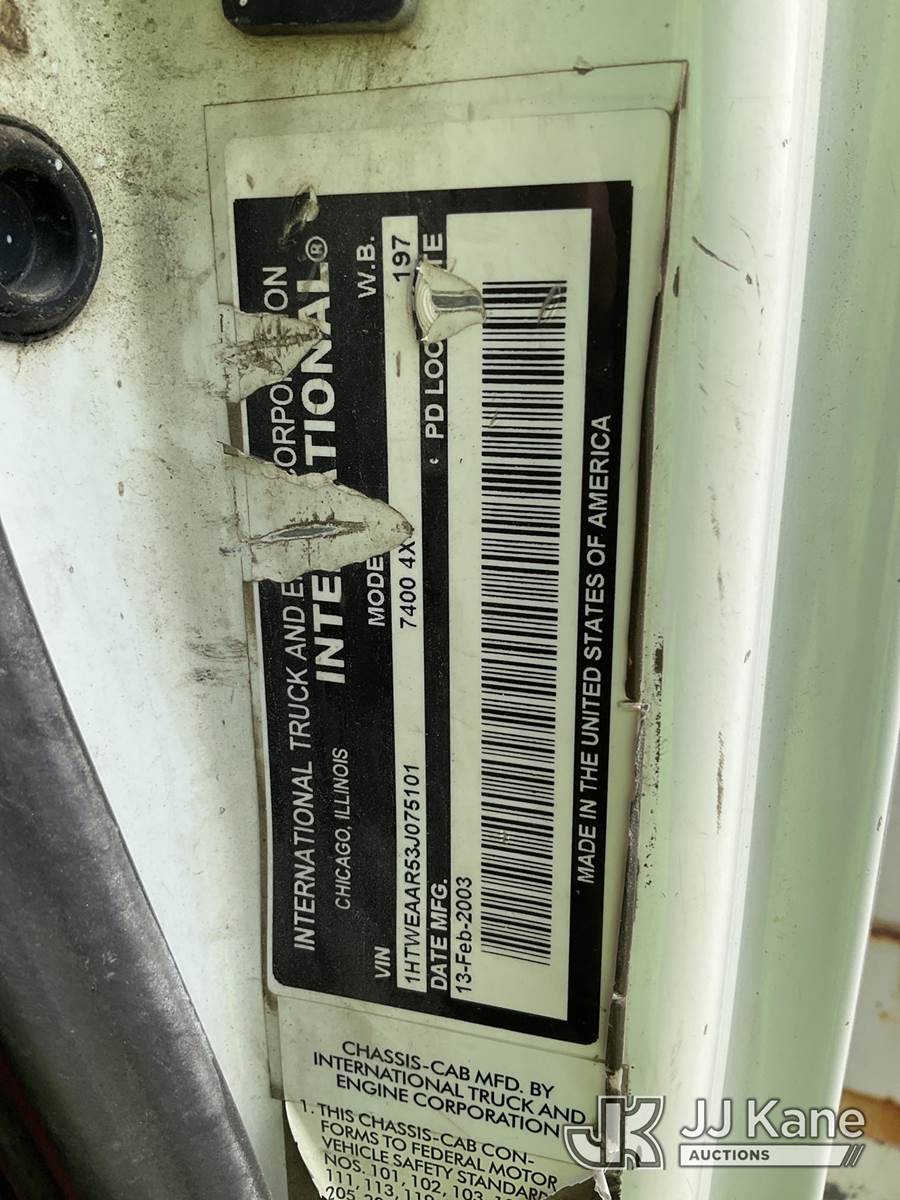 Altec D845-ABR, 20,230 Lb Digger Derrick s/n 0303DE3635, with 45ft. sheave height, 2-spd digger, pole guides, tip winch, upper controls & riding console, rear mounted on 2003 International 7400 Utility Truck, 7.6L diesel, 4X4, Auto, A/C, (Exempt from Odometer Disclosure - Reads 135,512 miles) (Runs, Moves & Upper Operates) (Seller States: Has Engine Oil Drip & Transfer Case Drip) (Reads 11,796 hours) This is a Titled Item NOTE: This unit is being sold AS IS/WHERE IS via Timed Auction and is located in South Beloit, IL. Inspection & preview days for this unit are the 2 business days prior to the first day of items closing for this auction, item is located at 14354 Dearborn Ave South Beloit, IL and hours of operations are 8a-4p. For pre-sale questions, please contact Derek Eklund at (608) 904-0618 or (derek.eklund@jjkane.com). (Manuals provided in cab) (Buyer is responsible for removal. Assistance by consignor or JJ Kane Auctions is not assured.)