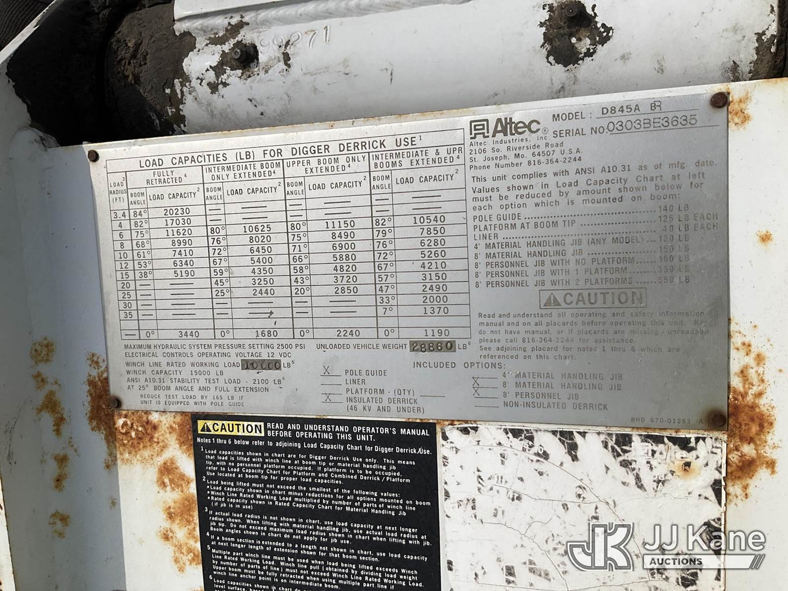2003 Altec D845-ABR, 20,230 Lb Digger Derrick