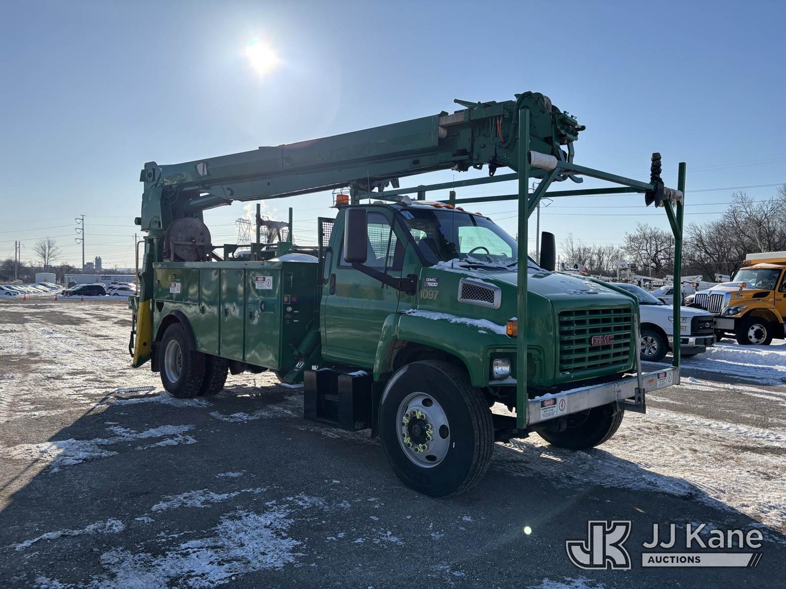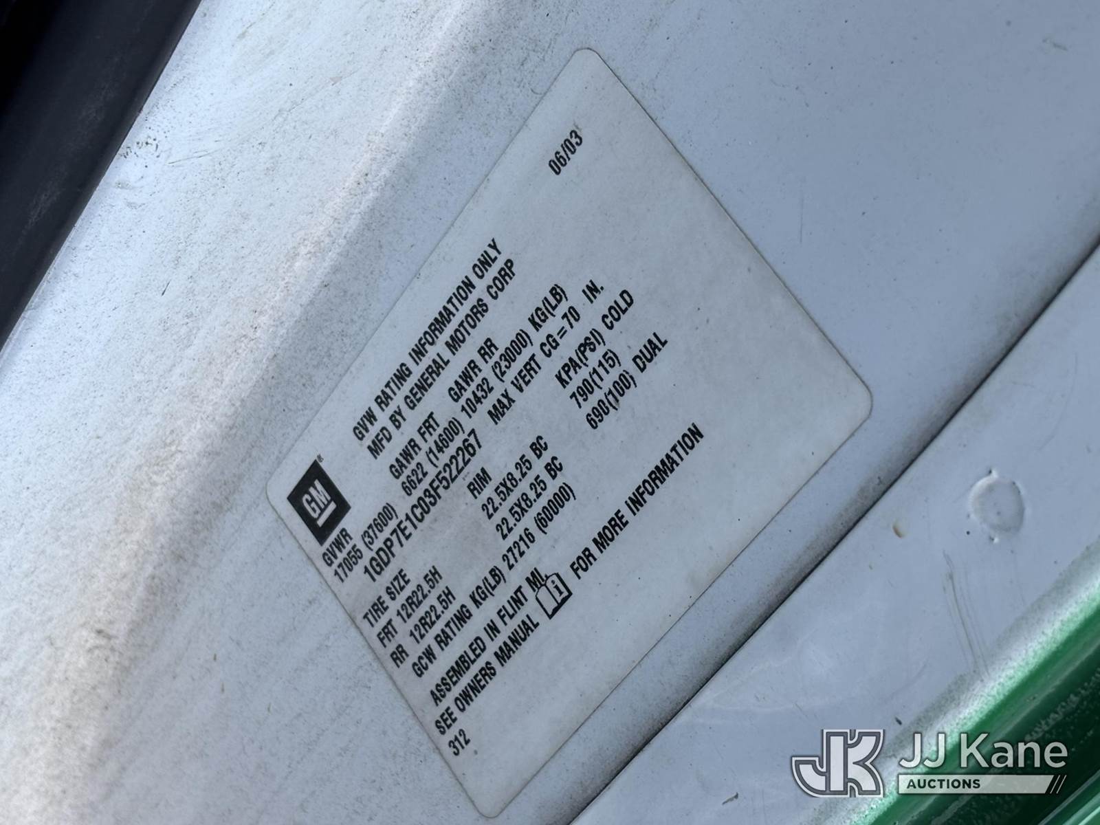 Altec D947-TR, 24,000 Lb Digger Derrick s/n 0603BA3828, with 47ft Sheave Ht, 3Section Hyd, Boom, 2 Spd Digger, Heel Winch, Pole Gabs, Standing Controls, & 4 Outriggers, corner mounted on 2003 GMC C7500 Utility Truck, Cat diesel, Auto, A/C, (Exempt from Odometer Disclosure - Reads 50,376 miles) (Jump To Start, Runs Moves & Upper Condition Unknown, Oil Light On, Body & Rust Damage, Missing Auger, Don’t Operate PTO Hydraulic Leak at Outrigger Controls ) This is a Titled Item NOTE: This unit is being sold AS IS/WHERE IS via Timed Auction and is located in Plymouth Meeting, PA. Inspection & preview days for this unit are the 2 business days prior to the first day of items closing for this auction, item is located at 1402 Conshohocken Rd Plymouth Meeting, PA 19462 and hours of operations are 8a-4p. For pre-sale questions, please contact Bruce Thomas @ (267) 887-0392 or bruce.thomas.jr@jjkane.com. (Buyer is responsible for removal. Assistance by consignor or JJ Kane Auctions is not assured.)