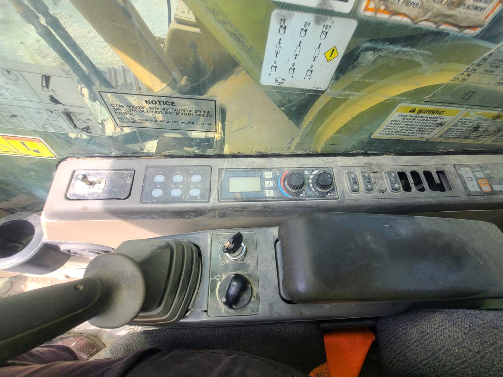 Equipped with thumb and hydraulic coupler (both made by Peterson Tractor) this machine is equipped with cab, air conditioning, has approximate 15,000 hours. Starts and runs great. Has 32” pads, undercarriage is 50% remaining. Has track roller guards (rare in and excavator) and has receivers mounted in the front of the cab for a screen. Also has a plate over the cab for falling objects. The pins are all pretty tight and this machine is ready to work!