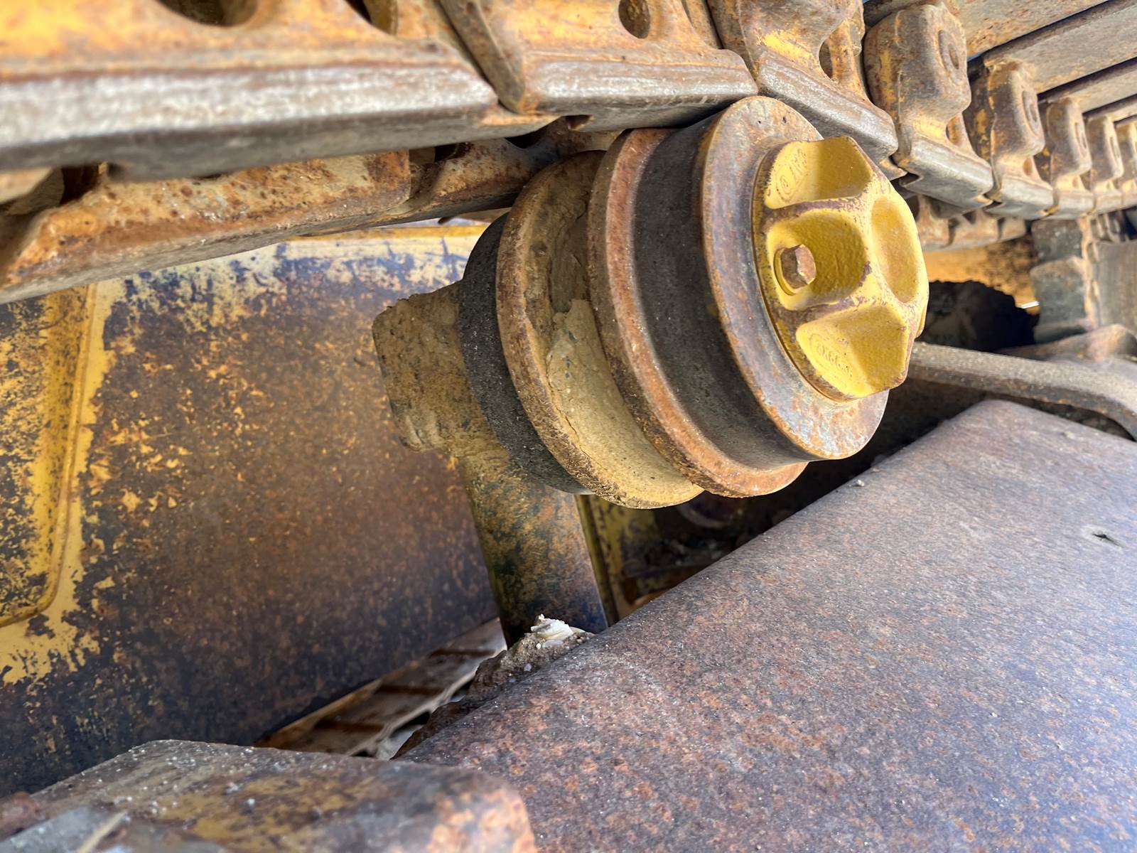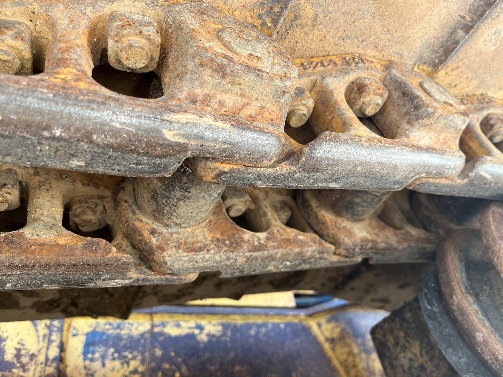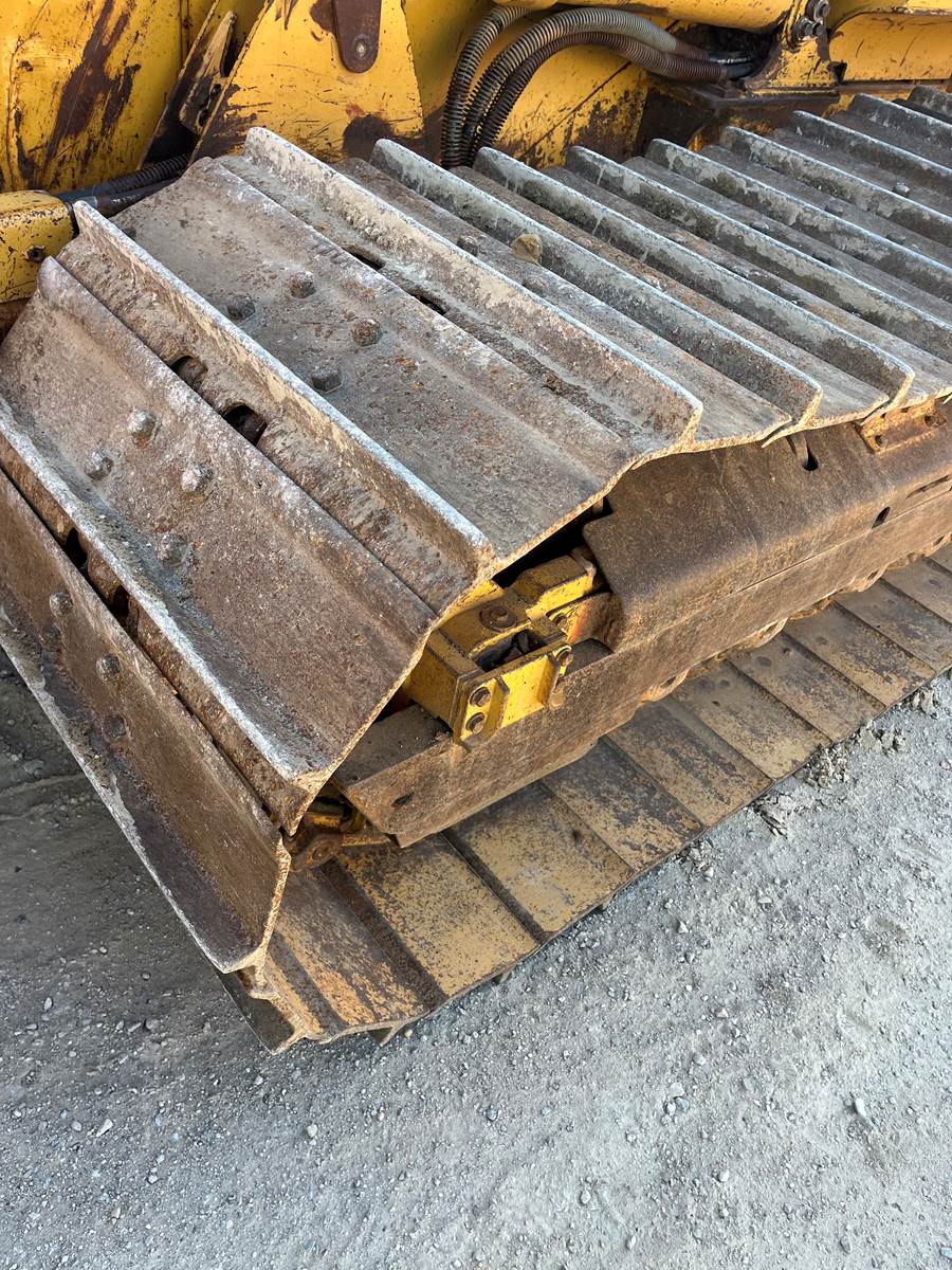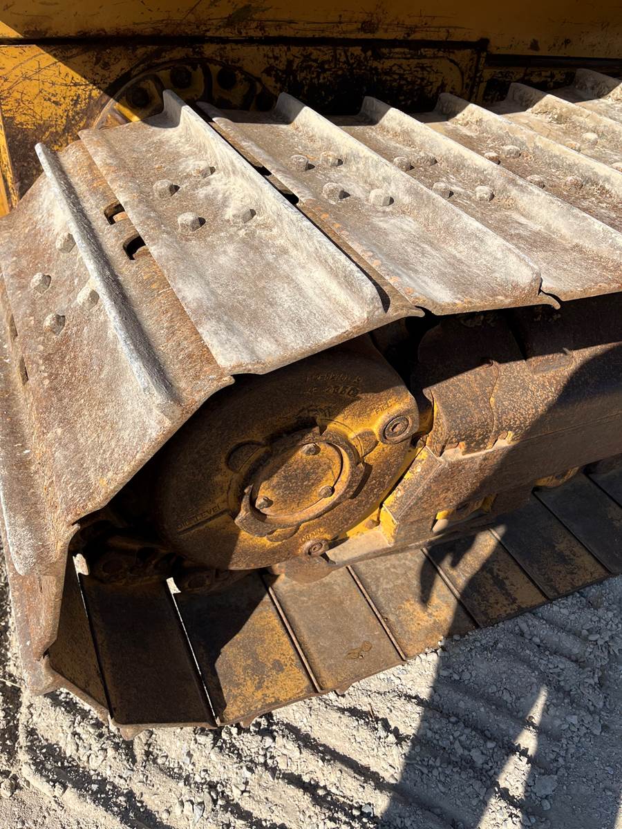 - Open ROPS, - Broken Link Pin on one side, - New Rollers, frames, Idlers, - Chains/Pads in good shape, - 6 way blade