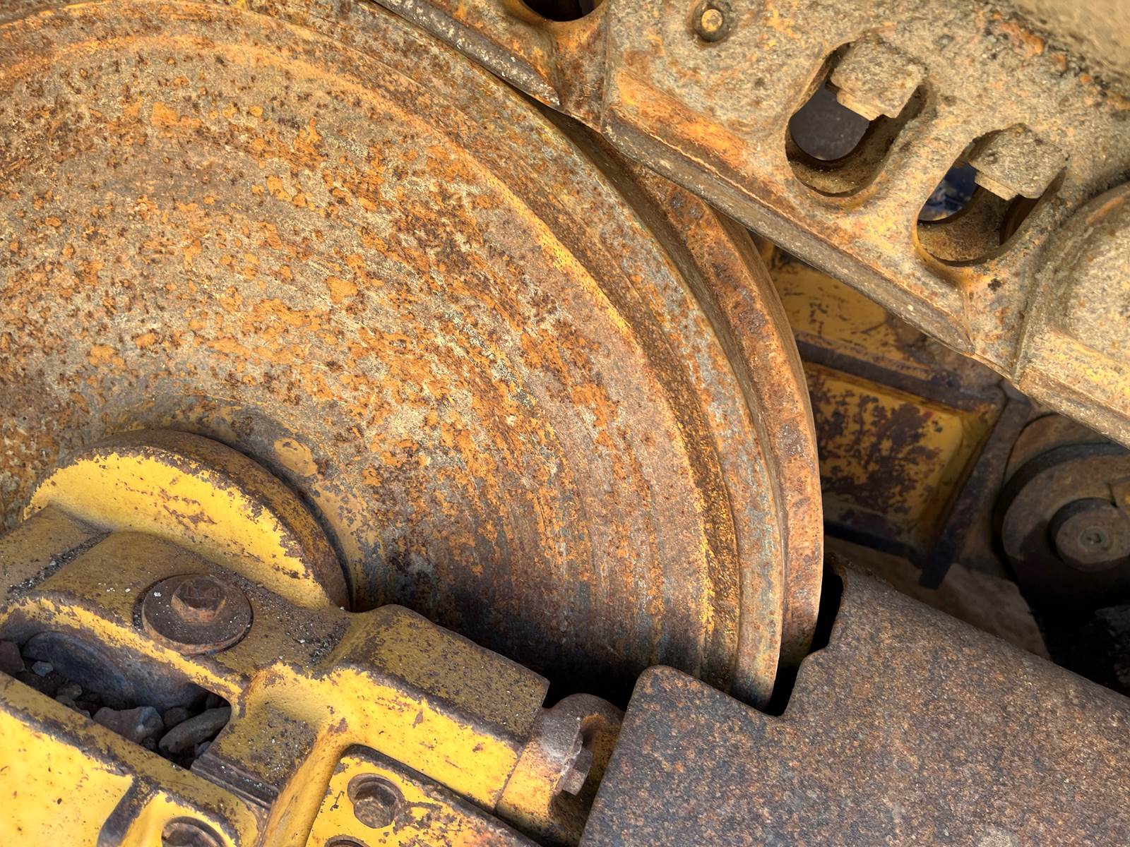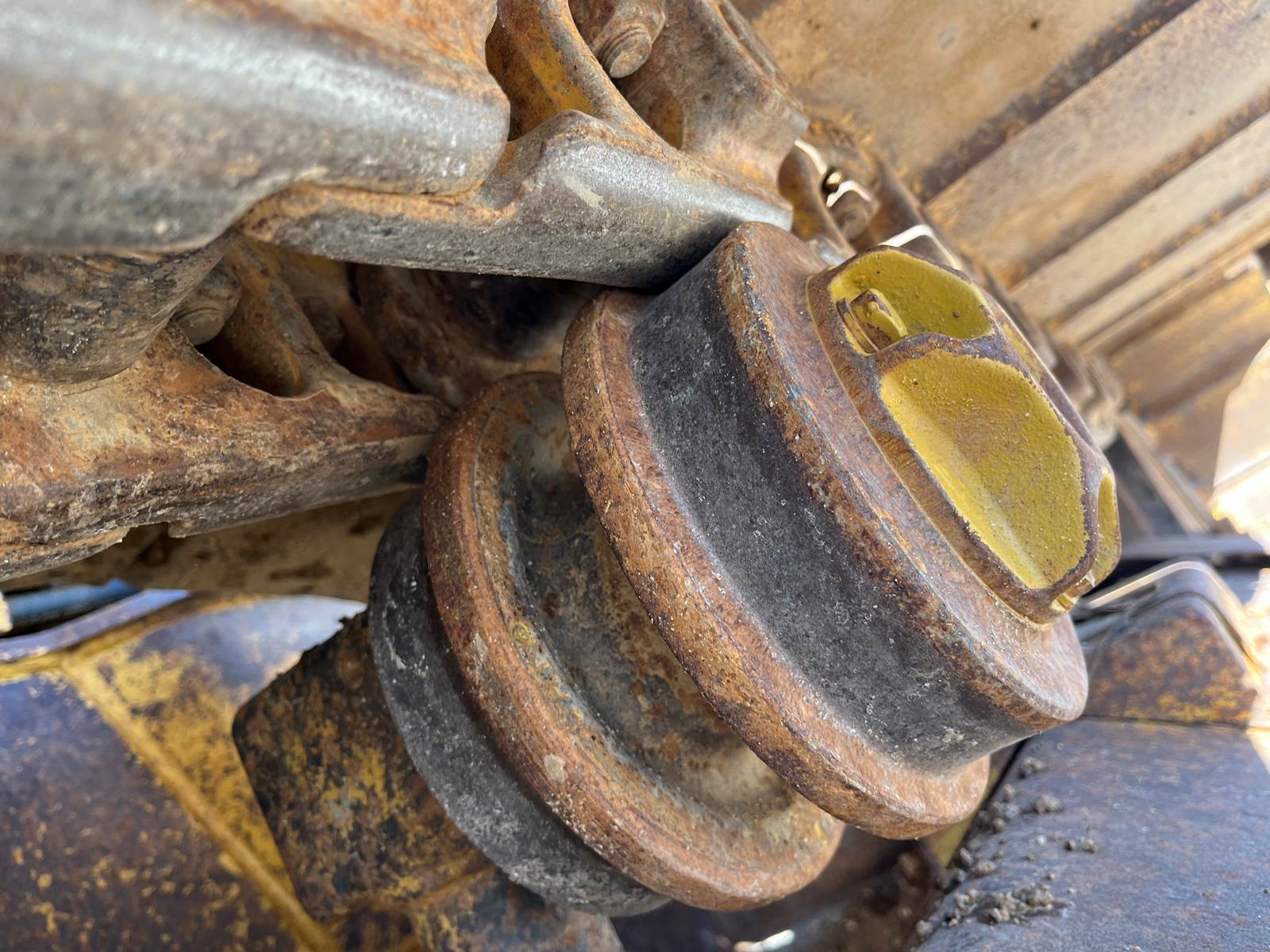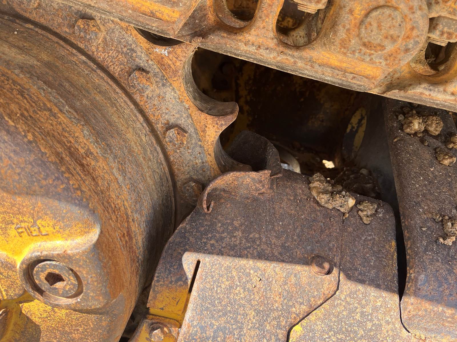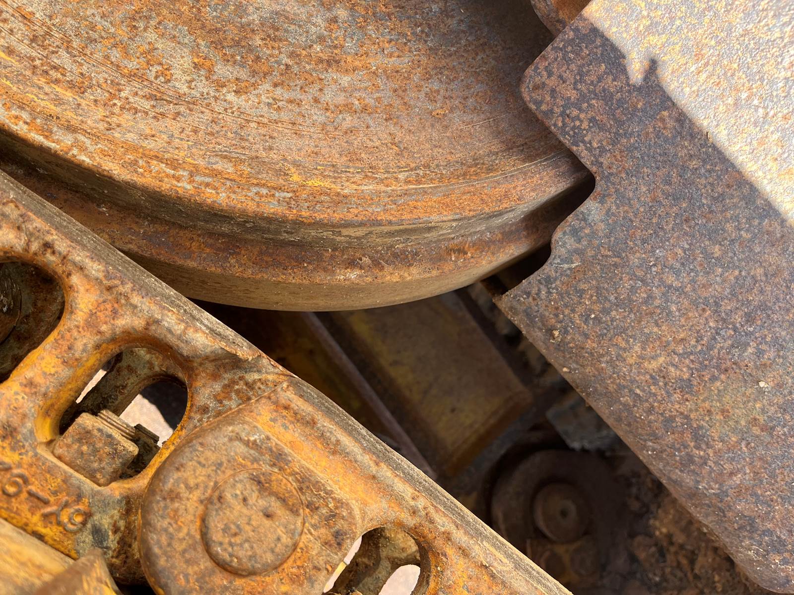 - Open ROPS, - Broken Link Pin on one side, - New Rollers, frames, Idlers, - Chains/Pads in good shape, - 6 way blade
