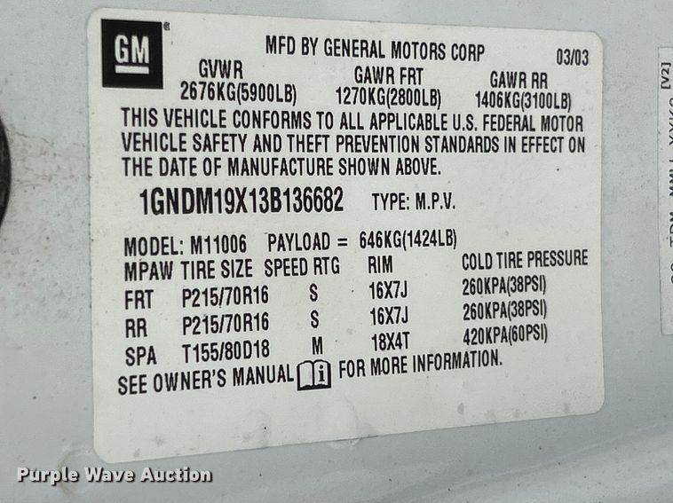 VIN: 1GNDM19X13B136682