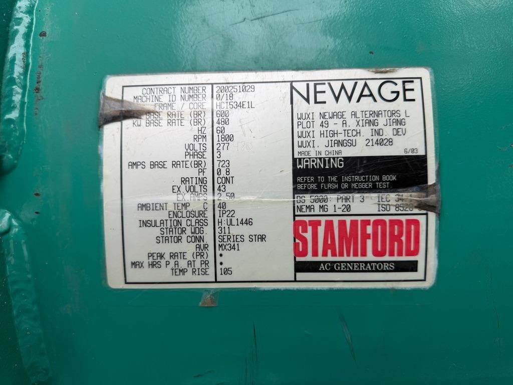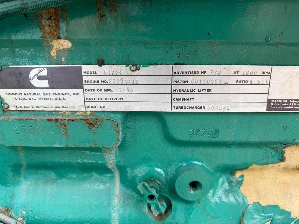 Good Used Cummins GTA28 Generator Set; 2003 Model – 785 Hours; 500kW Standby Rated; 480/277V; Analog Control Panel; Breaker; Jacket Water Heater; Battery Charger; Load Tested and Serviced