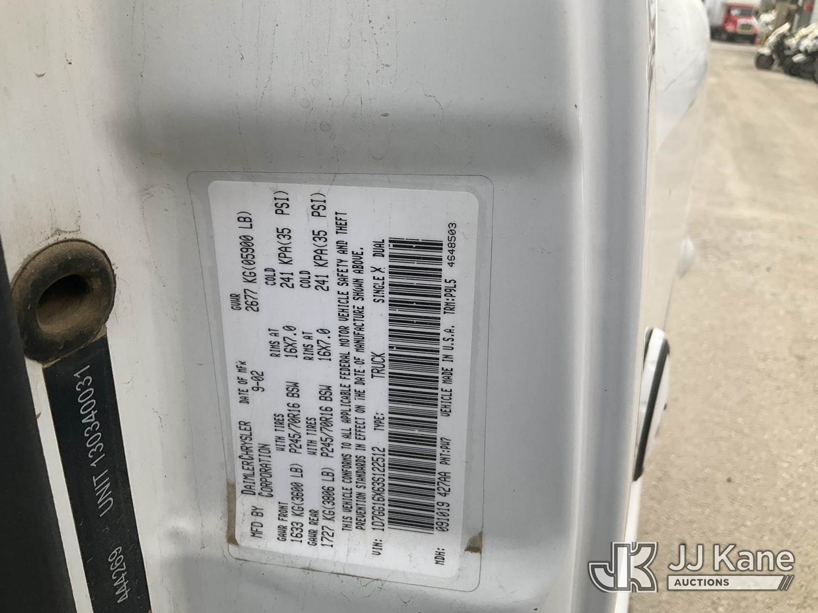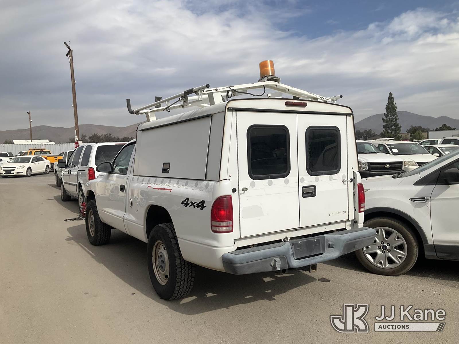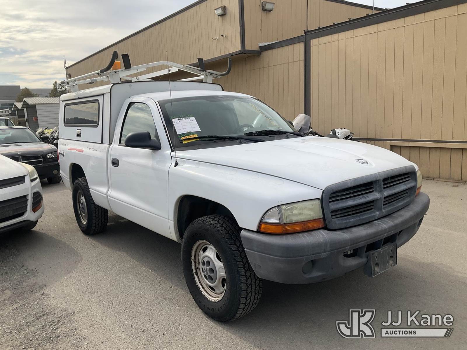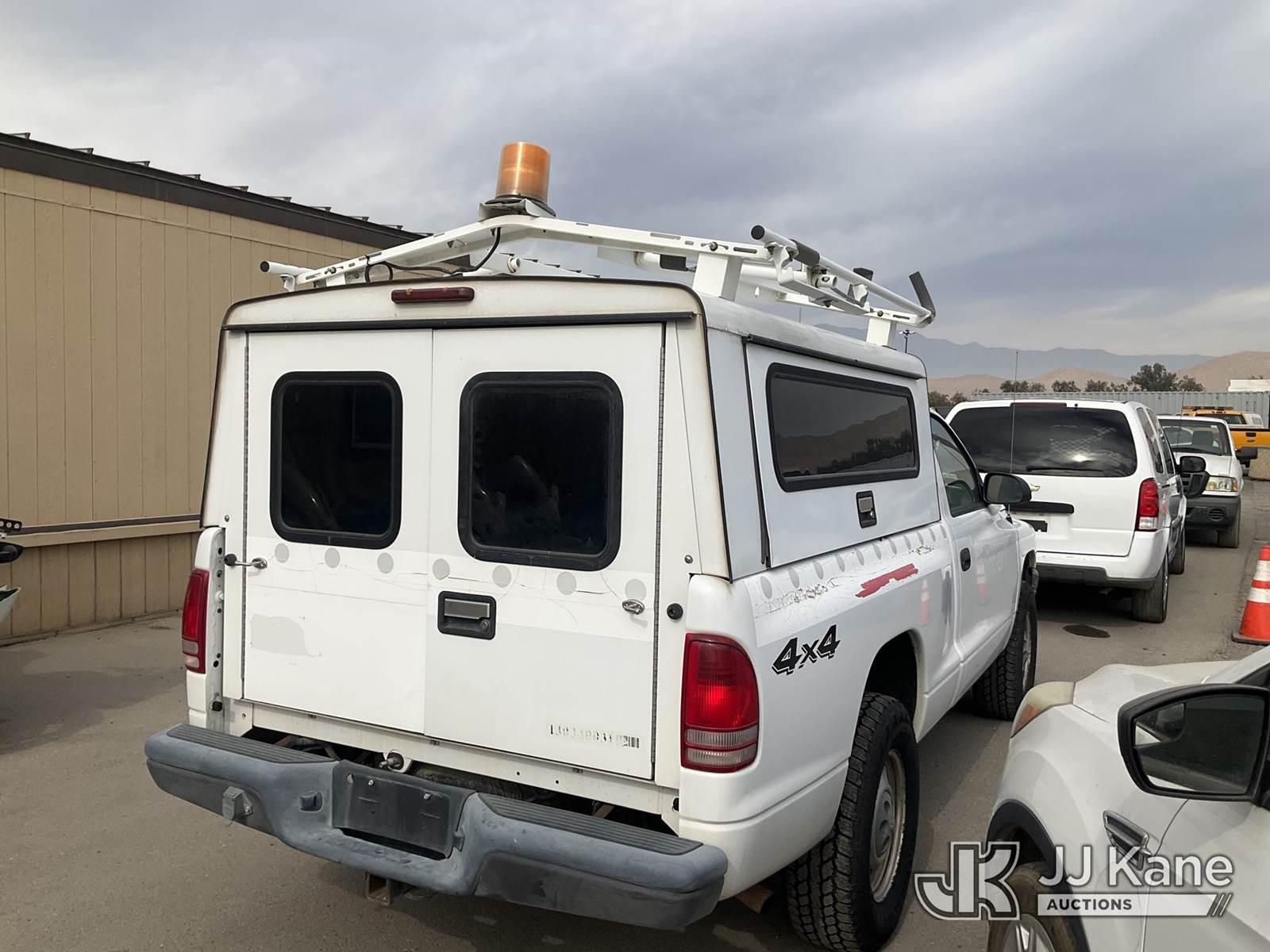2003 Dodge Dakota Enclosed Service Truck, 6-cyl gas, 4WD, A/C, with Ladder Rack, Camper Shell, & Tow Package,, (Exempt from Odometer Disclosure - Reads 126,628 miles) (Runs & Moves ) This is a Titled Item NOTE: This unit is being sold AS IS/WHERE IS via Timed Auction and is located in Jurupa Valley, CA. Inspection & preview days for this unit are the 2 business days prior to the first day of items closing for this auction, item is located at 4510 Muth Way Jurupa Valley, CA 92509 and hours of operations are 8a-4p. For pre-sale questions, please contact please contact Office Staff @ (310) 353-7140. Dealer License Number 45696. (Buyer is responsible for removal. Assistance by consignor or JJ Kane Auctioneers is not assured.)
