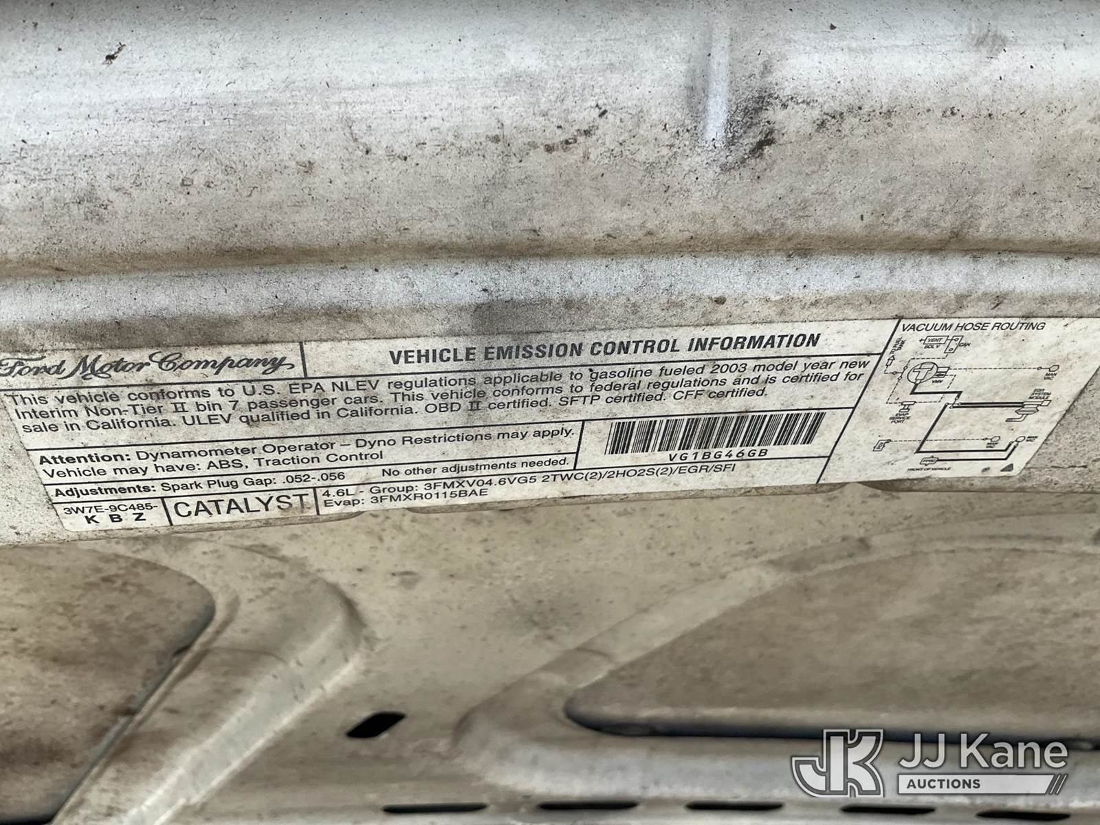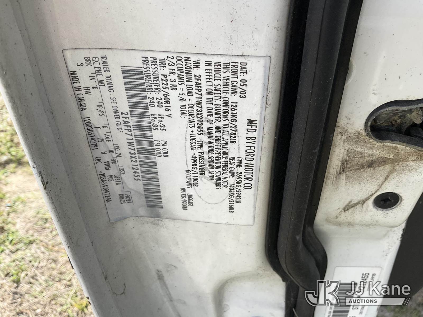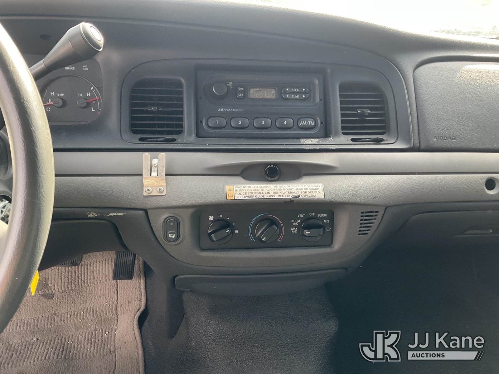 2003 Ford Crown Victoria Police Interceptor 4-Door Sedan, 4.6L V8 SOHC 16V gas, 4-Speed Automatic, RWD, A/C, (Exempt from Odometer Disclosure - Reads 59,563 miles) (Runs & Moves) (Driver Window INOP) (FL Residents Purchasing Titled Items - tax, title & registration fees will be collected at the maximum rate of $400.00 under 25,999 and $800.00 for Over 26,000 and $250.00 trailers - Proof of insurance is mandatory; Out of State Residents Purchasing Title Items - tax will be collected based upon your state rate.) (Branded Title - Police Vehicle) This is a Titled Item NOTE: This unit is being sold AS IS/WHERE IS via Timed Auction and is located in Thonotosassa, FL. Inspection & preview days for this unit are the 2 business days prior to the first day of items closing for this auction, item is located at 11720 N US 301 Thonotosassa, Fl 33592 and hours of operations are 8a-4p. For pre-sale questions, please contact Office Staff @ (813) 986-2485. (Buyer is responsible for removal. Assistance by consignor or JJ Kane Auctions is not assured.)