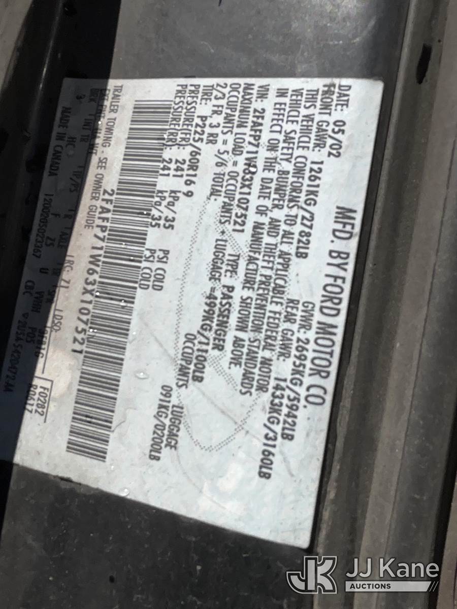 2003 Ford Crown Victoria Police Interceptor 4-Door Sedan, 8-cyl gas, RWD, 4-Speed Automatic, (Exempt from Odometer Disclosure - Reads 118,393 miles) (Runs & Moves) (Airbag Light On, ABS Light On, Interior Stripped Of Parts) (Bidding Restricted to Licensed Vehicle Dealers Only), This is a Titled Item NOTE: This unit is being sold AS IS/WHERE IS via Timed Auction and is located in Jurupa Valley, CA. Inspection & preview days for this unit are the 2 business days prior to the first day of items closing for this auction, item is located at 4510 Muth Way Jurupa Valley, CA 92509 and hours of operations are 8a-4p. For pre-sale questions, please contact please contact Office Staff @ (310) 353-7140. Dealer License Number 45696. (Buyer is responsible for removal. Assistance by consignor or JJ Kane Auctions is not assured.)